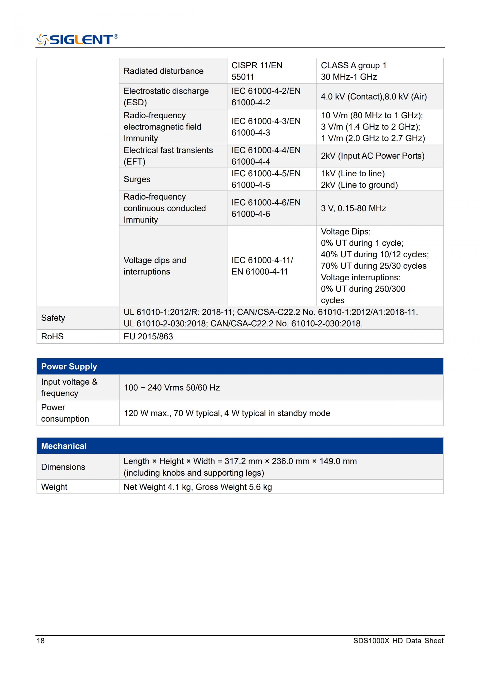 - 인터페이스에는 다음이 포함됩니다: USB 호스트, USB 장치(USBTMC), LAN(VXI-11/Telnet/소켓), 통과/실패, 트리거 아웃