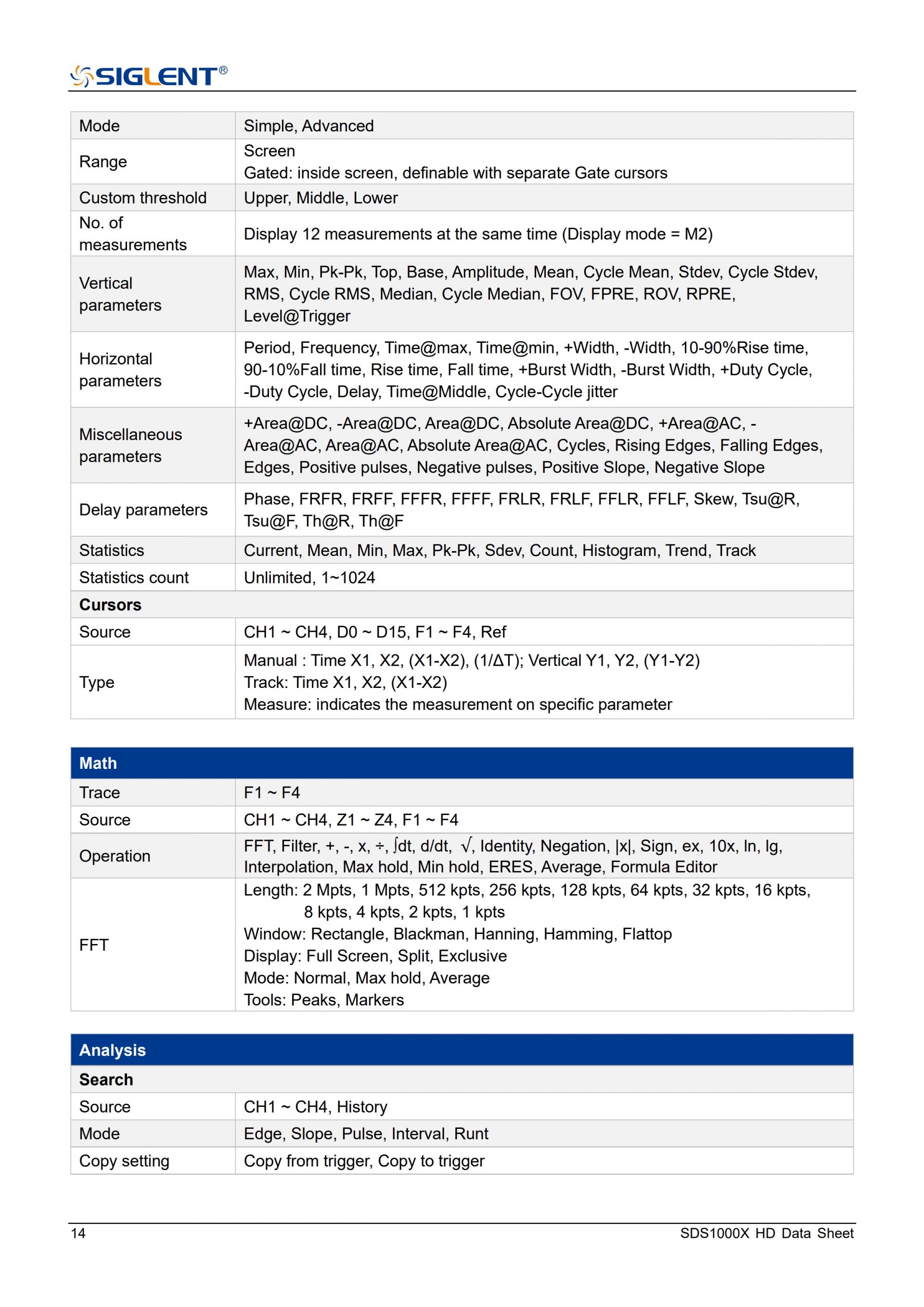 - 50개 이상의 매개변수에 대한 자동 측정, 히스토그램, 추적, 추세, 게이팅 측정 및 수학, 기록 및 참조에 대한 측정을 통한 통계 지원