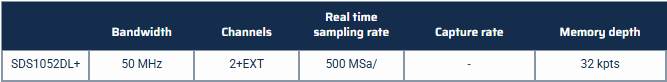 SIGLENT SDS1000DL+ 시리즈는 듀얼 채널 50MHz 모델입니다. 30kpts의 메모리 용량을 제공하여 정확한 파형 분해능을 보장하고 긴 신호 길이를 포착할 수 있습니다. 7인치 TFT-LCD(800*480) 화면은 파형 세부 정보를 더 잘 보고 분석할 수 있도록 충분한 화면 공간을 제공합니다. 500MSa/s의 샘플링 속도와 함께 SDS1000DL+는 32개의 파라미터 측정 및 일반적인 수학 연산을 지원하여 복잡하고 반복적인 측정 속도를 높여줍니다.