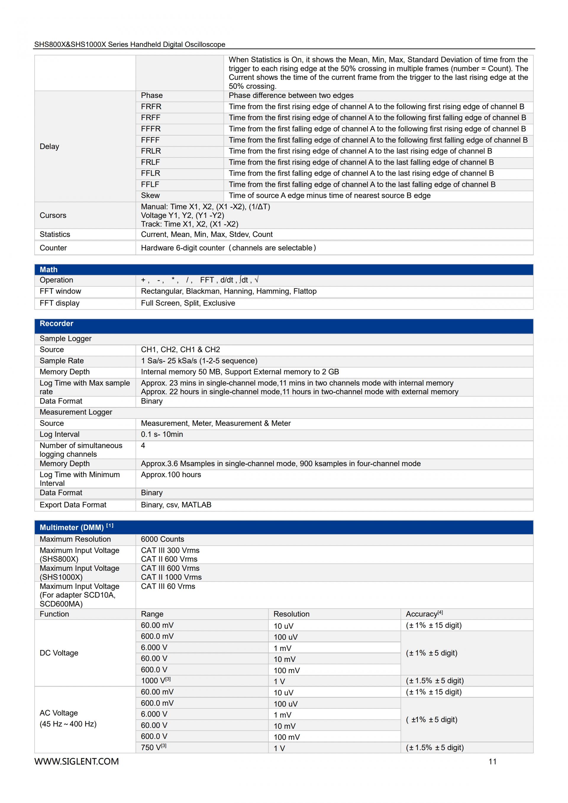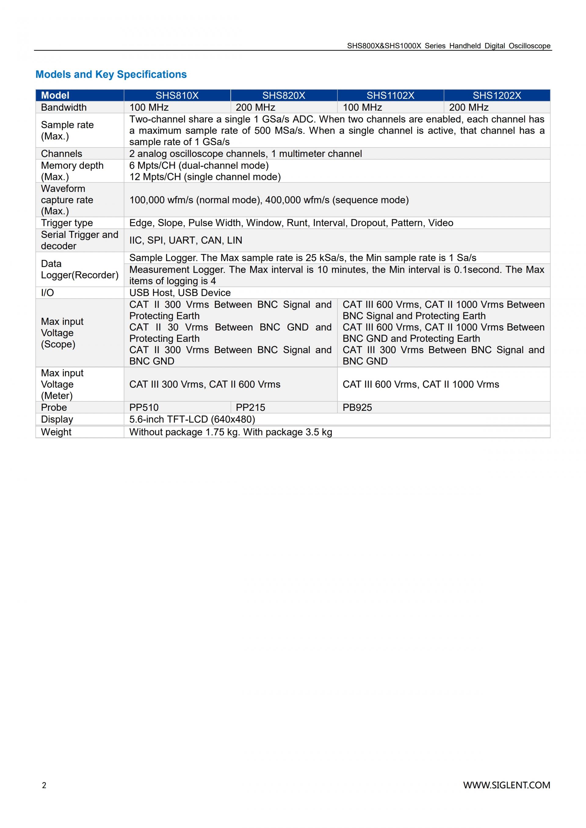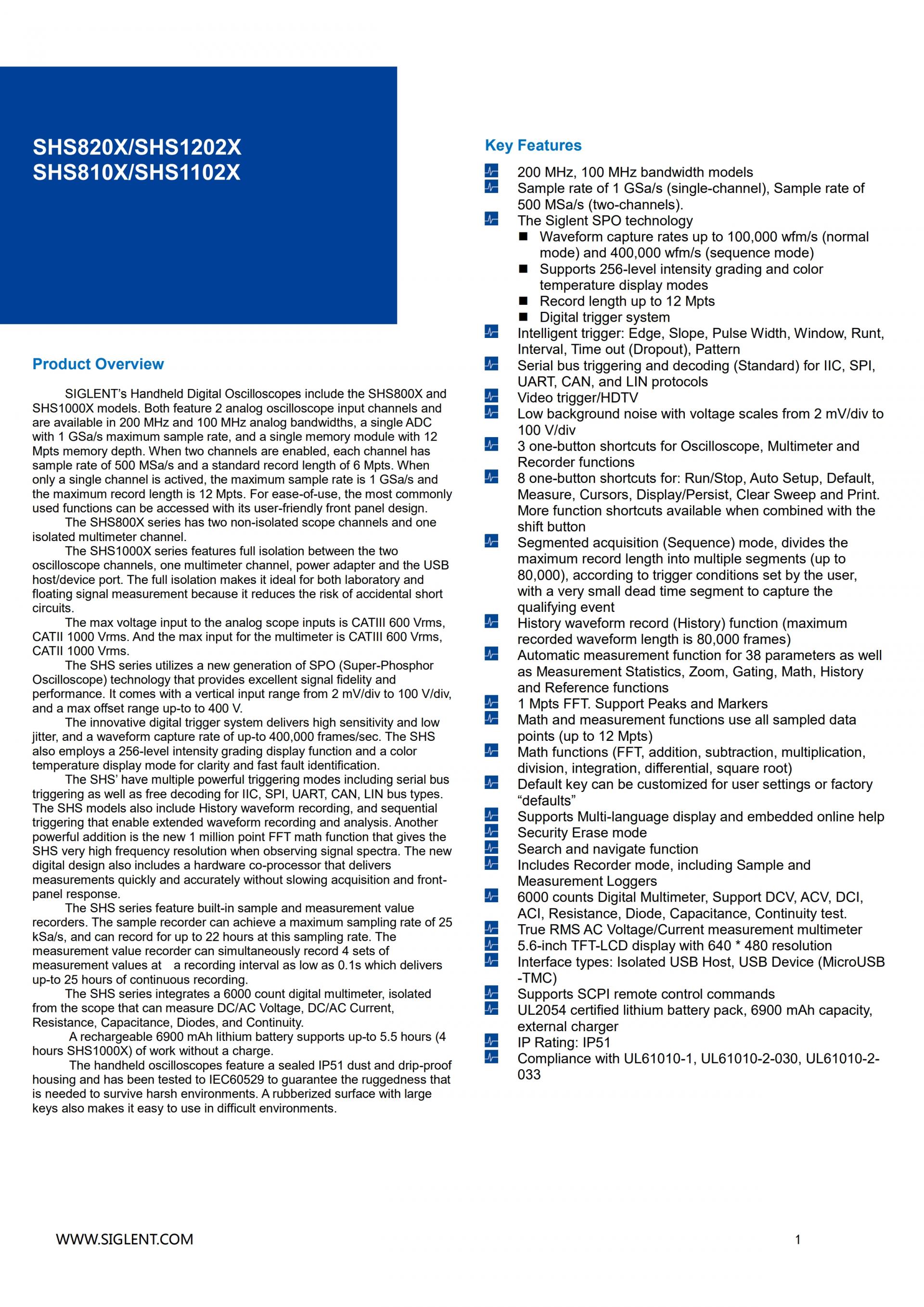 SIGLENT SHS1000X 핸드헬드 오실로스코프