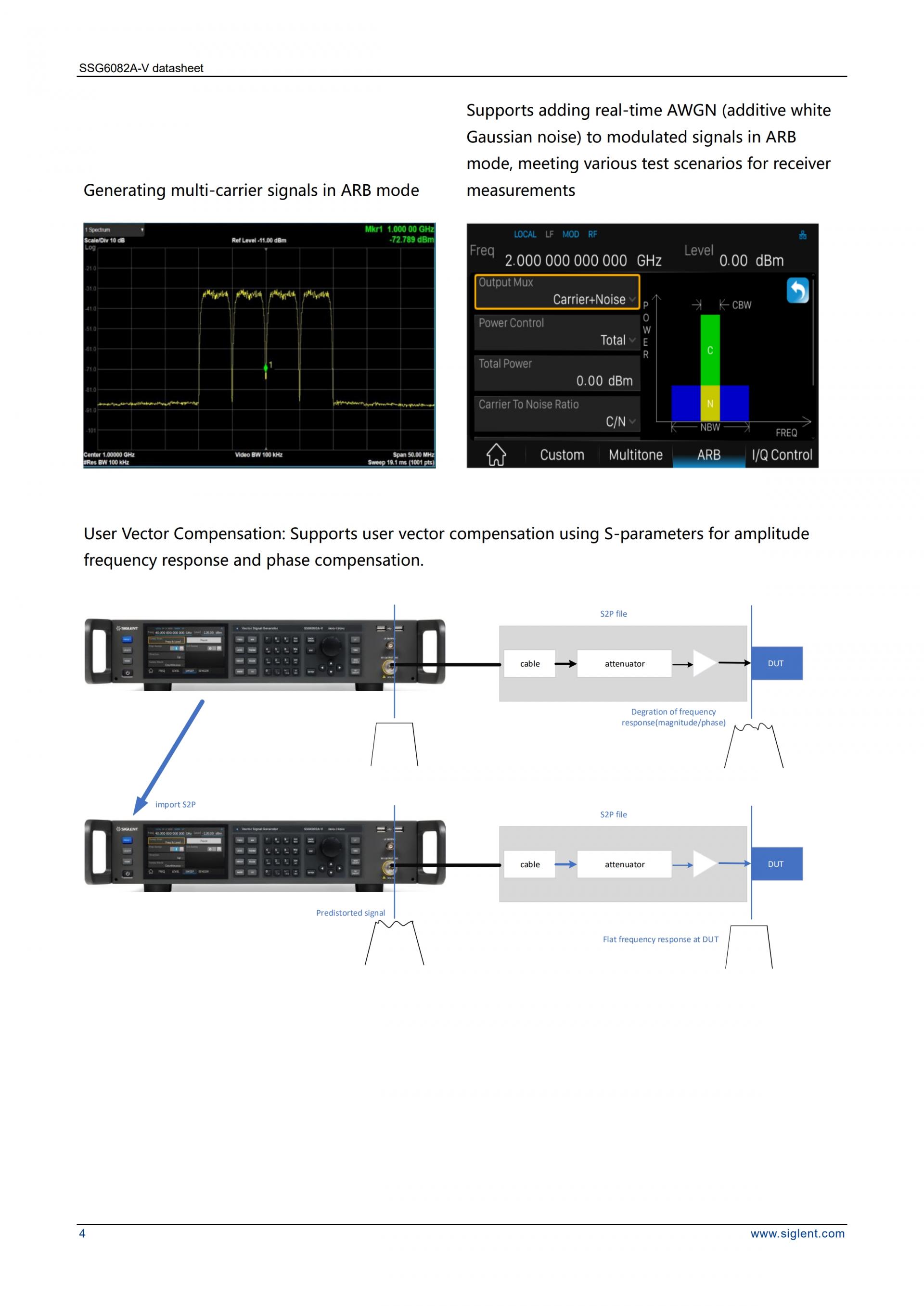 - 벡터 모드 S-파라미터 보상: 테스트 시스템의 광대역 특성을 최적화하기 위해 벡터 모드에서 S-파라미터 보상을 지원합니다.