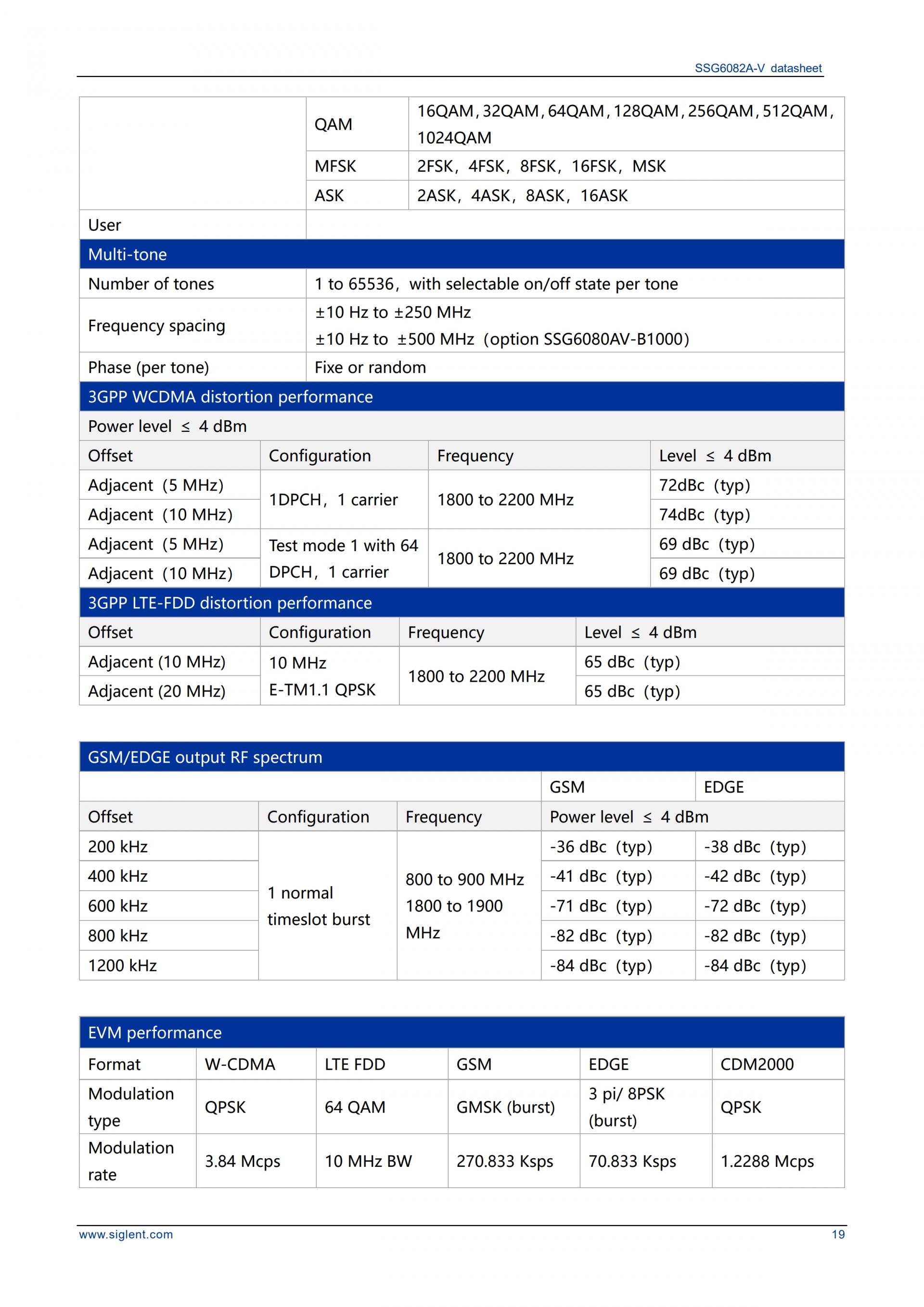 - 일반 변조: QAM, FSK, ASK, PSK, 다중 톤 및 기타 다양한 변조 신호를 실시간으로 출력할 수 있습니다.
