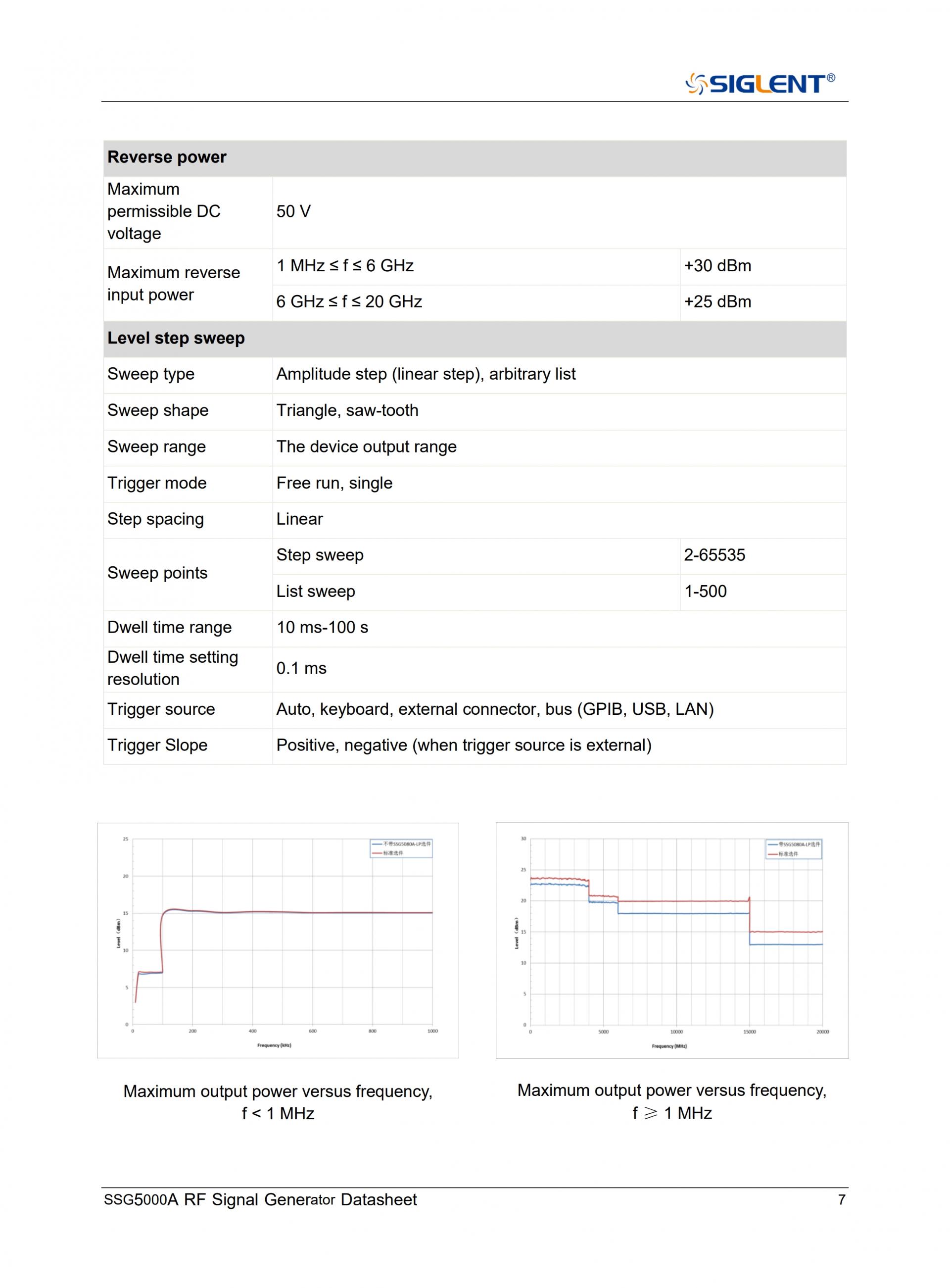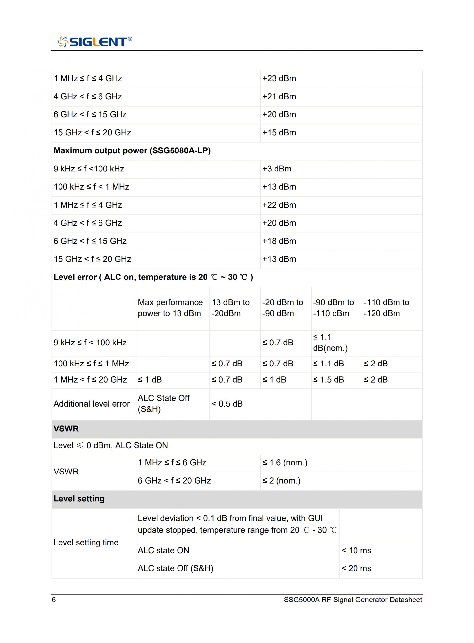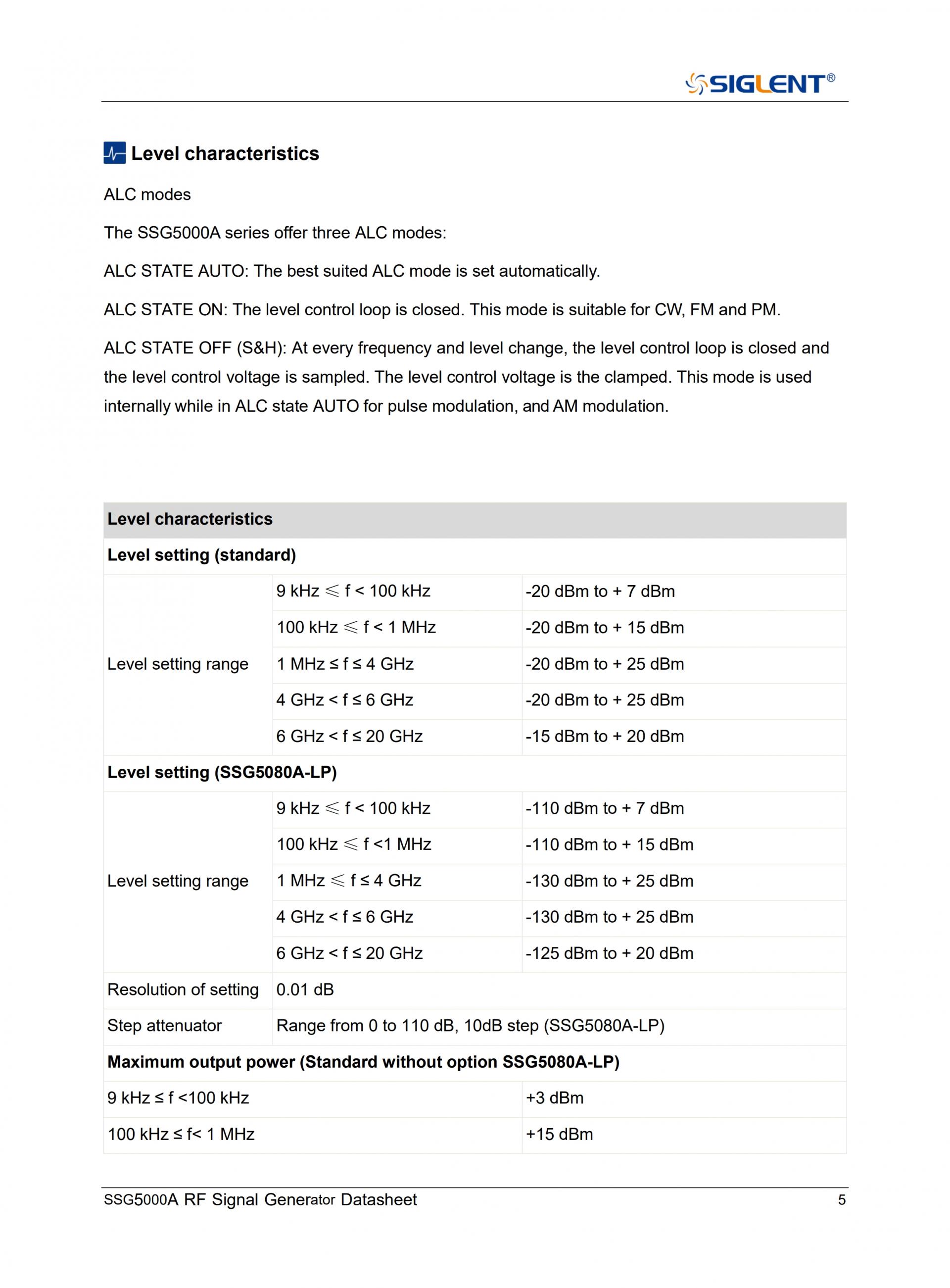 - 레벨 설정 범위: -130dBm ~ 25dBm(옵션 SSG5080A-LP 사용 시)