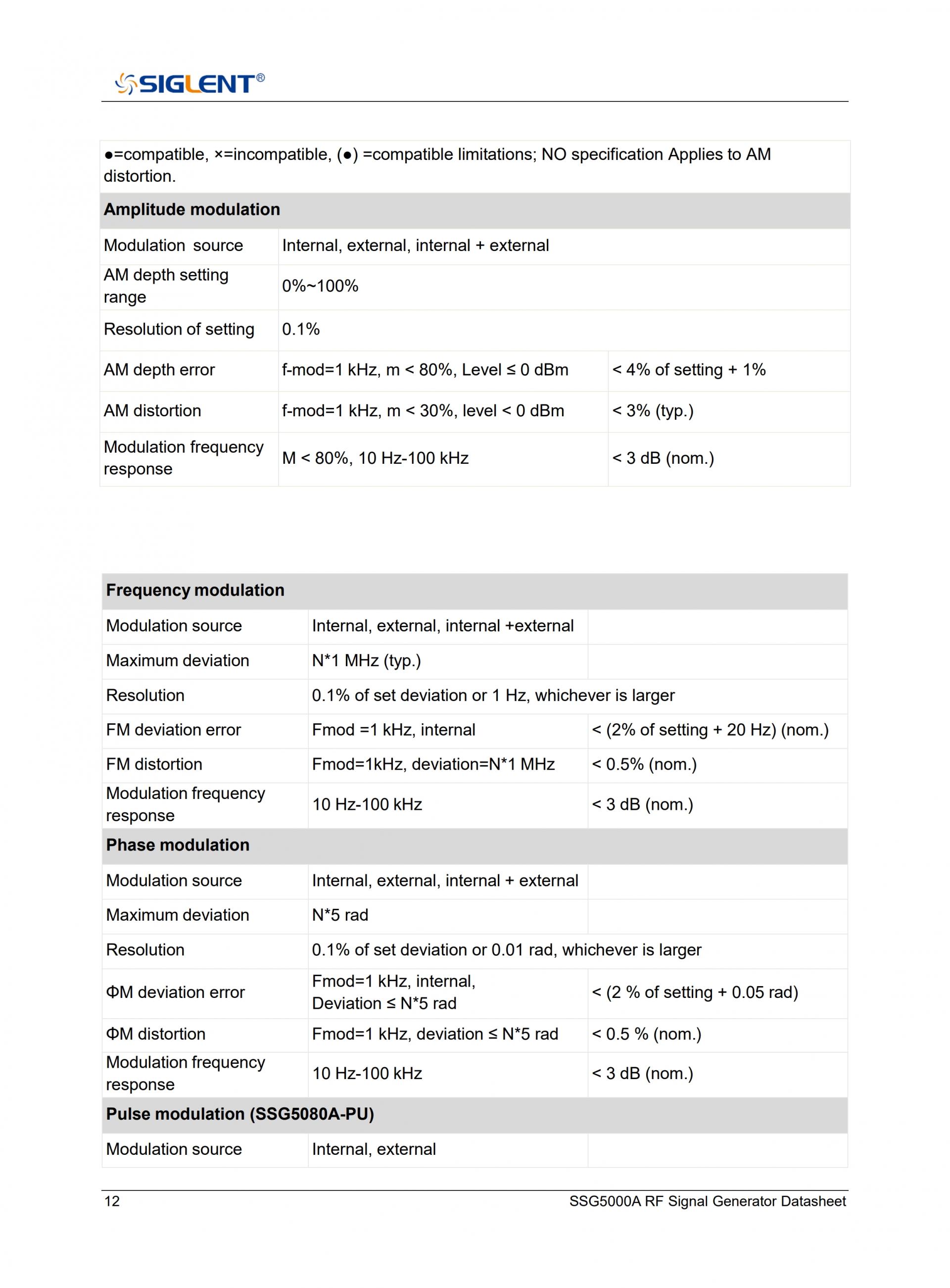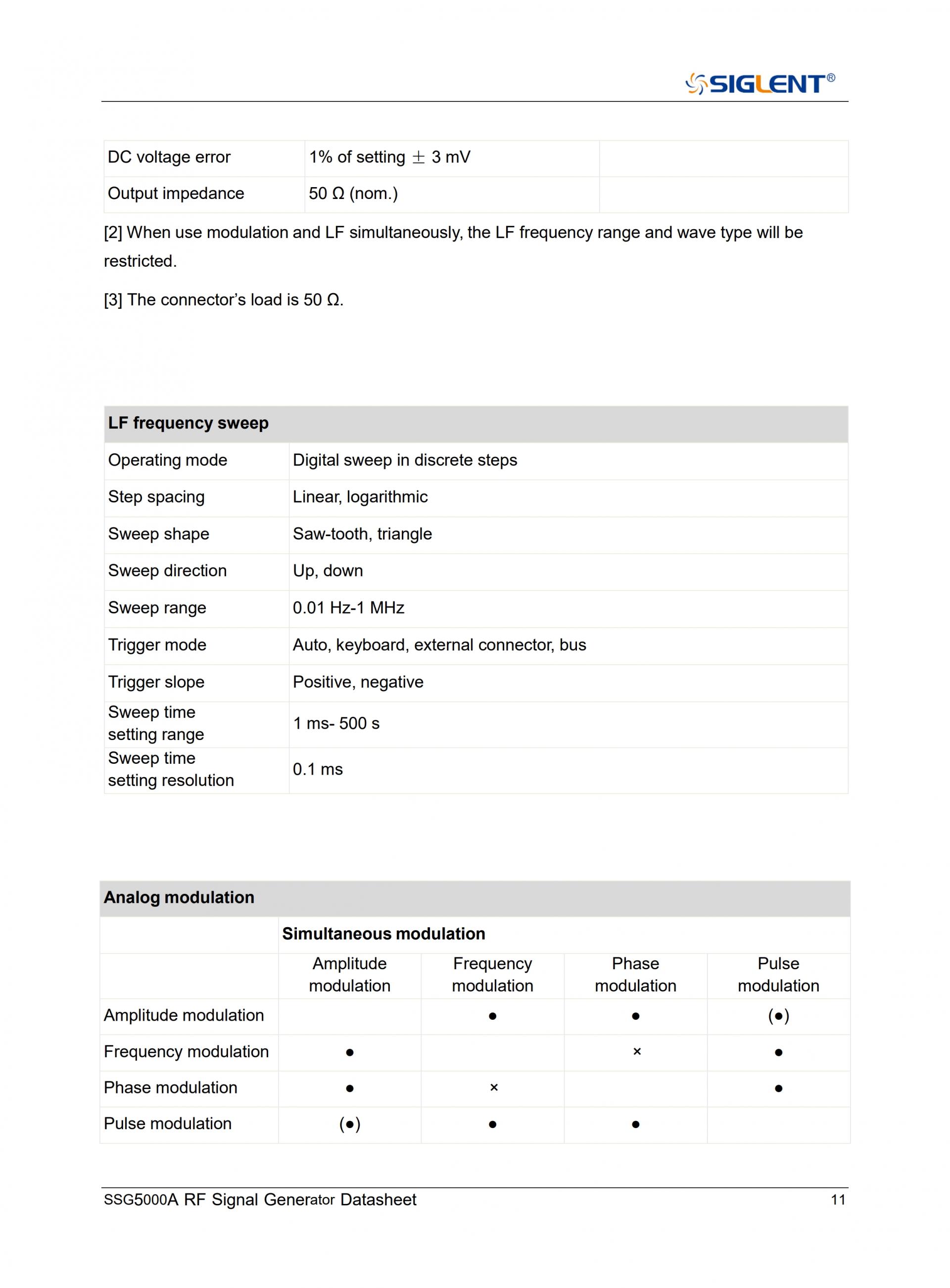- 내부, 외부 또는 Int+Ext 소스를 사용하여 AM, FM, PM 아날로그 변조를 제공합니다.