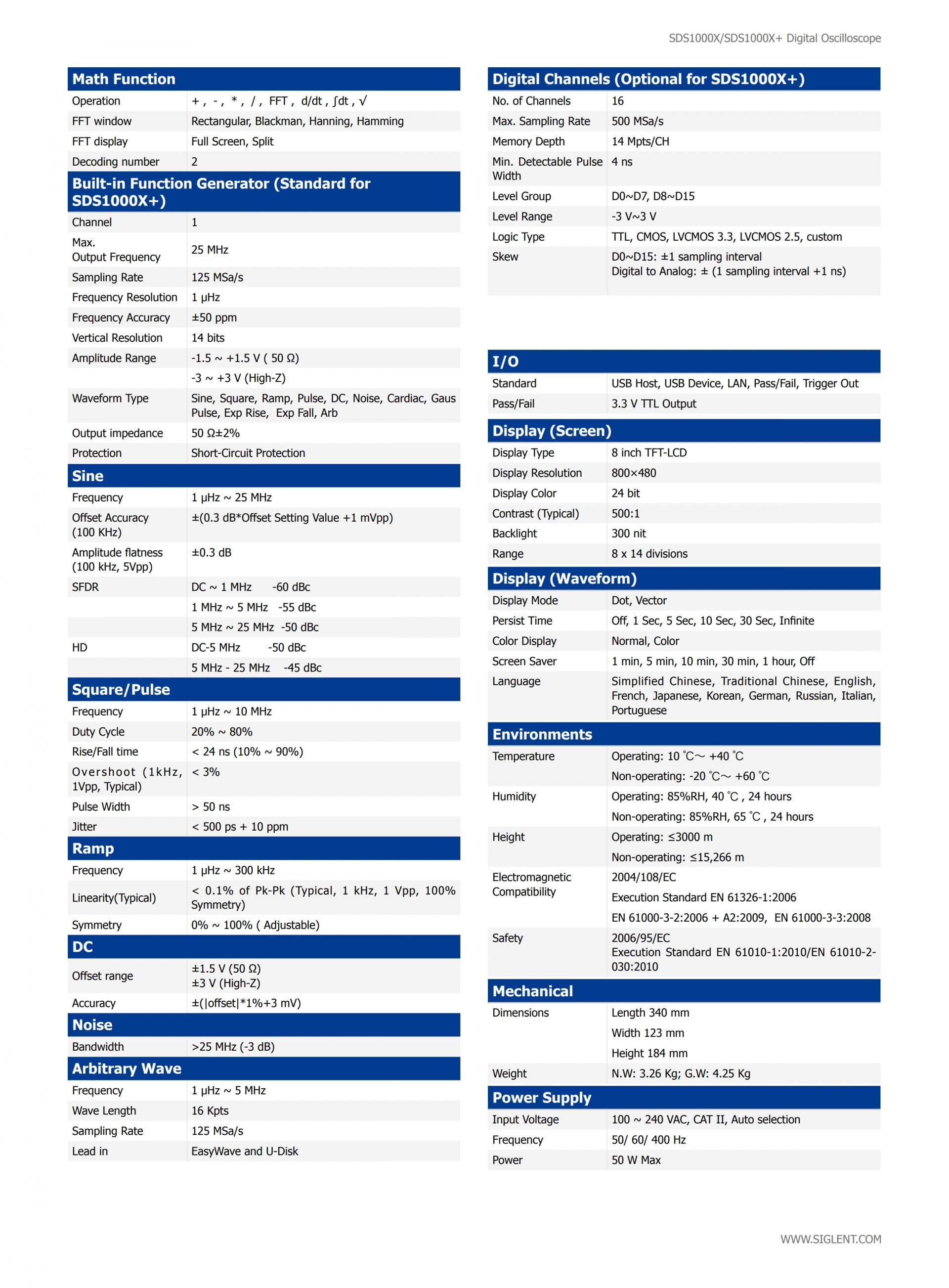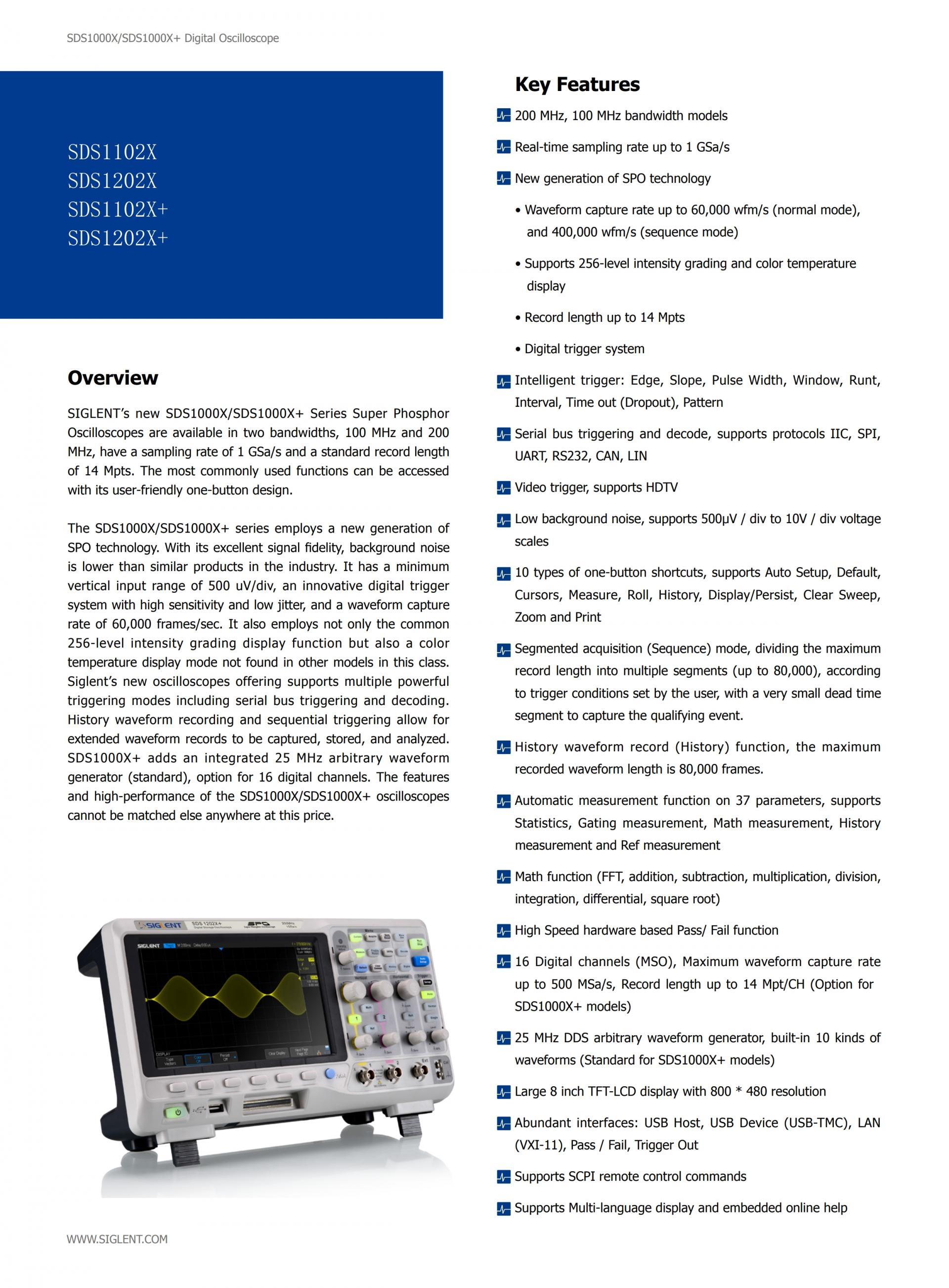 SDS1000X/X+ Super Phosphor Oscilloscopes