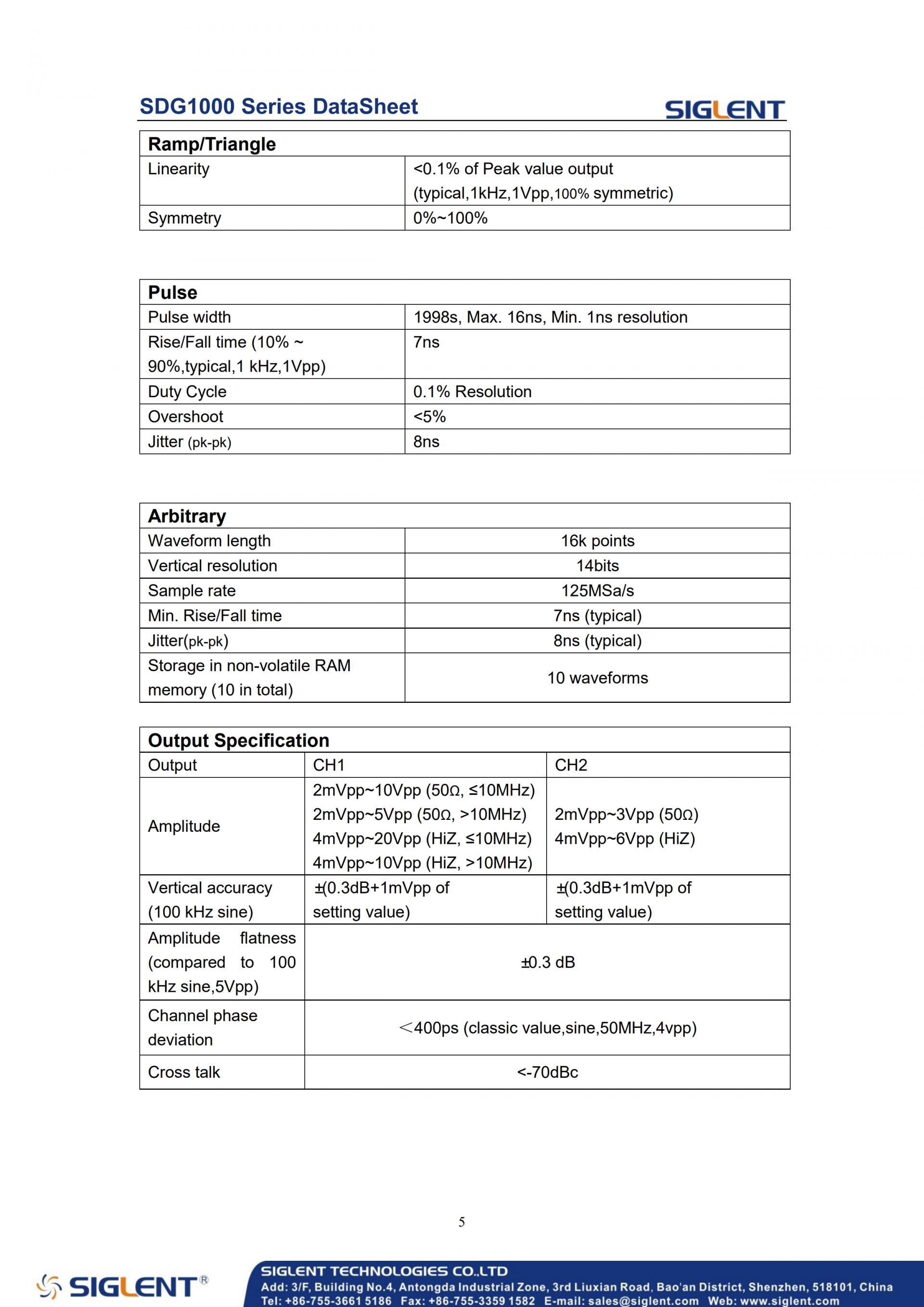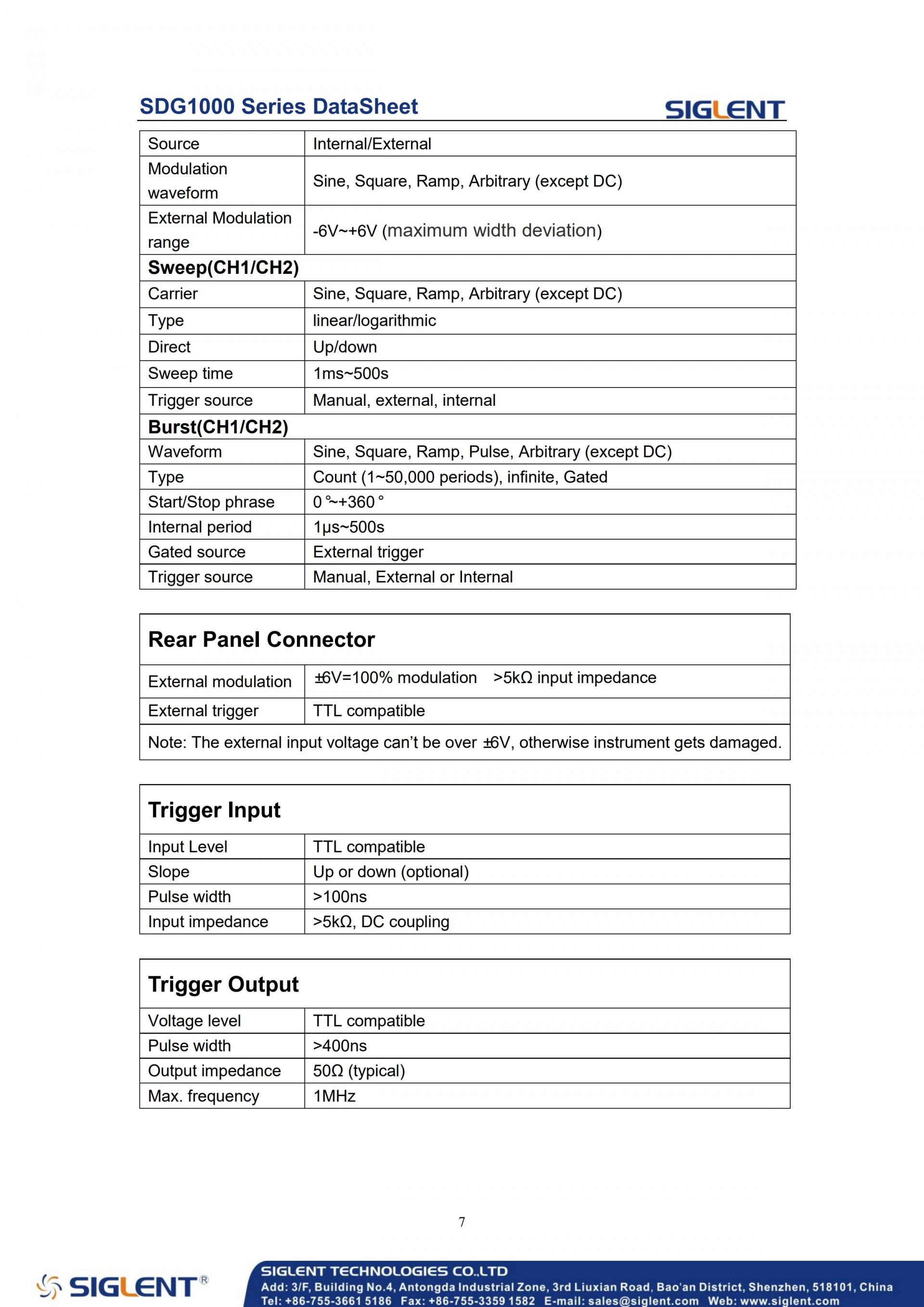 SDG1000 Function/Arbitrary Waveform Generators