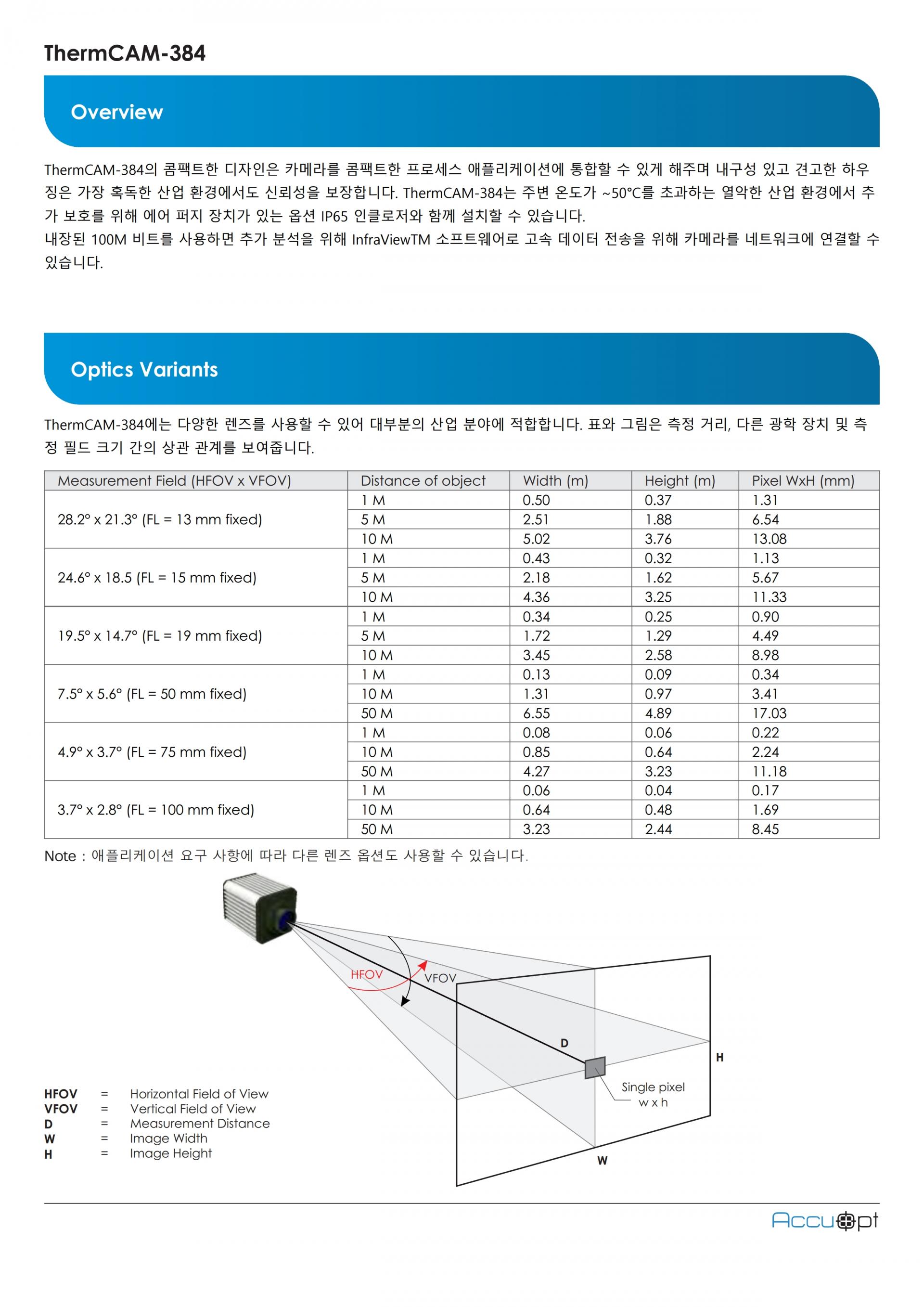 - FOV : 28.2° x 21.3° (FL = 13 mm fixed) ~ 3.7° x 2.8° (FL = 100 mm fixed)