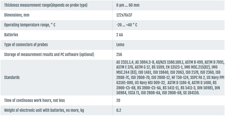 Coating thickness gauge for measuring the thickness of various coatings on metals is very and ready to use right out of the box, and does not require special user skills. The minimum number of buttons and an intuitive menu makes it an ideal device of operational non-destructive measurement of the thickness of almost any coating with high accuracy.