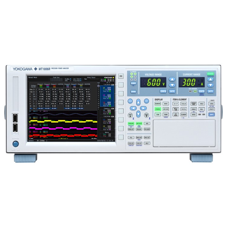 WT1800R은 최대 6채널의 전력 입력, 다양한 화면의 조합 표시, PC와의 친화성, 수치와 파형 해석 기능, 넓은 주파수 입력 범위와 그 환경 성능으로부터 전력, 효율 및 고조파 측정이 요구되는 최첨단 애플리케이션에 유연하게 대응합니다.