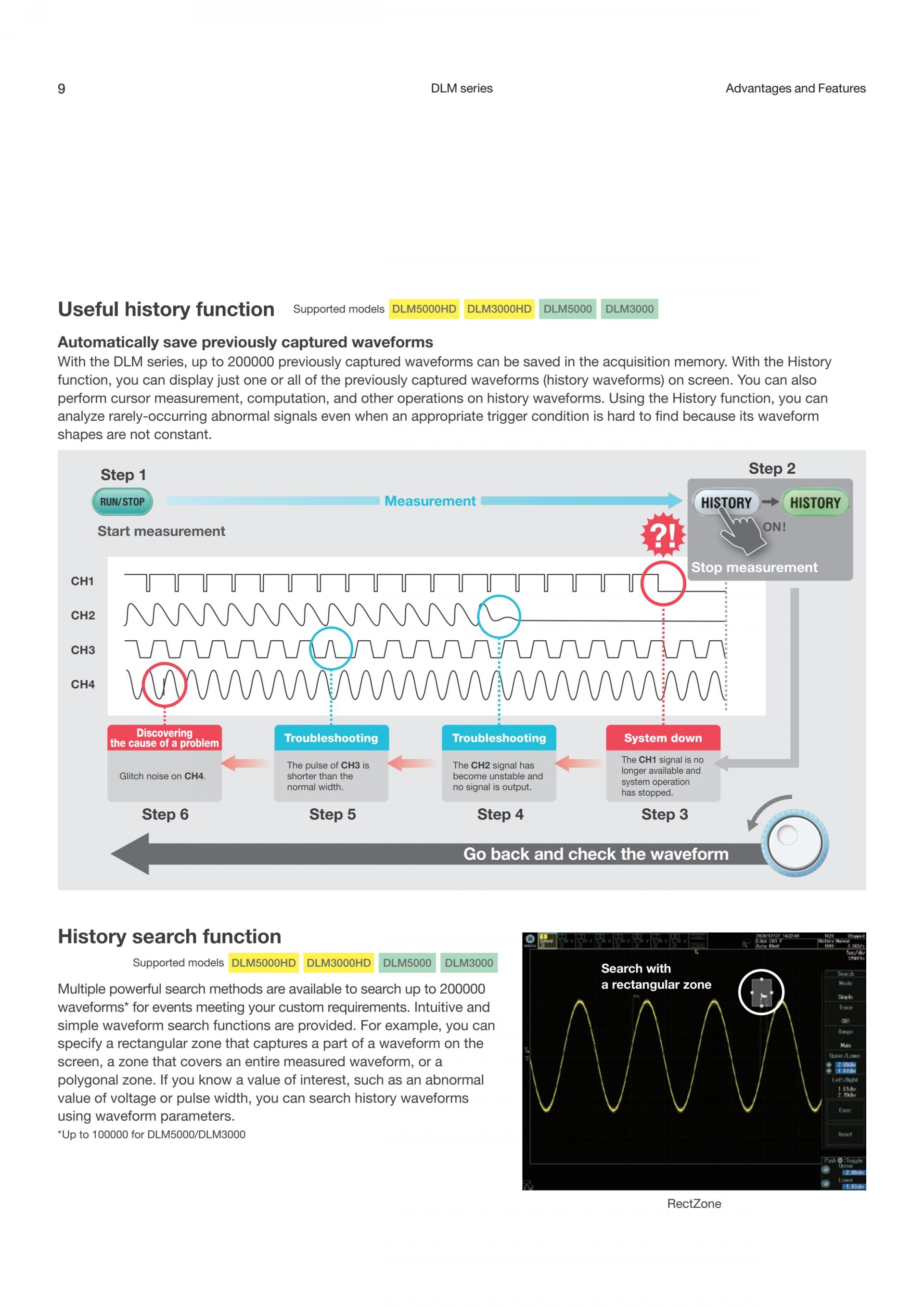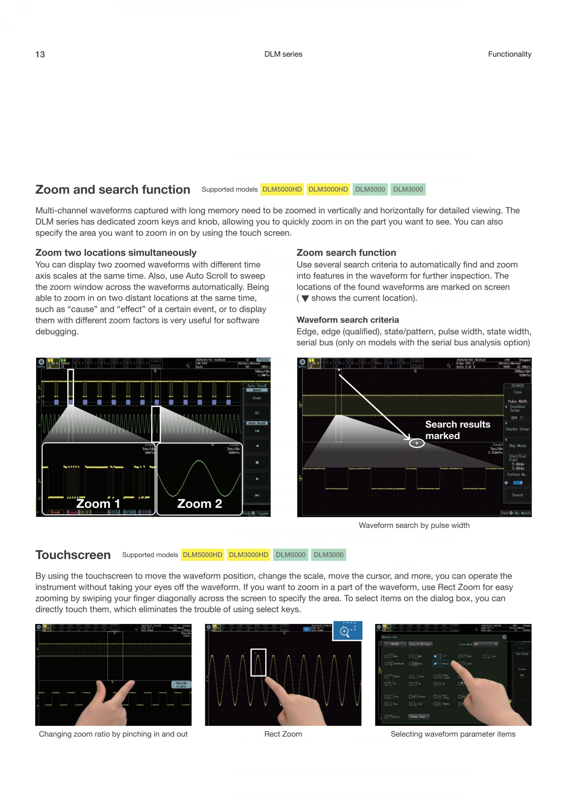 간단 - DLM 시리즈는 경량・컴팩트한 오실로스코프로 복잡한 고속 파형을 고분해능으로 관측・해석할 수 있어 미세한 노이즈나 링잉 등의 쉽게 확인 할 수 있습니다. 직관적인 터치스크린, 오토 셋업, 풍부한 해석 기능으로 복잡한 파형 해석을 편하게 할 수 있도록 지원합니다.