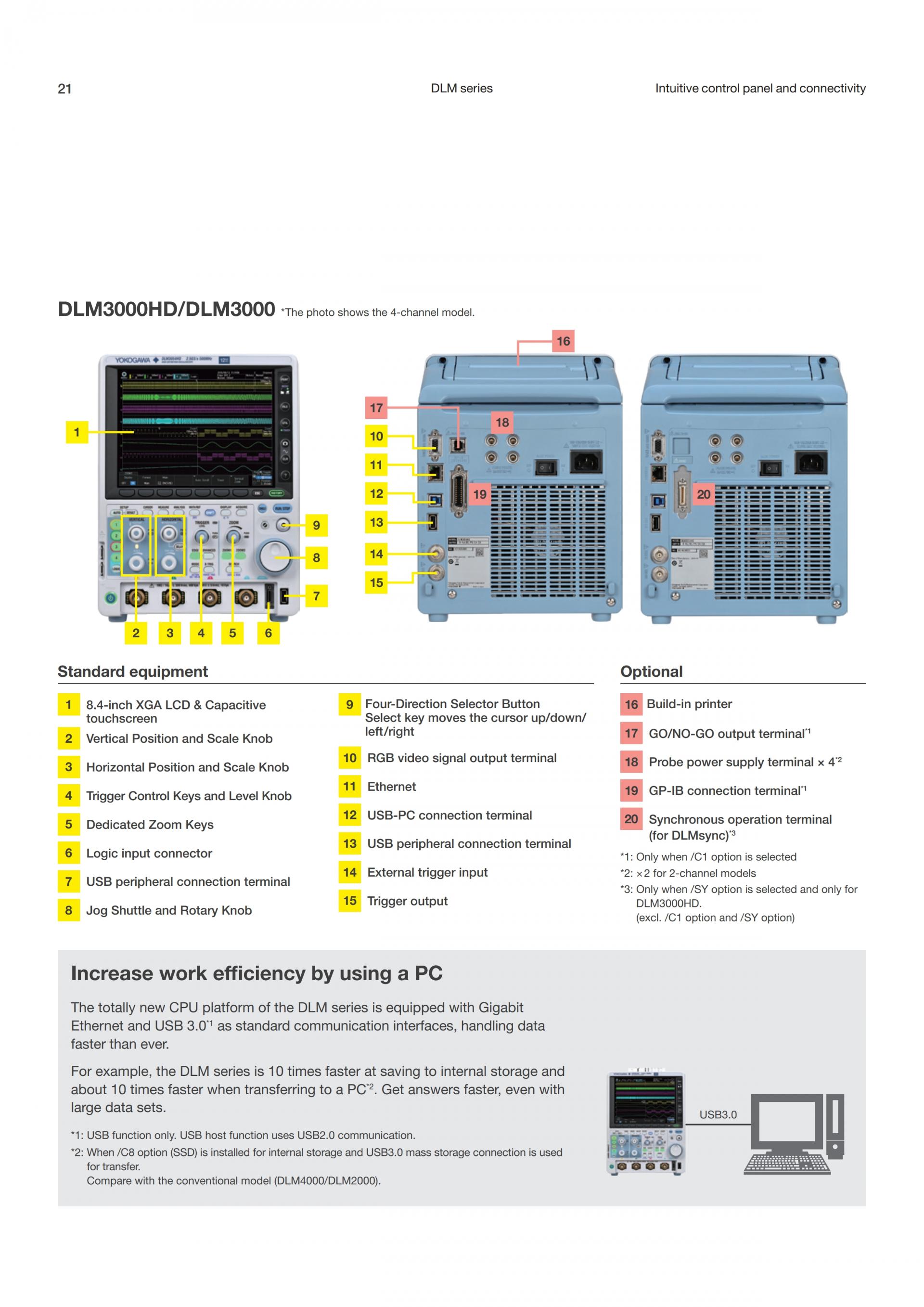YOKOGAWA의 DLM3000HD는 최첨단 4채널 고분해능 오실로스코프입니다. 100년 이상의 계측기 개발로 축적한 개발 기술에 의해 탄생한 DLM3000HD은 기존 모델의 조작성을 유지하면서 수직축 분해능이나 레코드 길이의 확장되었고, 고정밀 파워분석기와의 시각동기가 가능해졌습니다.