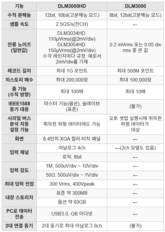 DLM3000HD와 DLM3000의 비교