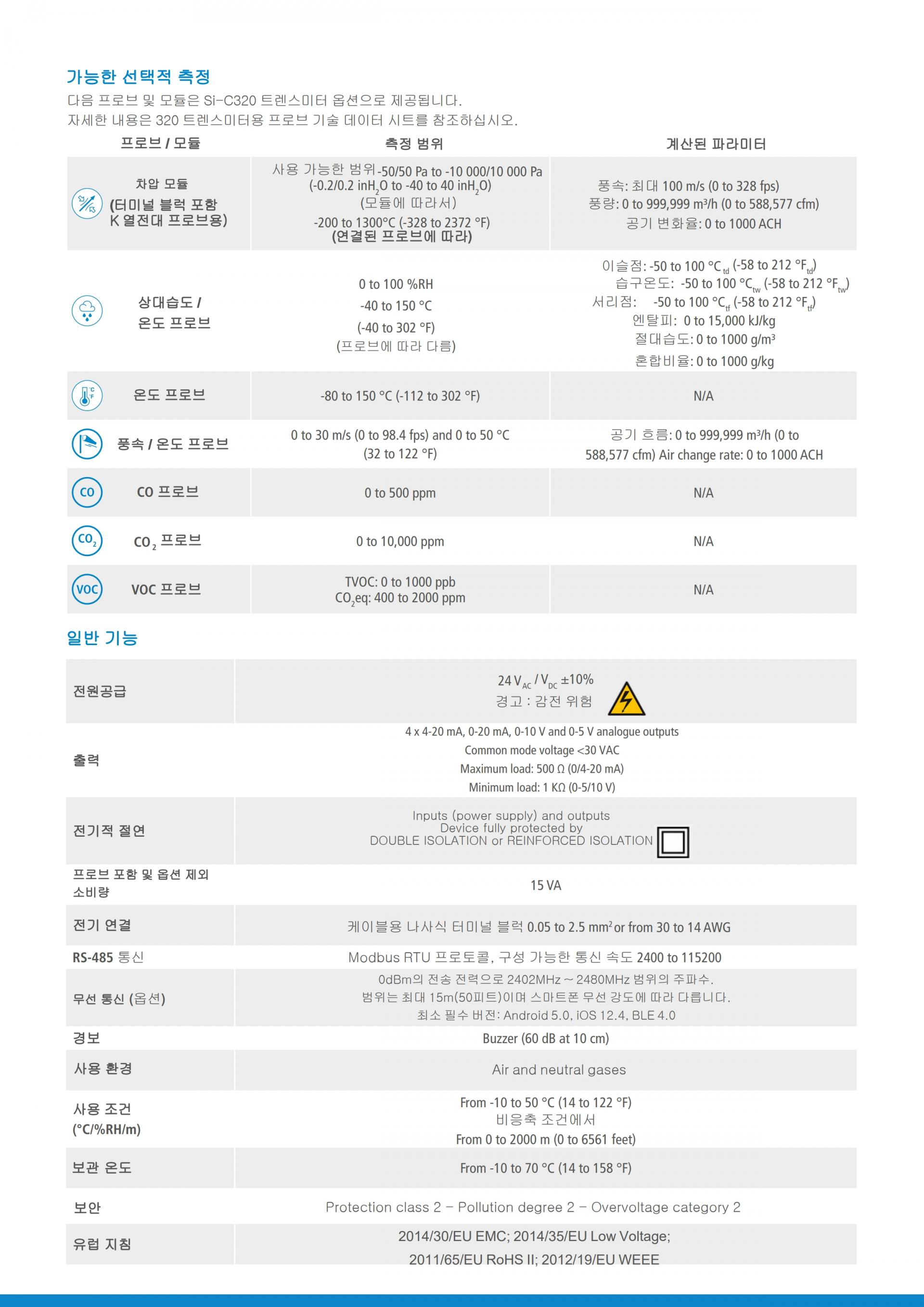 새롭게 리뉴얼 된 Si-C320 다기능 트랜스미터는 공기의 완벽한 조절/모니터링이 필요한 클린 룸, 규제된 환경 및 산업용 VAC 분야에 신뢰할 수 있는 측정을 제공하고 가장 엄격한 규정을 준수할 수 있도록 해주며, 압력/풍속/습도 등을 포함한 여러 측정 항목을 포괄적으로 확인하고 제어할 수 있습니다.