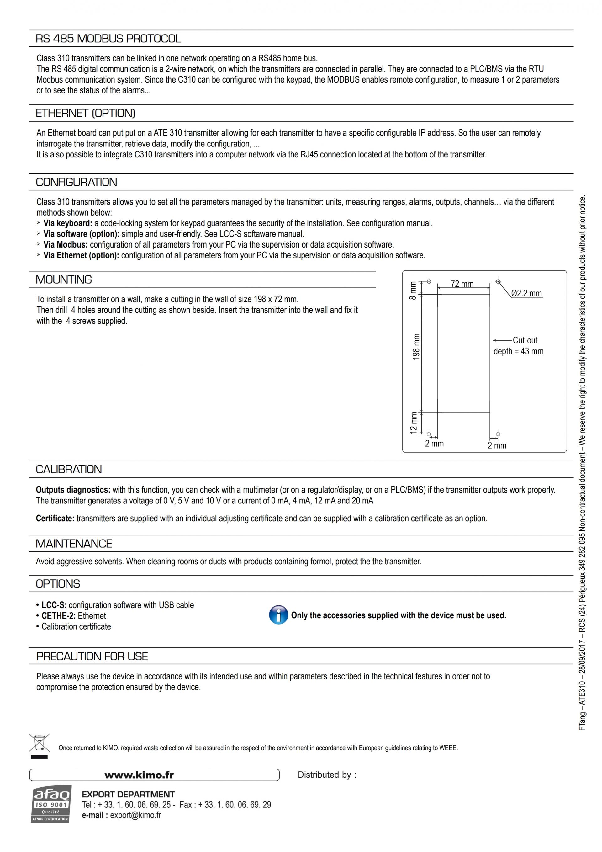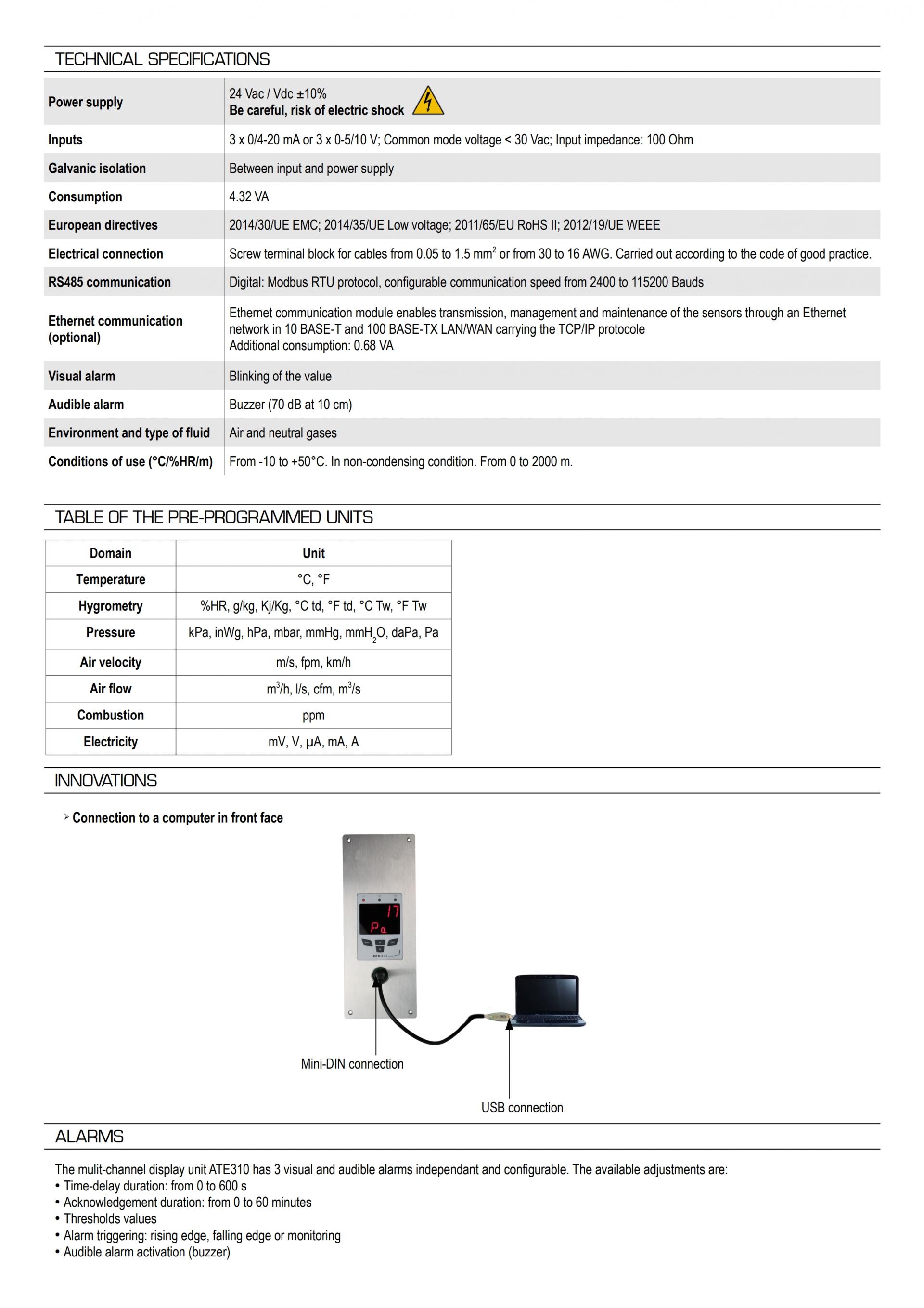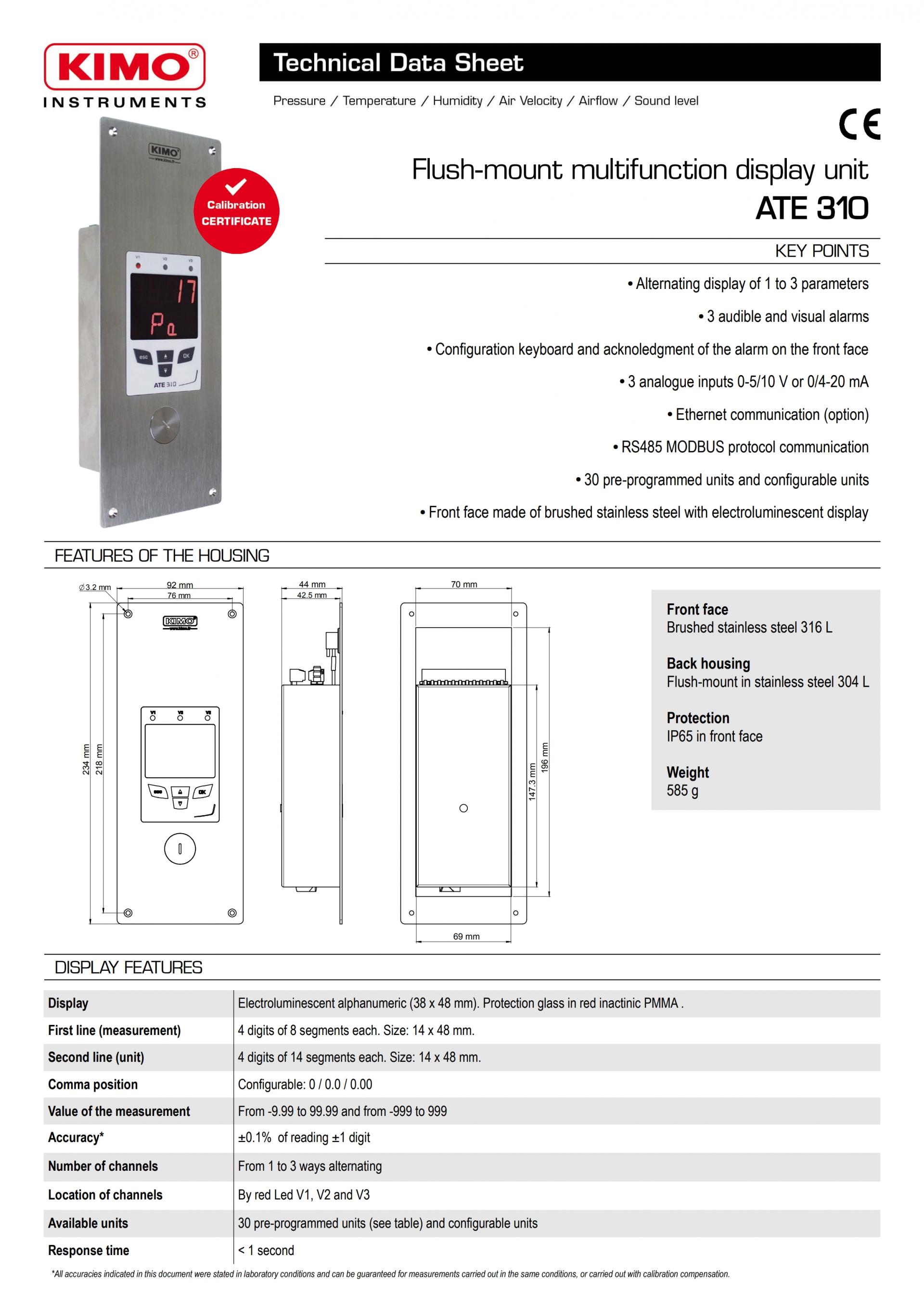 Kimo’s ATE 310 can display three parameters (for example humidity, temperature and pressure). It can be installed flush-mounted or wall-mounted.
