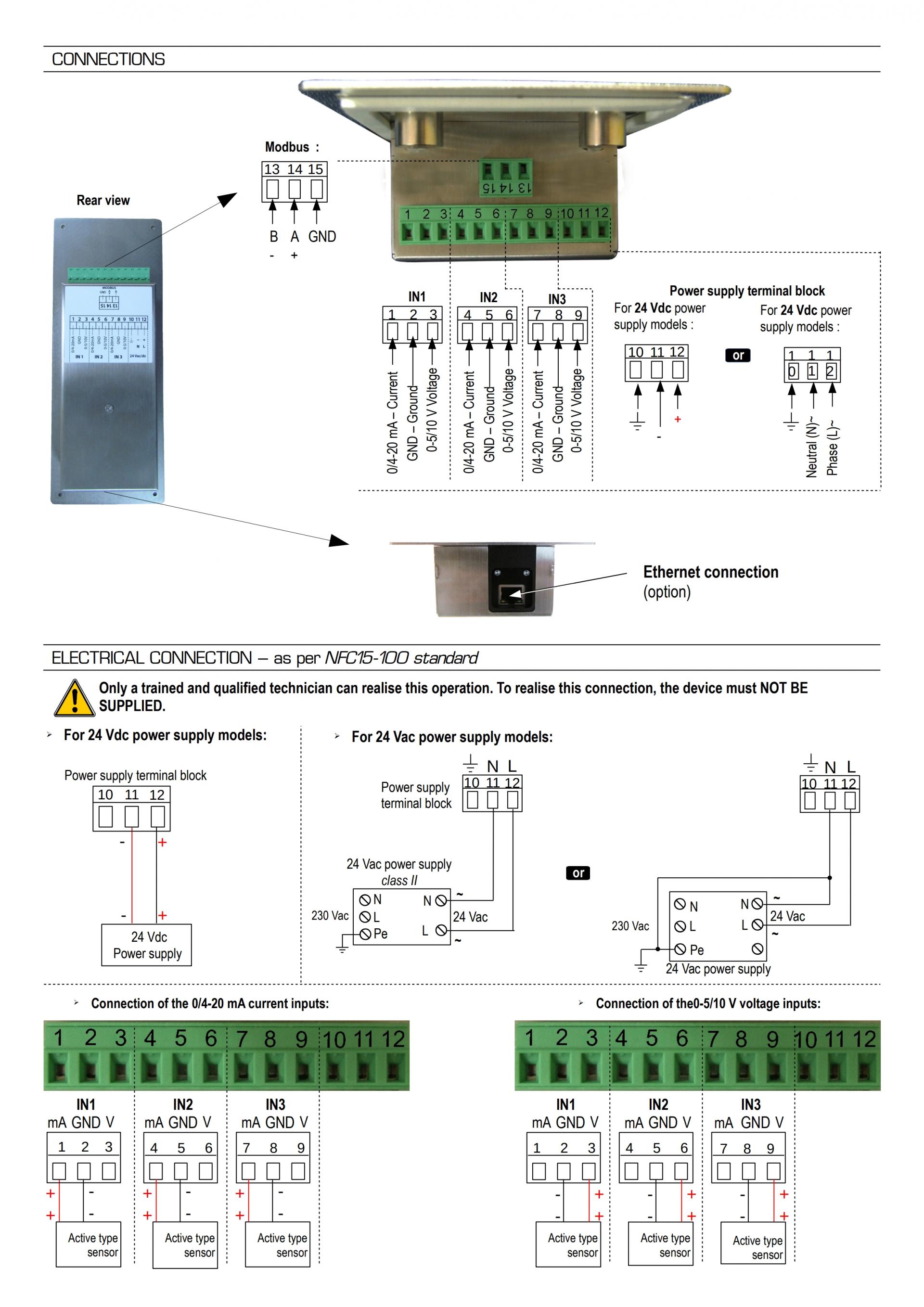 - Three analogue inputs 0-5/10 V or 0/4-20 mA
