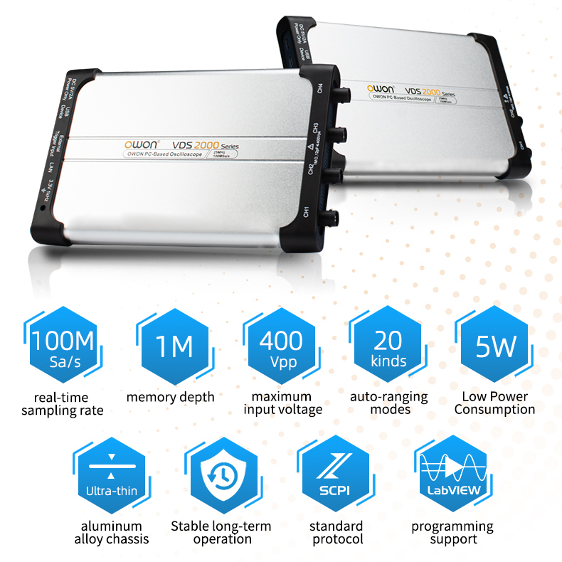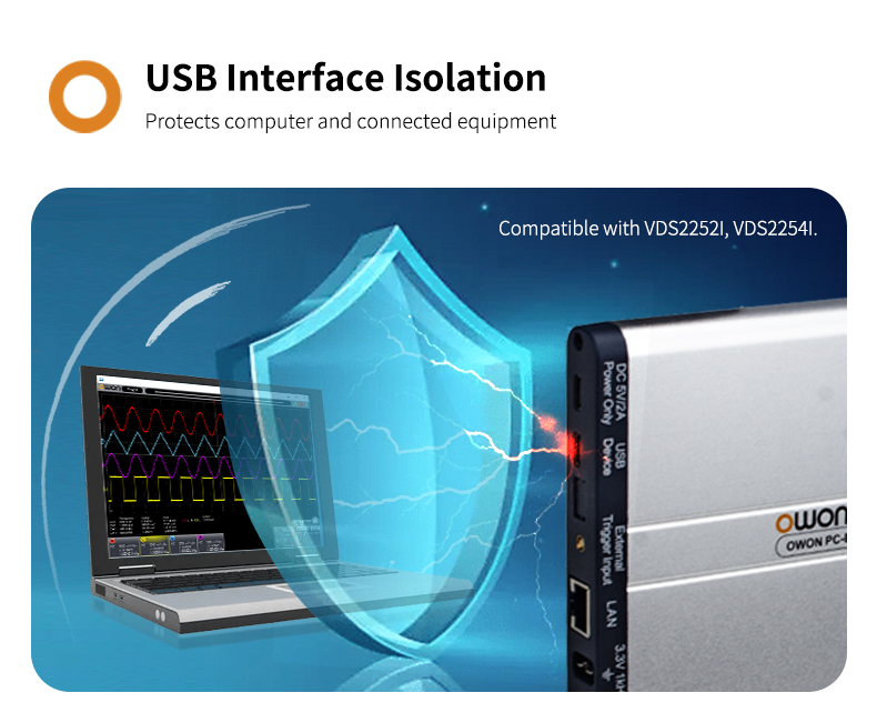 - USB Interface Isolation : Protects computers and measured analog signals from power supply and ground loop interference (VDS-I model)