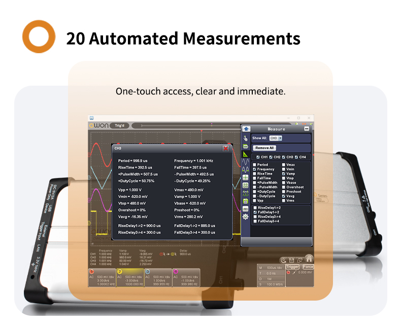 - Each channel features 1M storage length, allowing capture and preservation of more waveform details to aid engineers in more accurate analysis and fault diagnosis