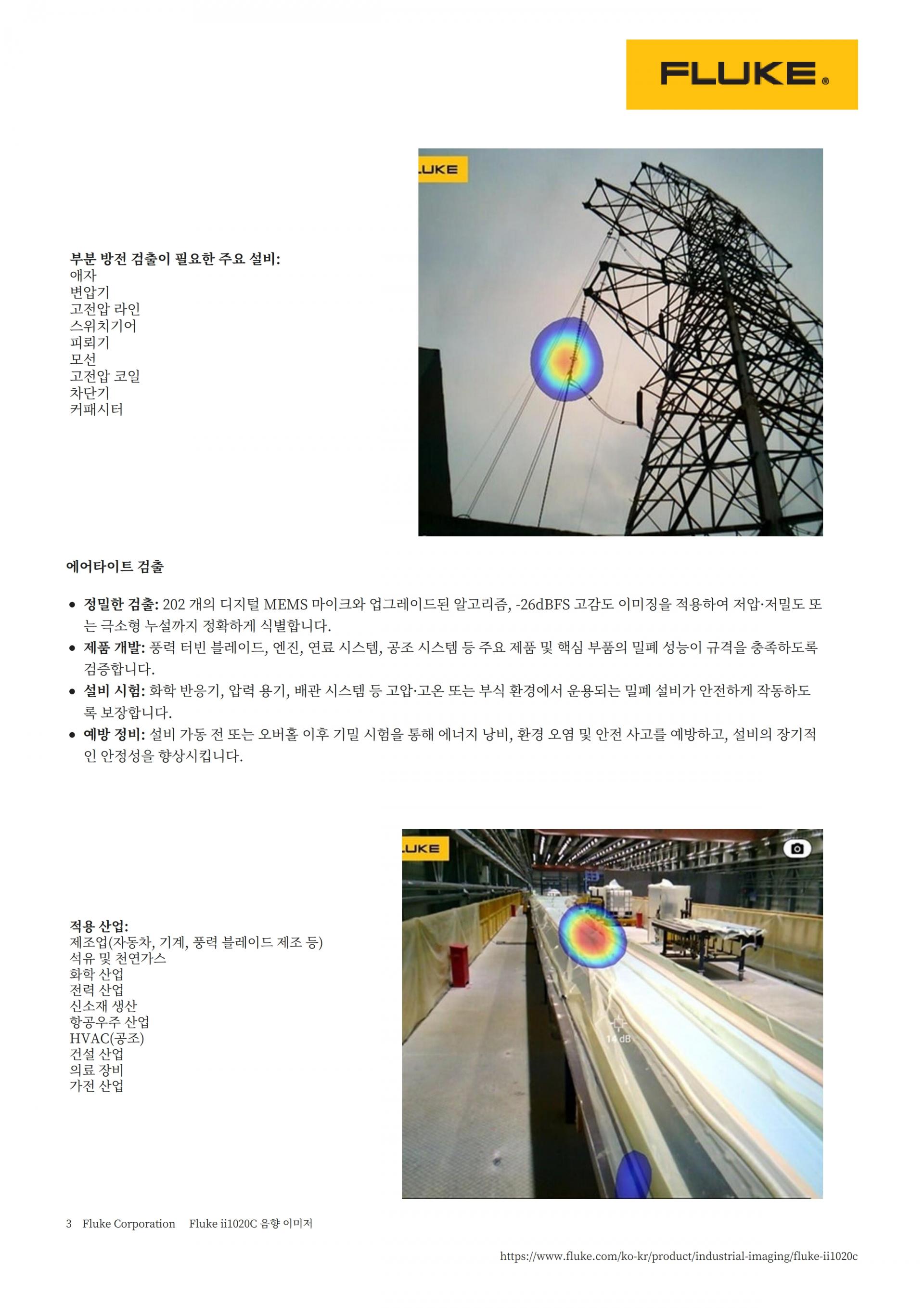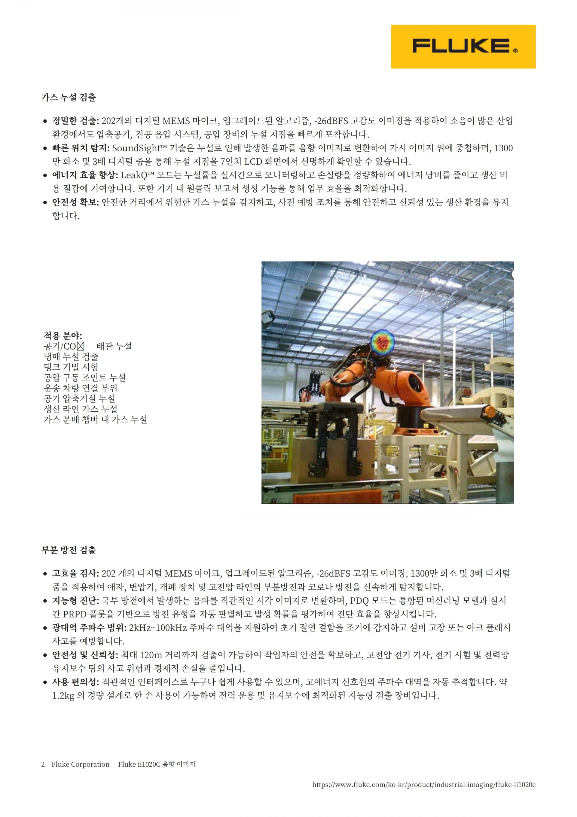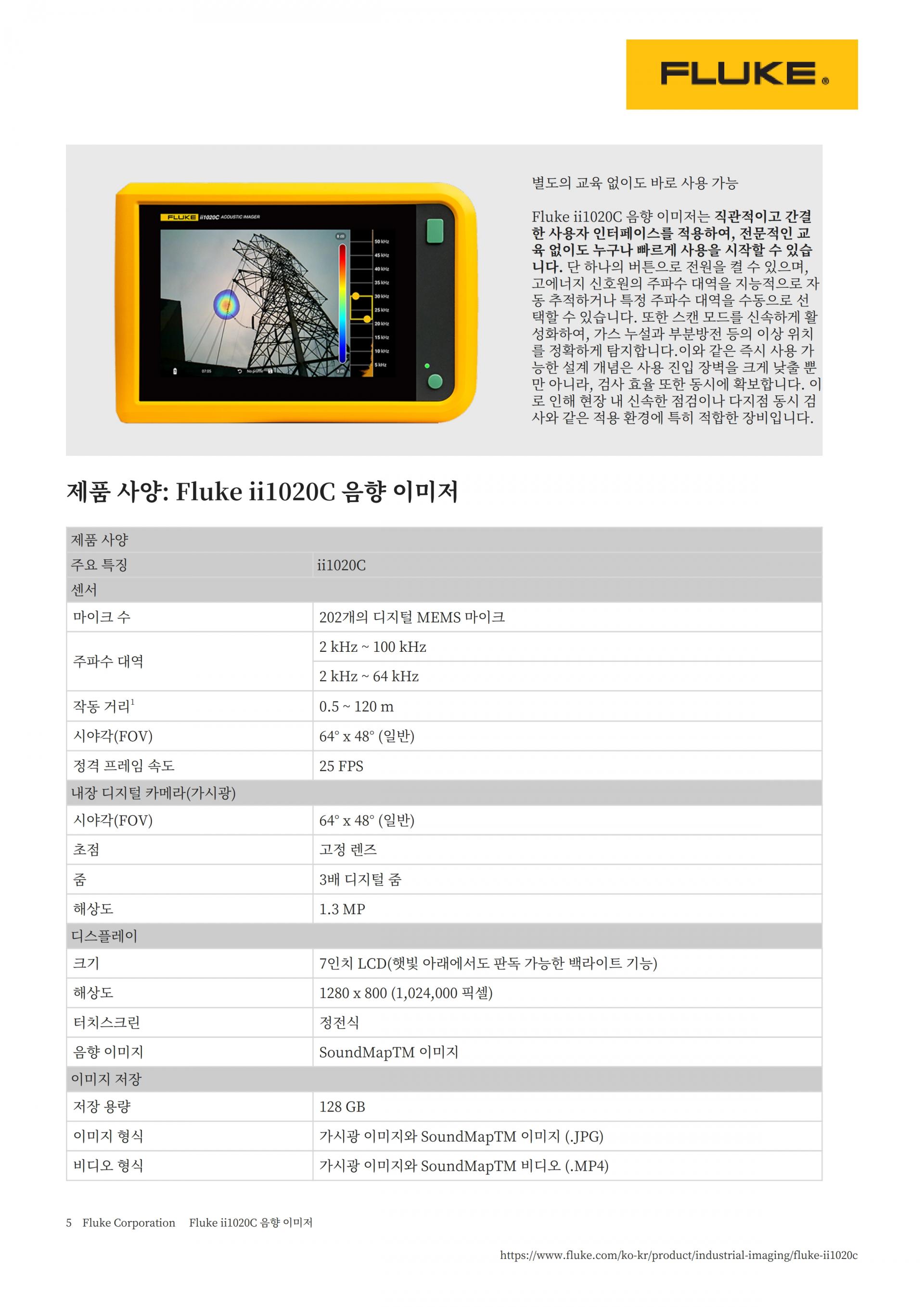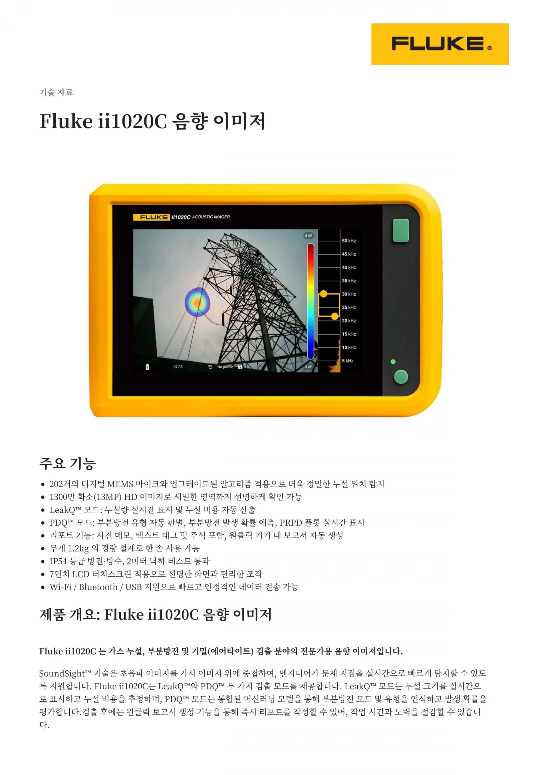 Fluke ii1020C 는 가스 누설, 부분방전 및 기밀(에어타이트) 검출 분야의 전문가용 음향 이미저입니다.
