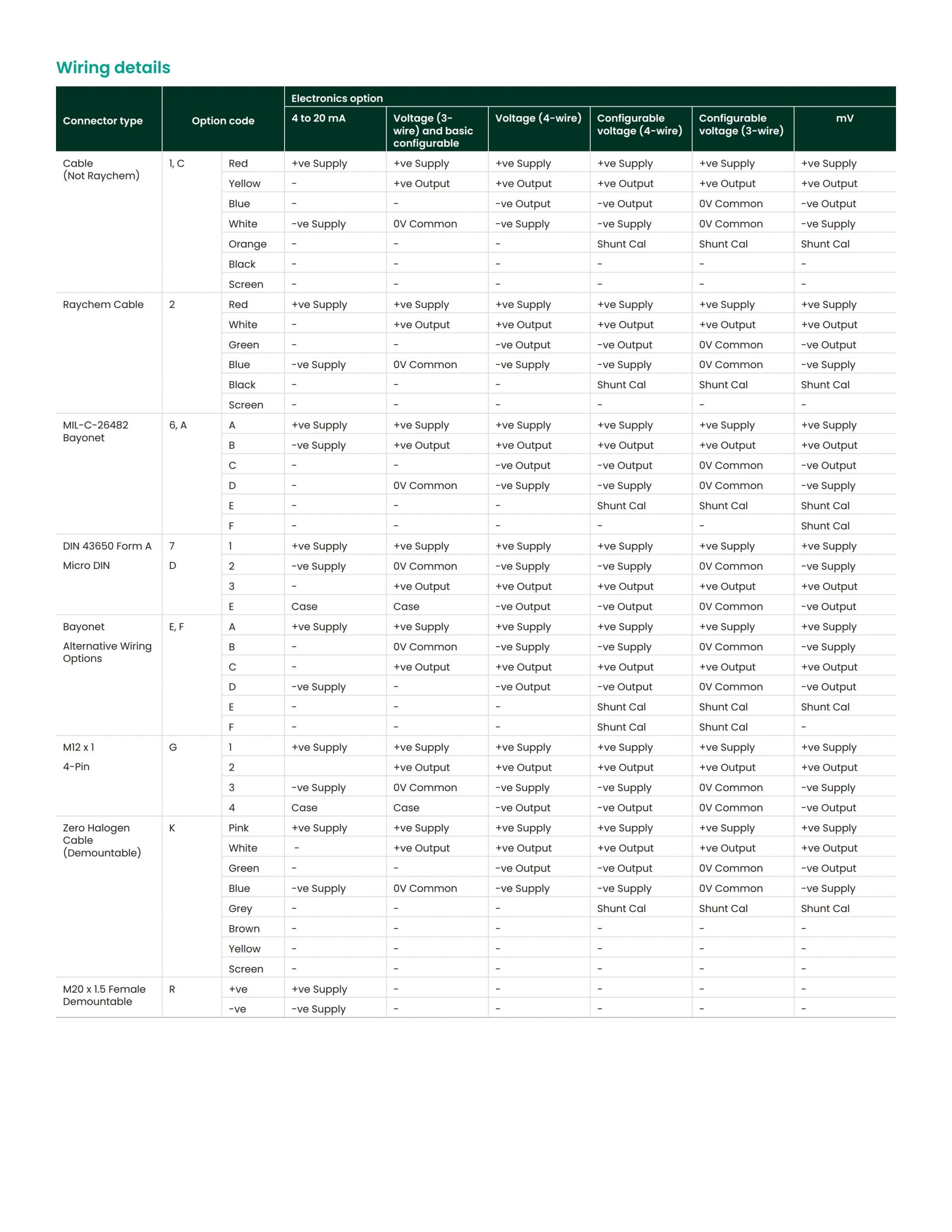 - 출력 옵션: mV, mA, 전압 및 구성 가능한 전압 출력