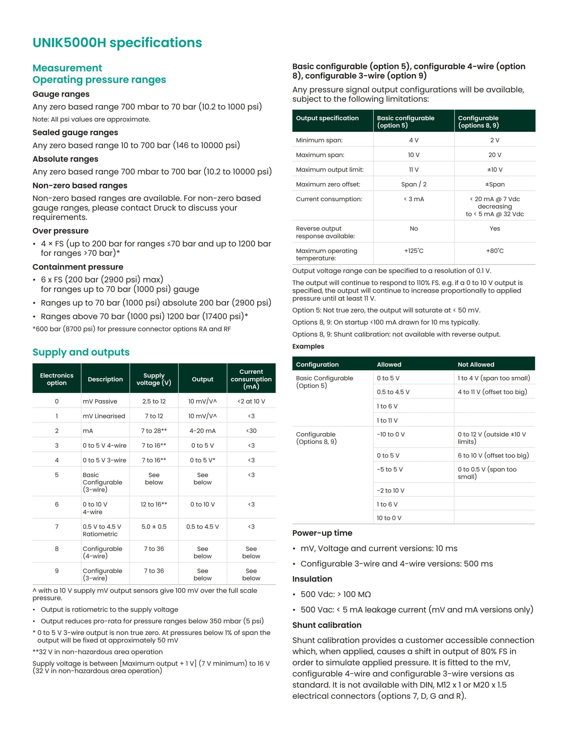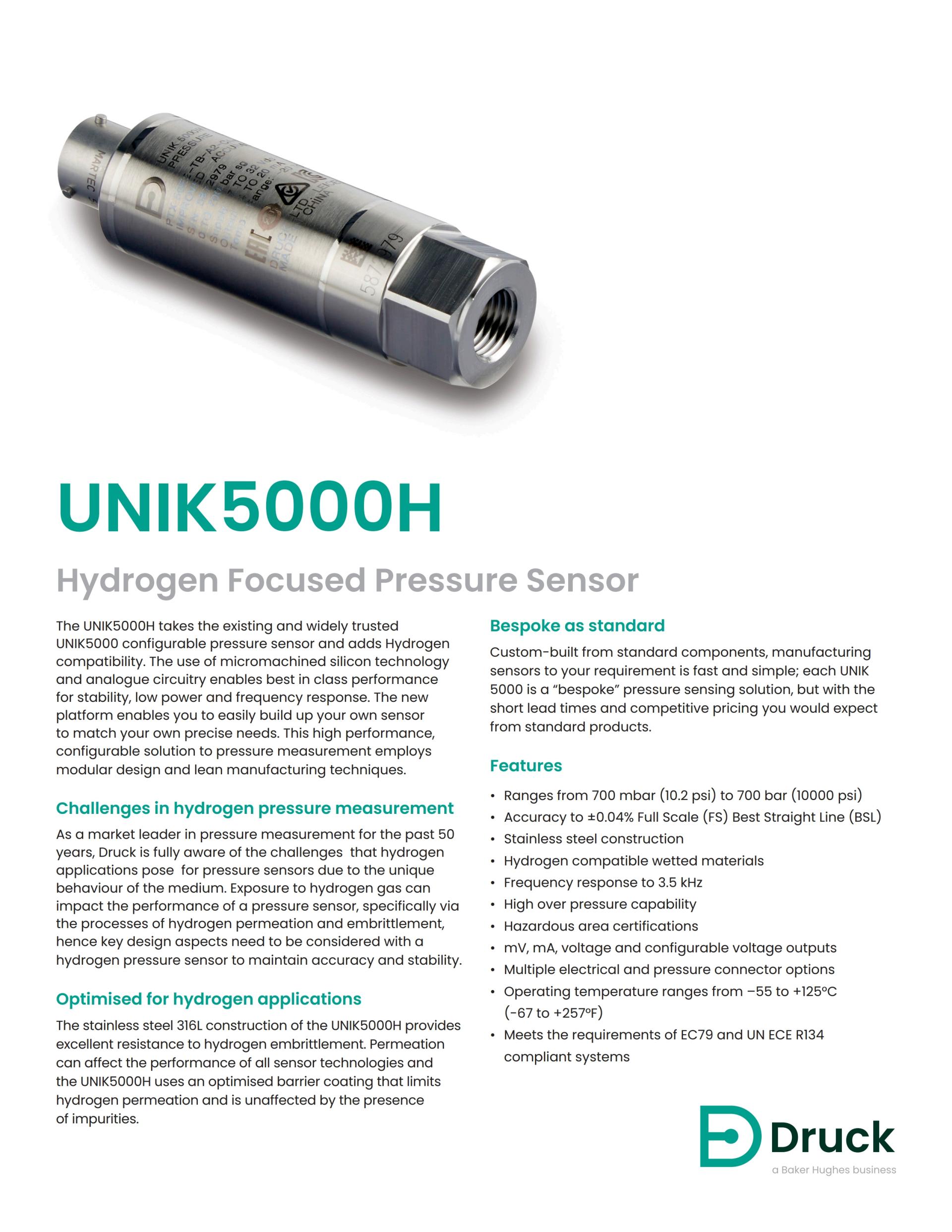 DRUCK UNIK5000H Hydrogen Focused Pressure Sensor