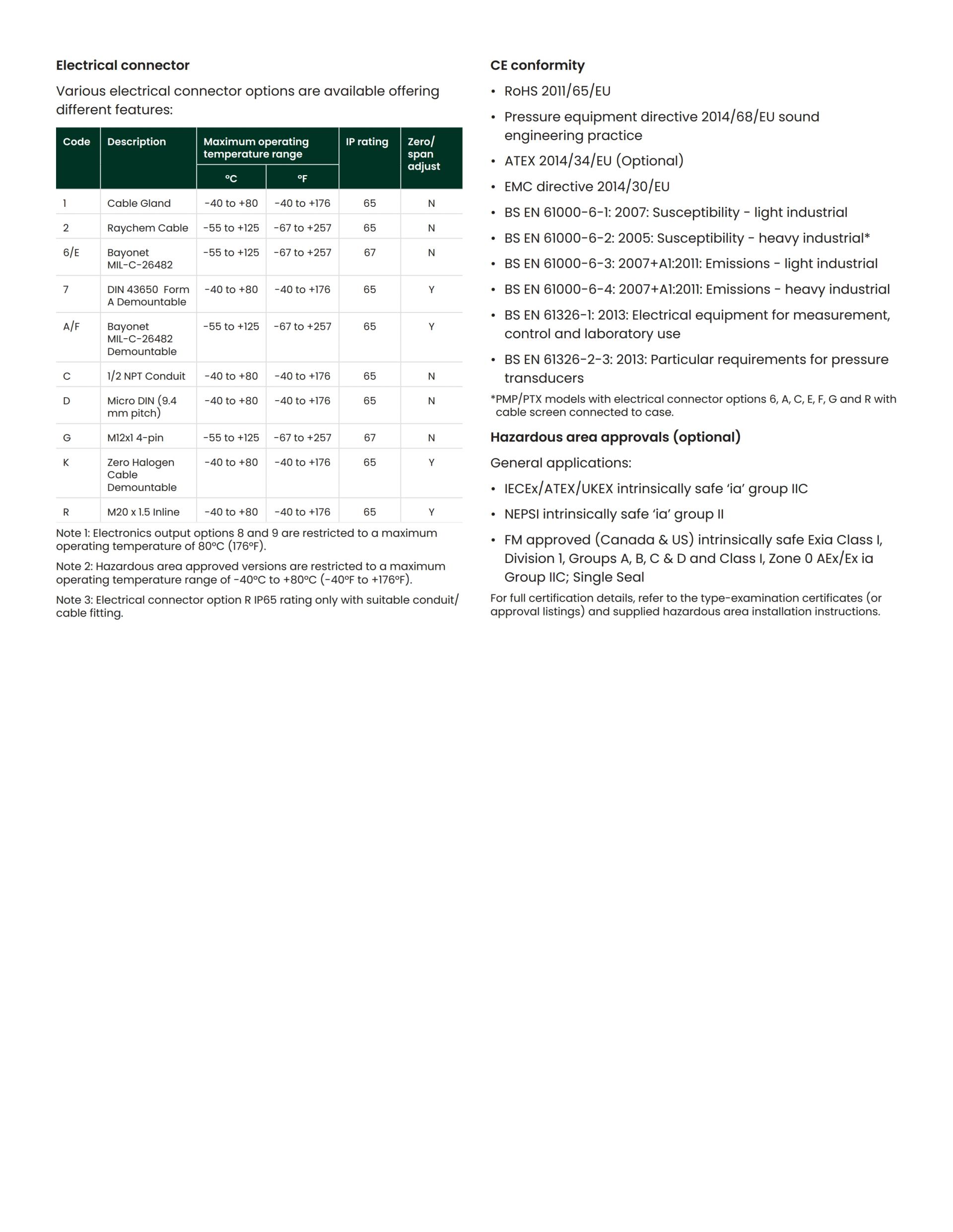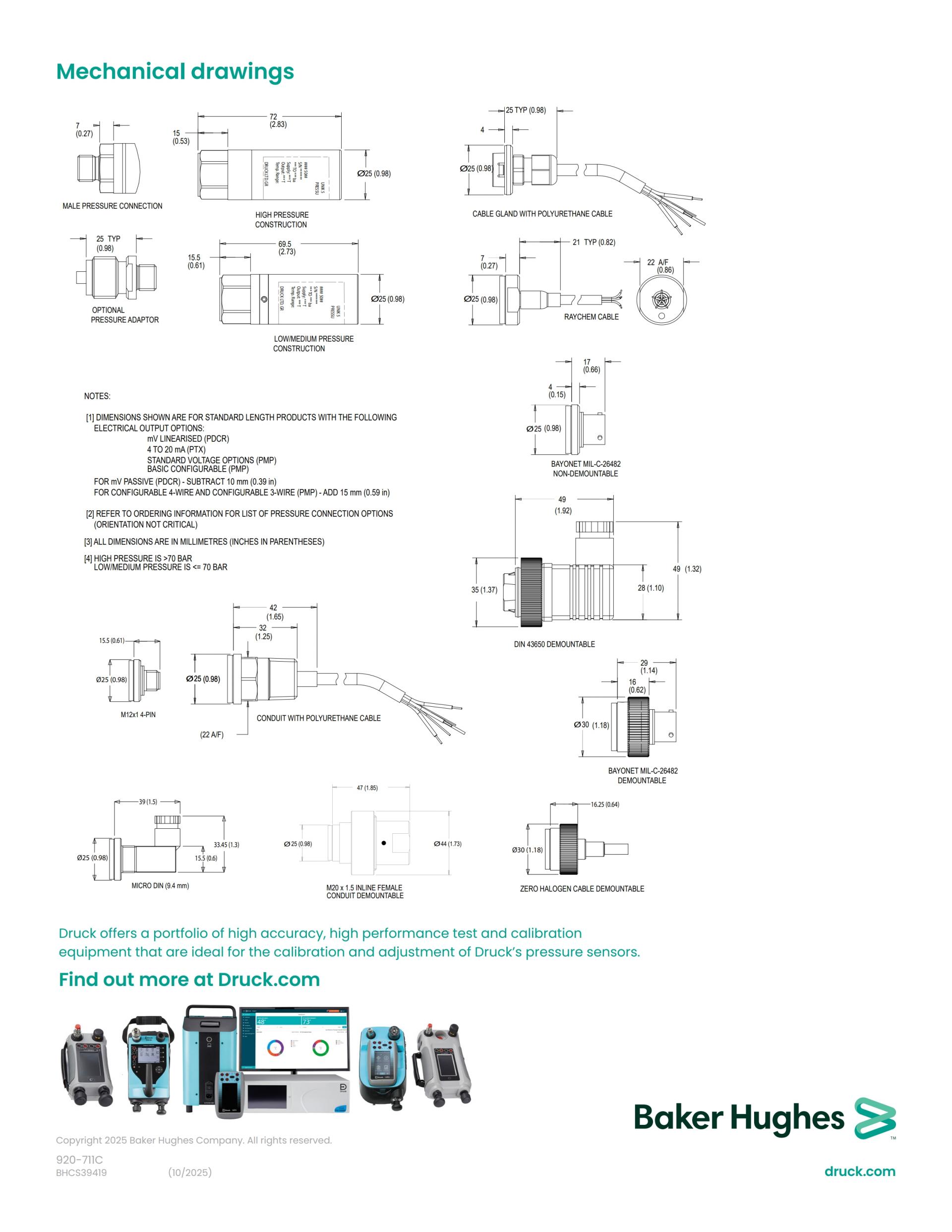 - 압력 범위: 700 mbar (10.2 psi)에서 700 bar (10,000 psi)