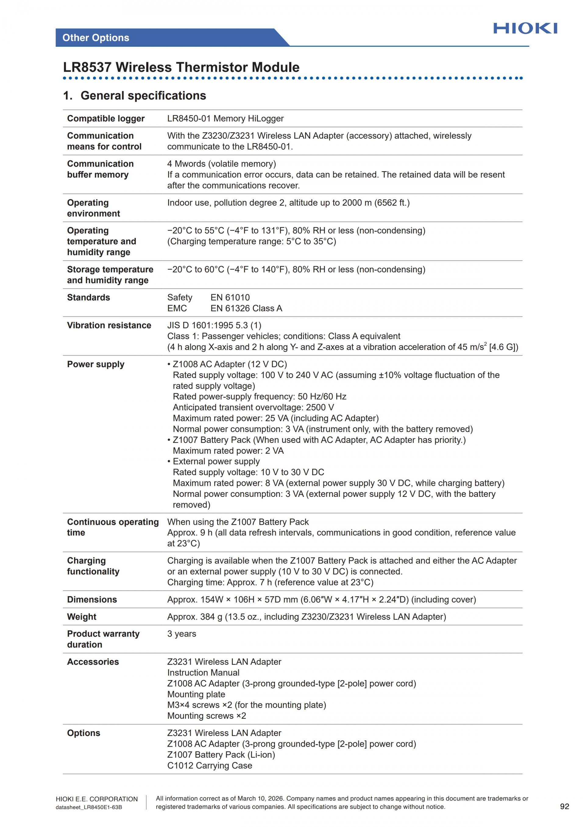 HIOKI LR8537 WIRELESS THERMISTOR MODULE
