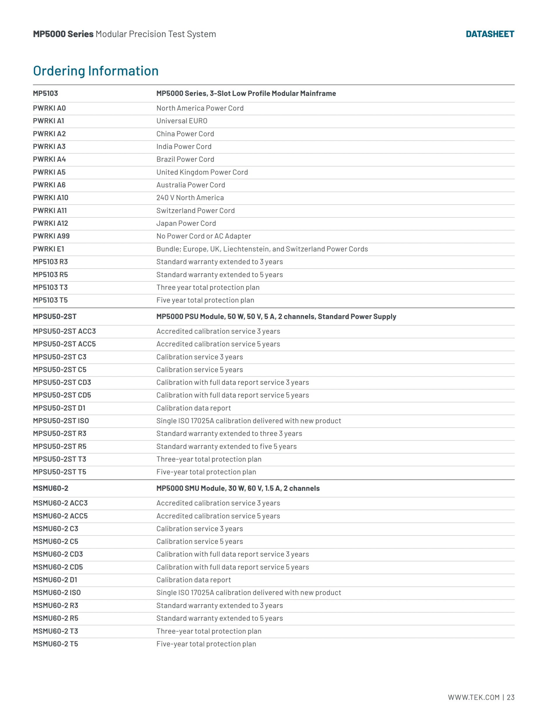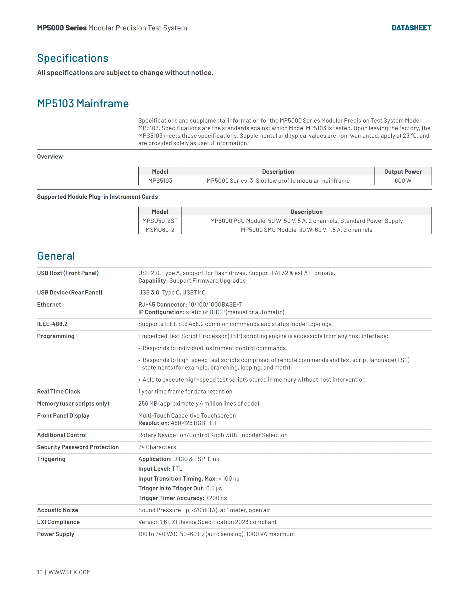 TEKTRONIX MP5000 시리즈 모듈형 정밀 테스트 시스템