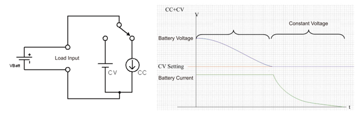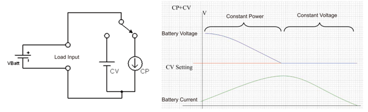 - 배터리 방전 전압이 CV 값에 도달하면, 전자 부하는 방전을 중지하고 전압은 유지됩니다.