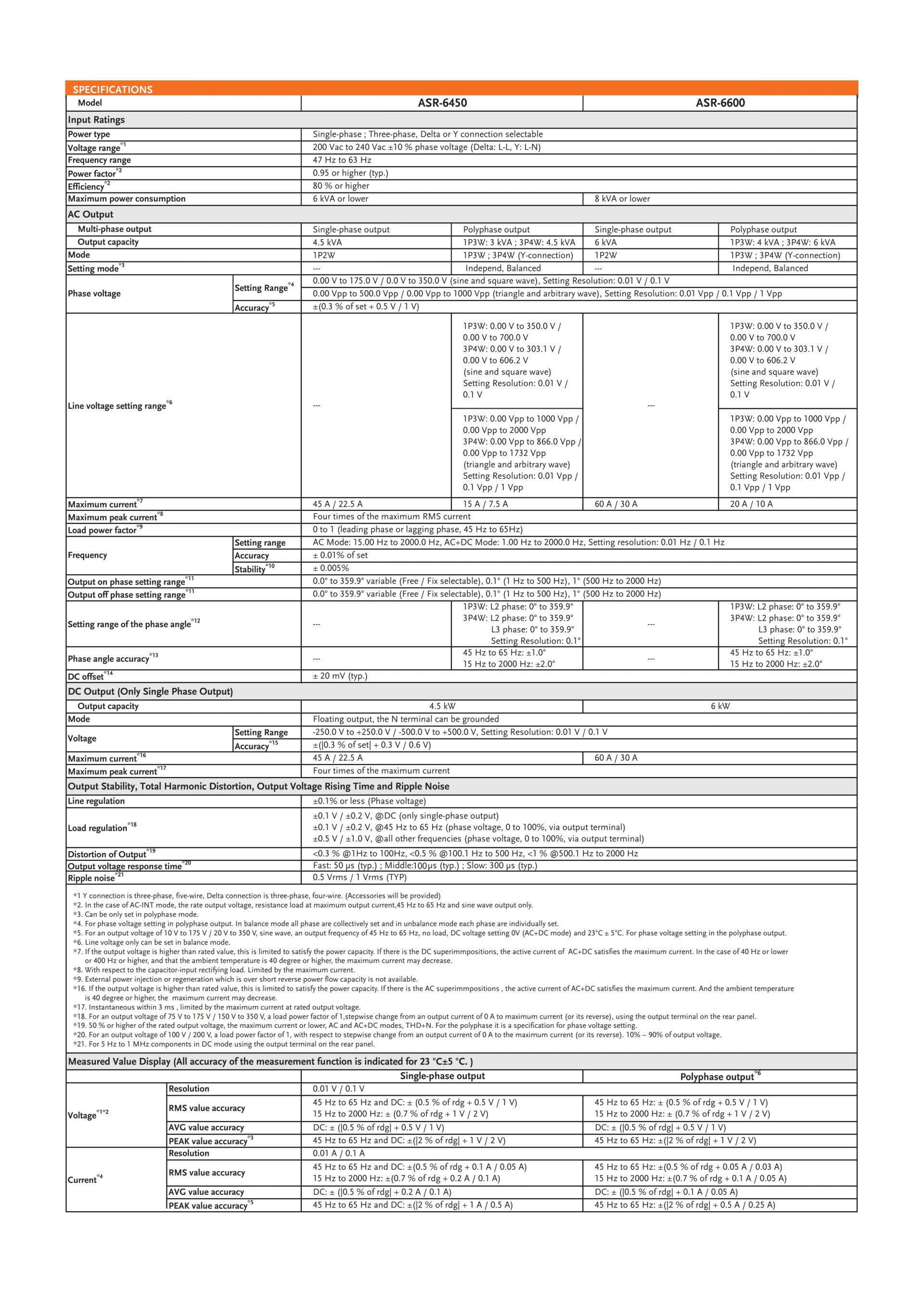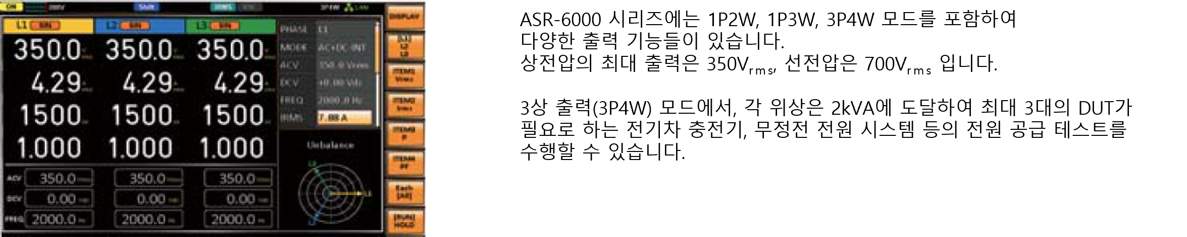 ASR-6000 시리즈는 ASR-6450 (AC/DC 4kVA), ASR-6600 (AC/DC 6kVA) 및 ASR-6500 (AC/DC 5kVA), ASR-6660 (AC/DC 6.6kVA) 4가지 모델로 분류되어 있습니다.