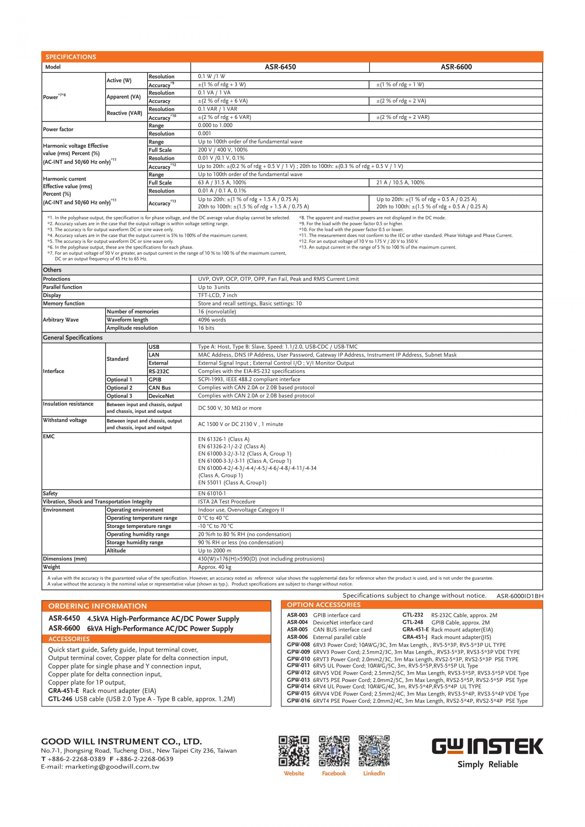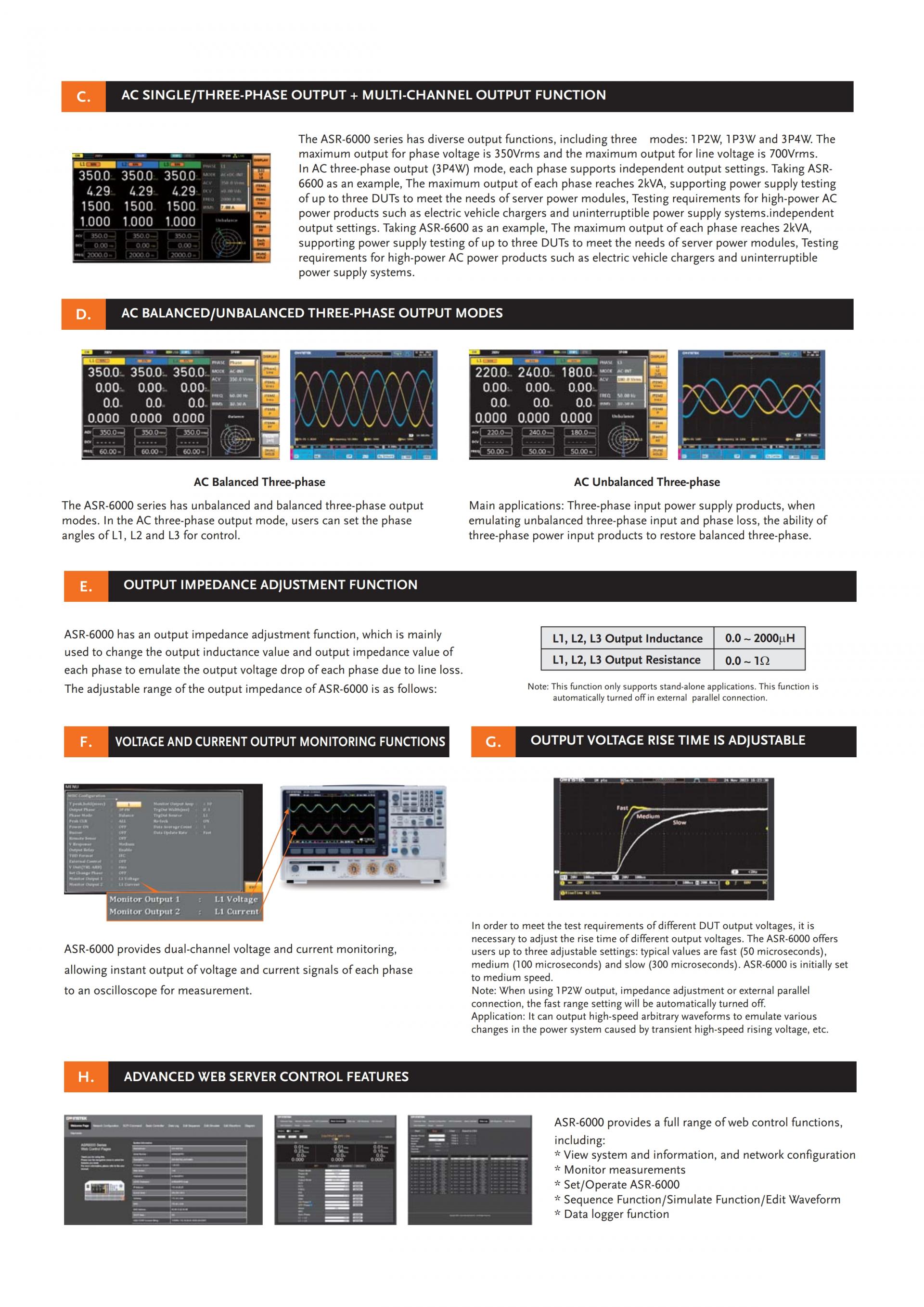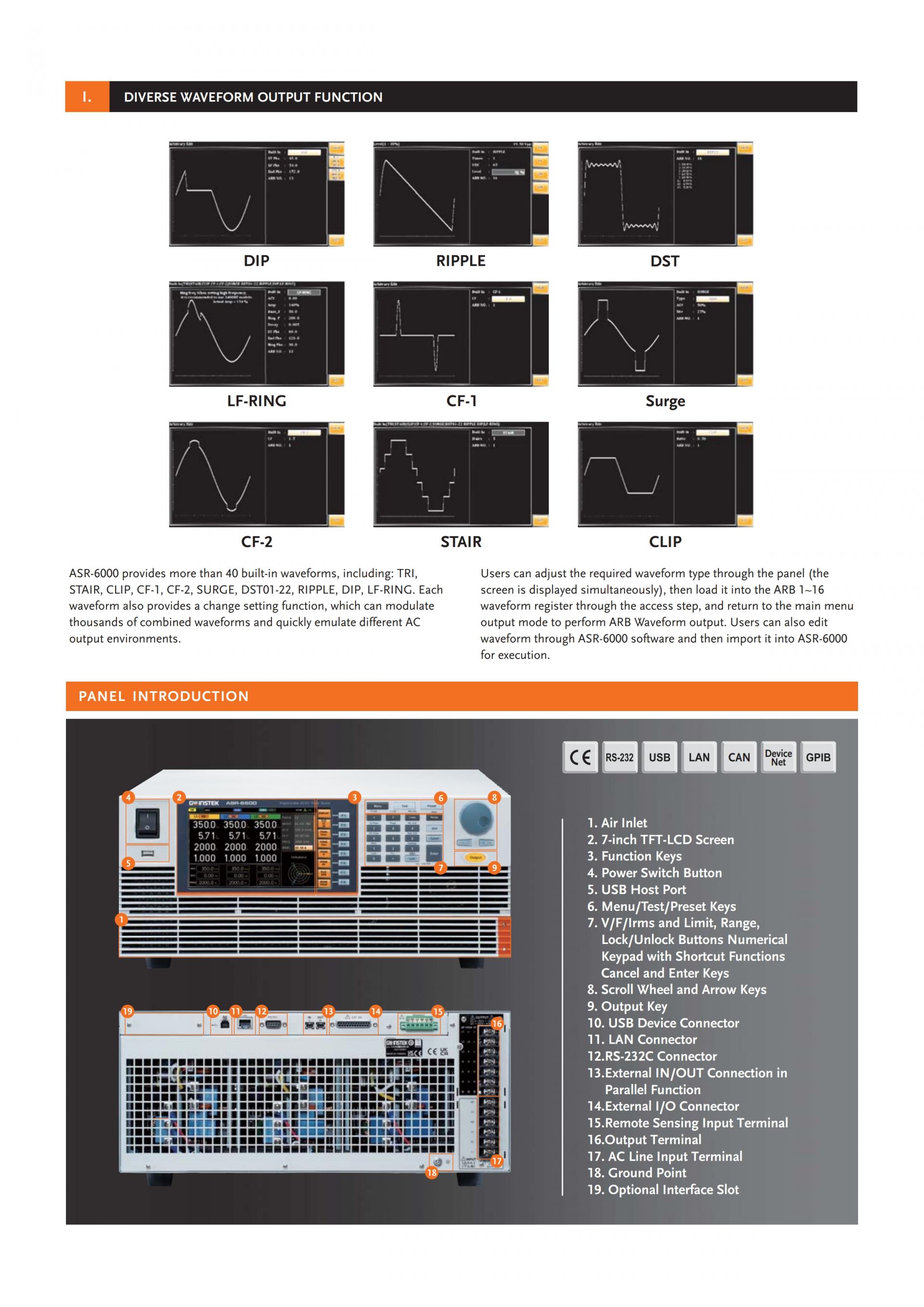 ASR-6000 시리즈는 GW Instek의 첫 독립실행형 유닛으로, AC 단상/3상 입력 및 출력 그리고 DC 전원 출력을 지원합니다.