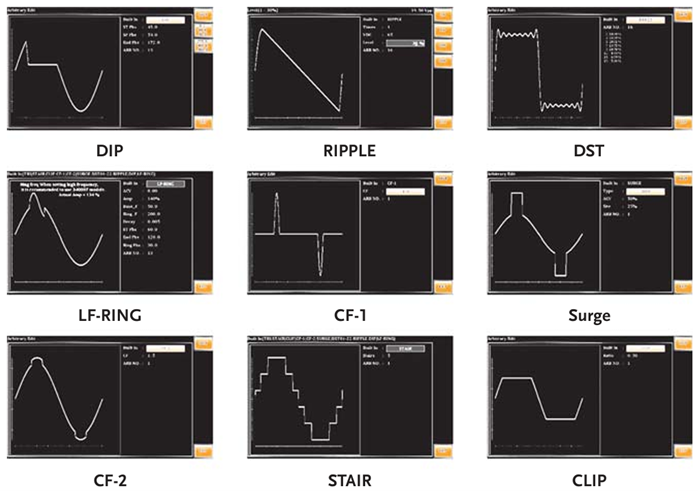 균형/불균형한 3상 전원, 고장 등의 더 다양한 전력 환경 변화를 시뮬레이션 할 수 있고, 3상 출력에 대해 다중 채널 출력을 지원하며, 출력 임피던스를 프로그래밍하여 조정할 수 있고, 최대 10 종의 임의 파형 출력을 지원합니다.