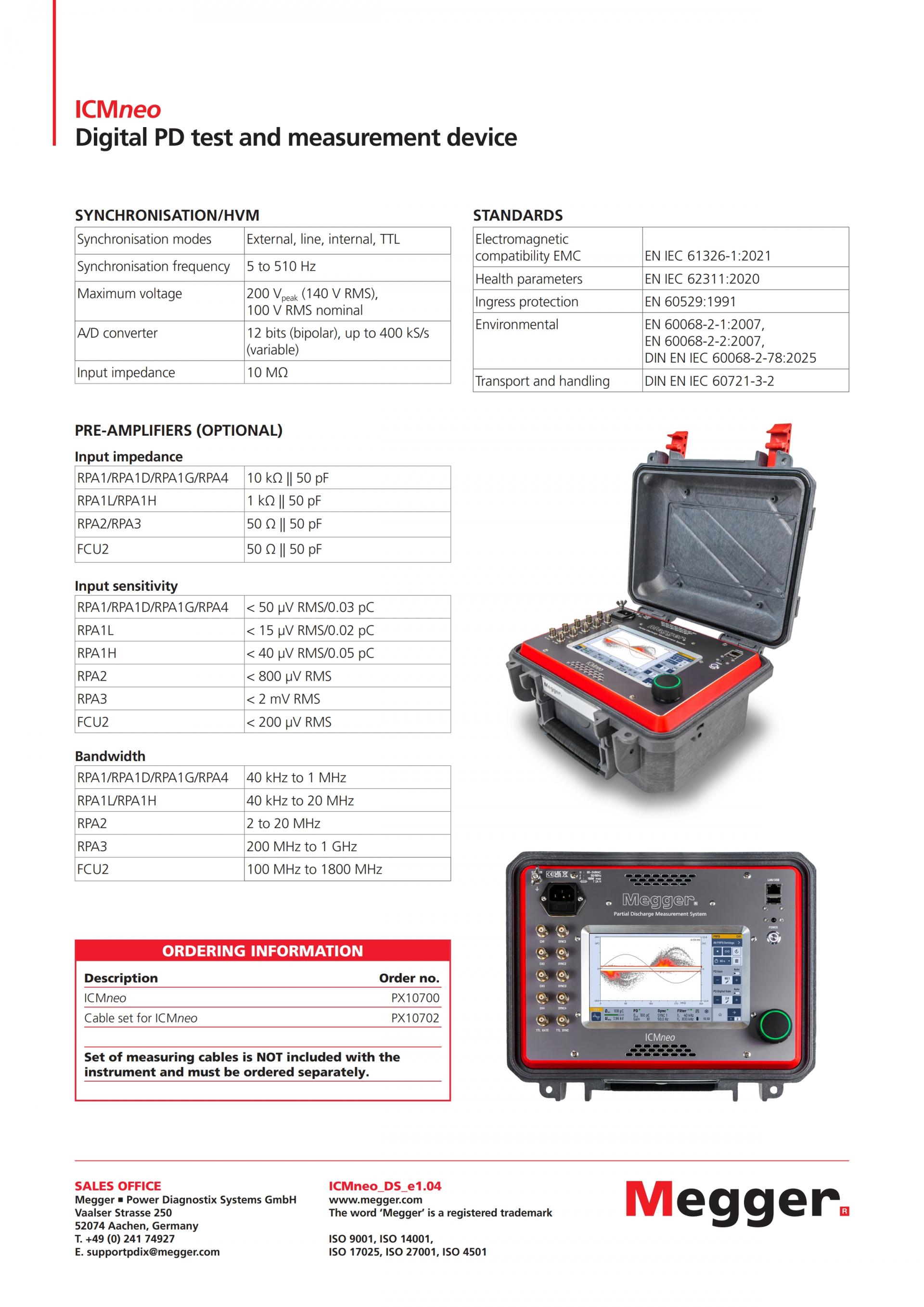 MEGGER ICMneo 디지털 부분 방전 테스트 및 측정 장치
