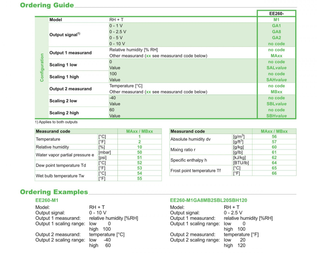 EE260은 측정된 습도 및 온도 값을 기반으로 이슬점 온도(Dew point temperature), 절대 습도(Absolute humidity) 또는 혼합비(Mixing ratio) 와 같은 값을 계산해 제공합니다.