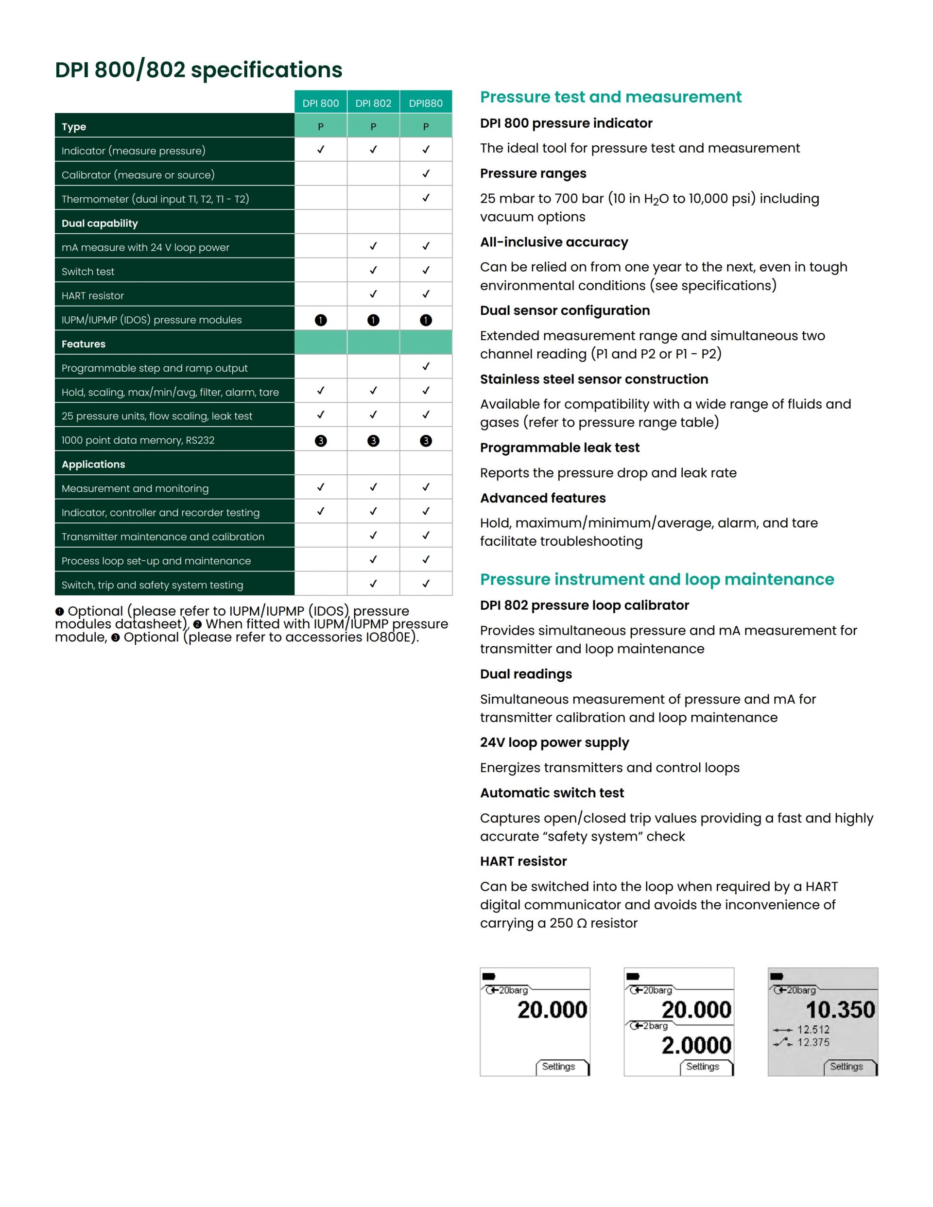 주요특징 | - 25 mbar ~ 700 bar의 범위 - 단일 또는 이중 범위 구성 - 압력 테스트 및 유지 보수 - 송신기 보정 - 루프 설정 및 진단 - 스위치 테스트 |