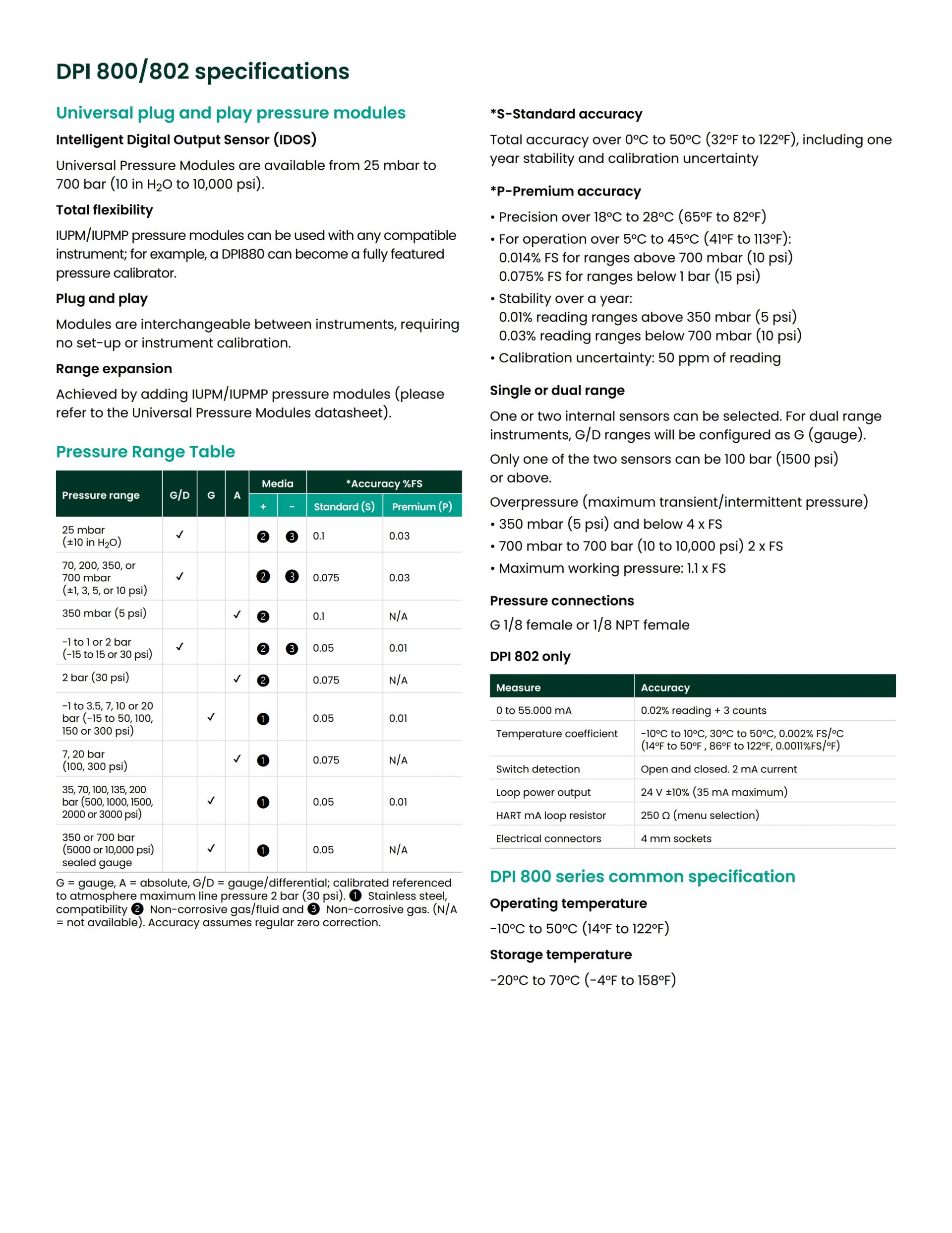 - IDOS 압력 센서는 0.05% FS 포괄적 정확도 또는 0.01% 정밀도 제공