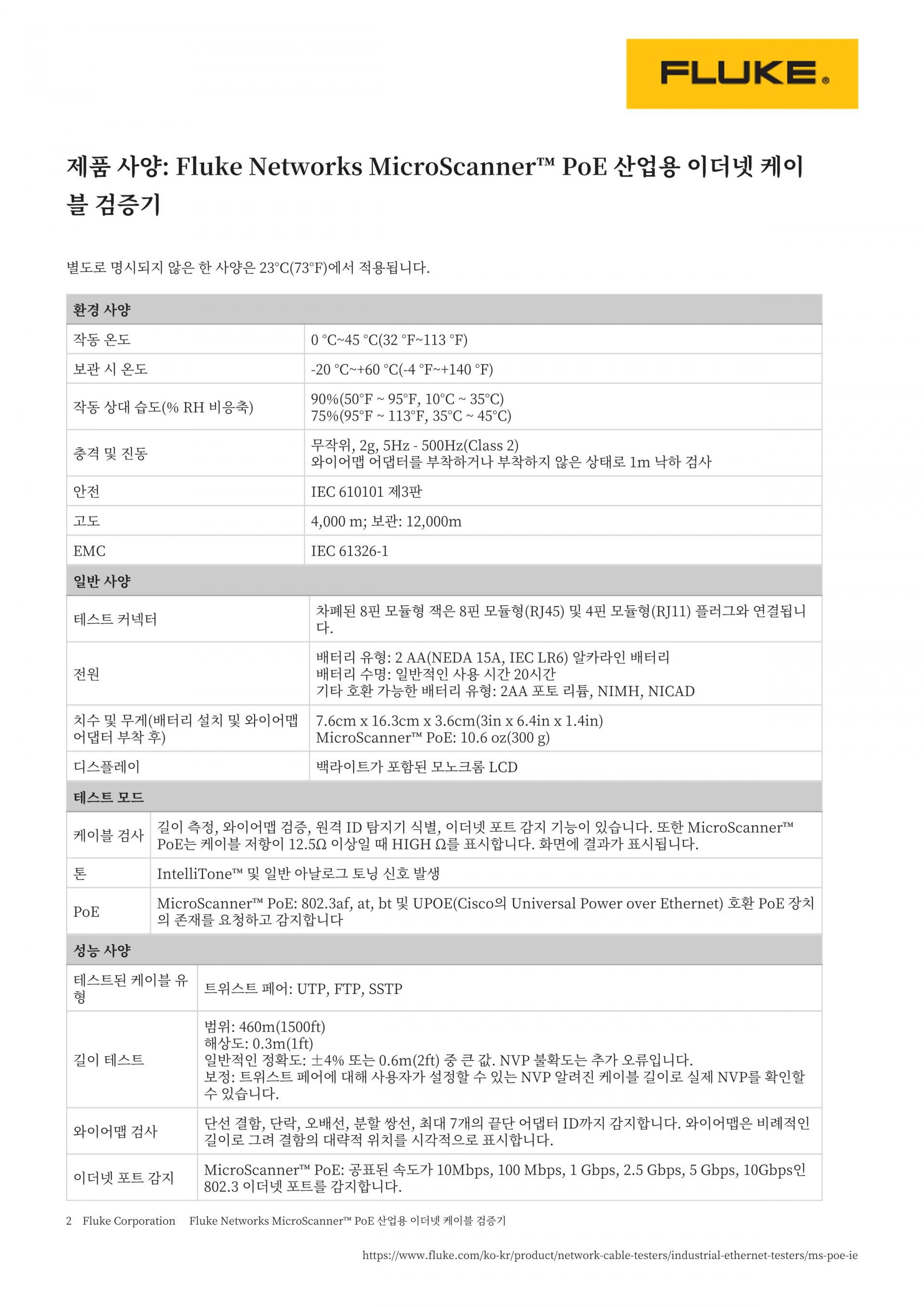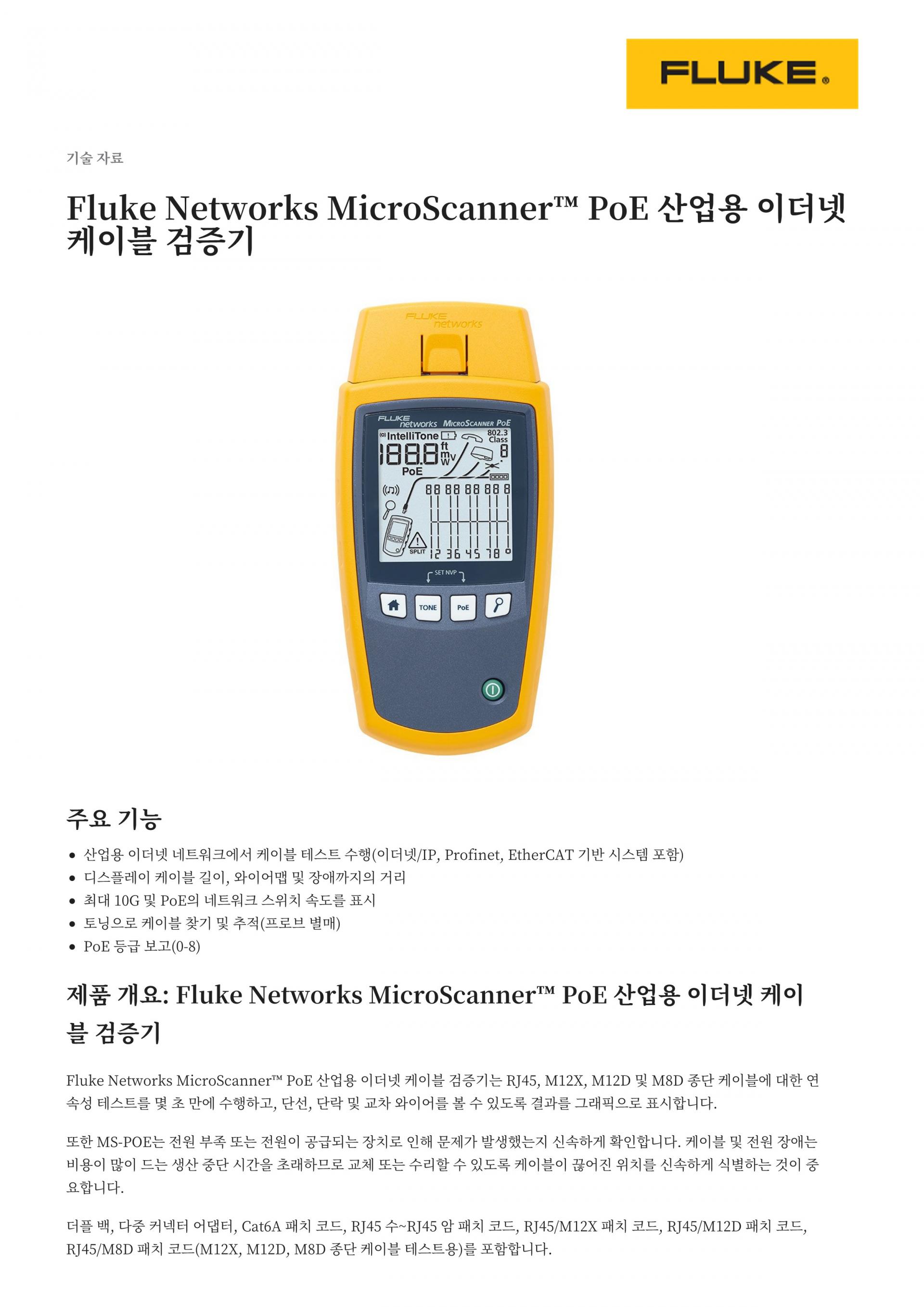 Fluke Networks MicroScanner™ 케이블/PoE 테스터