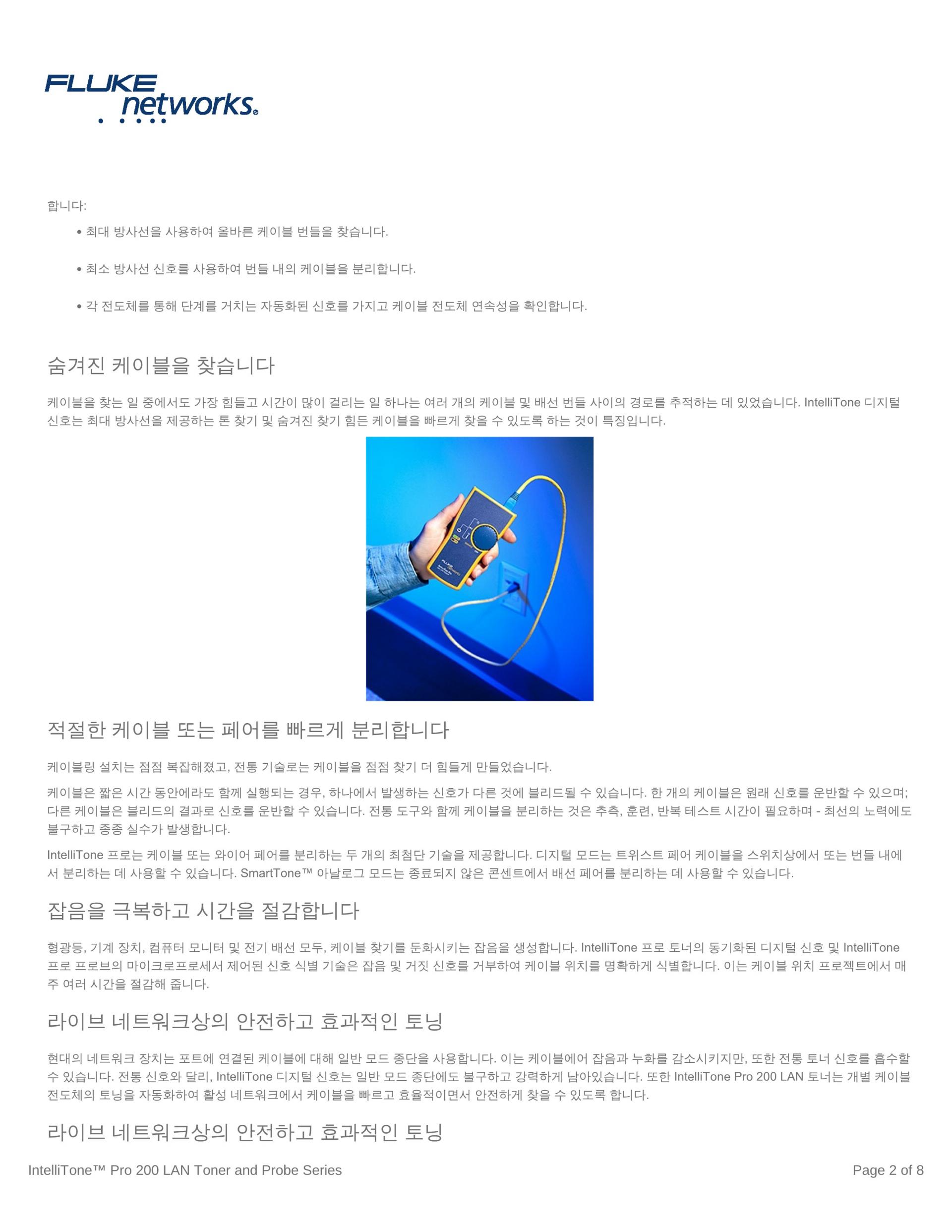- 활성 네트워크에서 케이블을 안전하고 효과적으로 찾습니다.