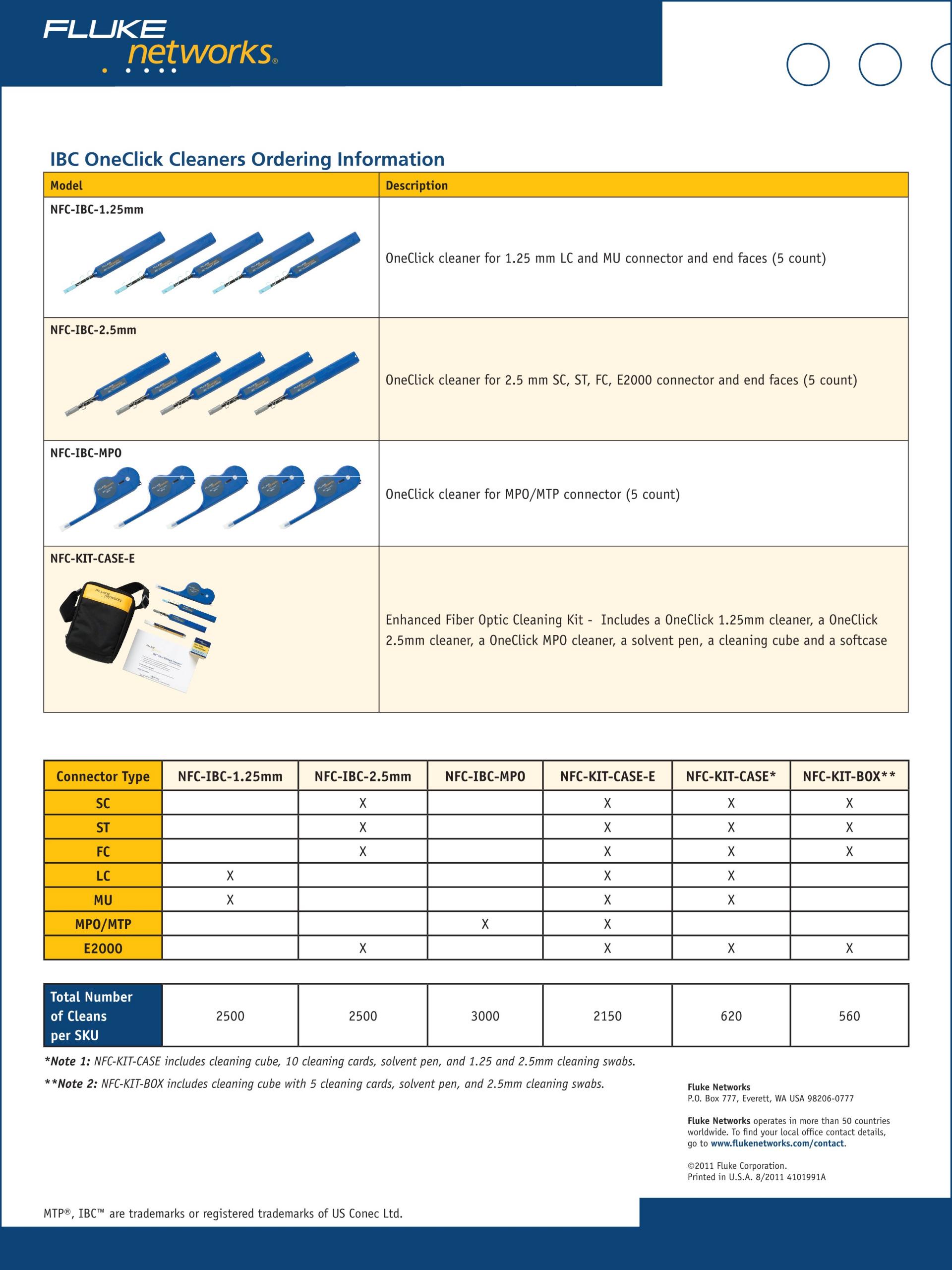 FLUKE NETWORKS IBC ONECLICK KIT 광 클리닉 키트