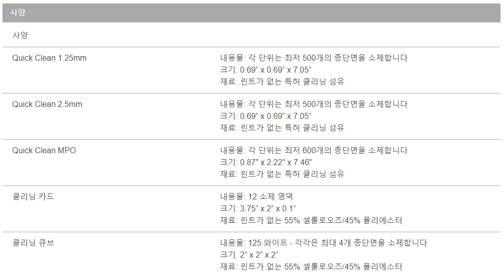 광케이블 단면 세척 지침