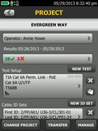Versiv ProjX™ 시스템은 모든 테스트가 올바르게 완료될 수 있도록 설치부터 시스템 승인까지의 작업을 관리합니다. 작업에 대한 테스트 정보를 입력하면 ProjX가 해당 정보를 전체 팀이 이해할 수 있는 이름으로 프로젝트 파일에 저장합니다. 정보를 다시 입력하지 않고 모듈 또는 작업을 변경합니다. USB 메모리 또는 이메일을 통해 프로젝트 파일을 공유함으로써 동일한 작업에서 여러 테스터를 지원합니다.
