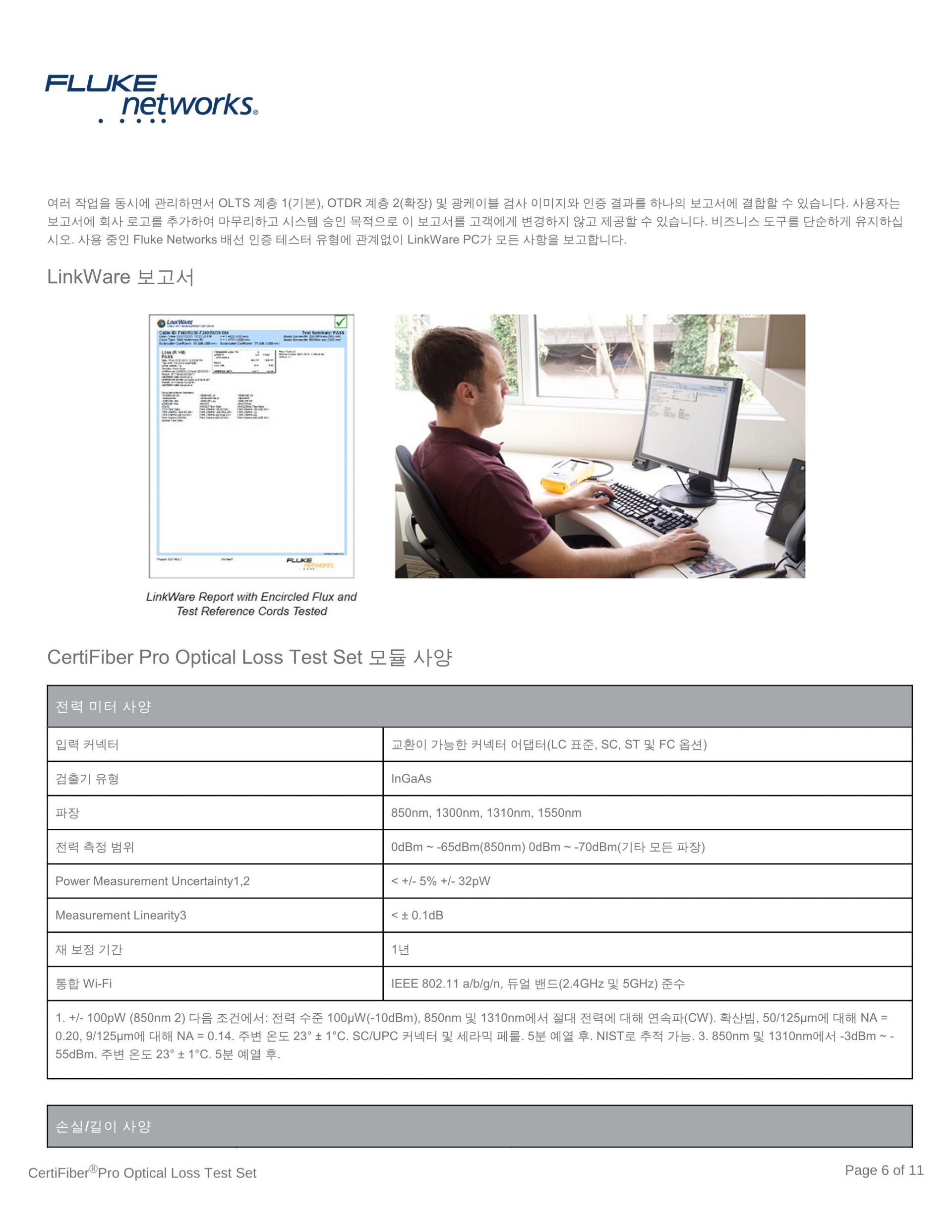 - LinkWare™ 관리 소프트웨어를 사용하여 테스트 결과를 분석하고 전문 테스트 보고서를 작성합니다.