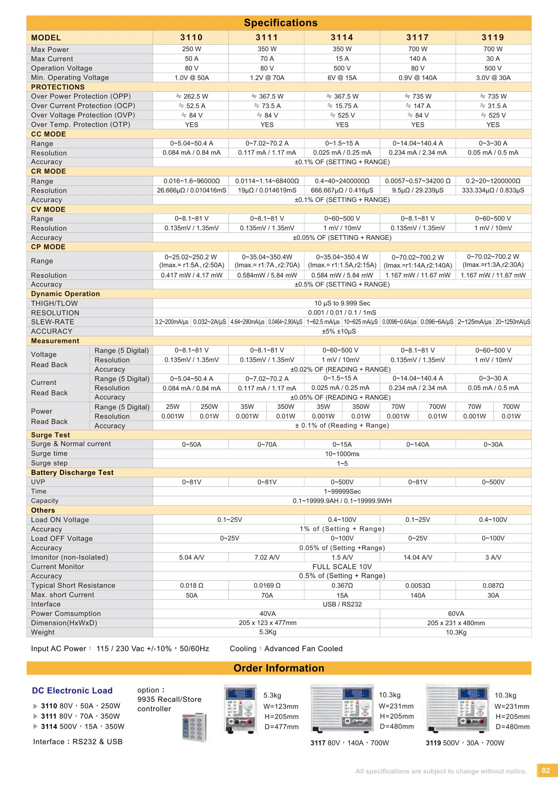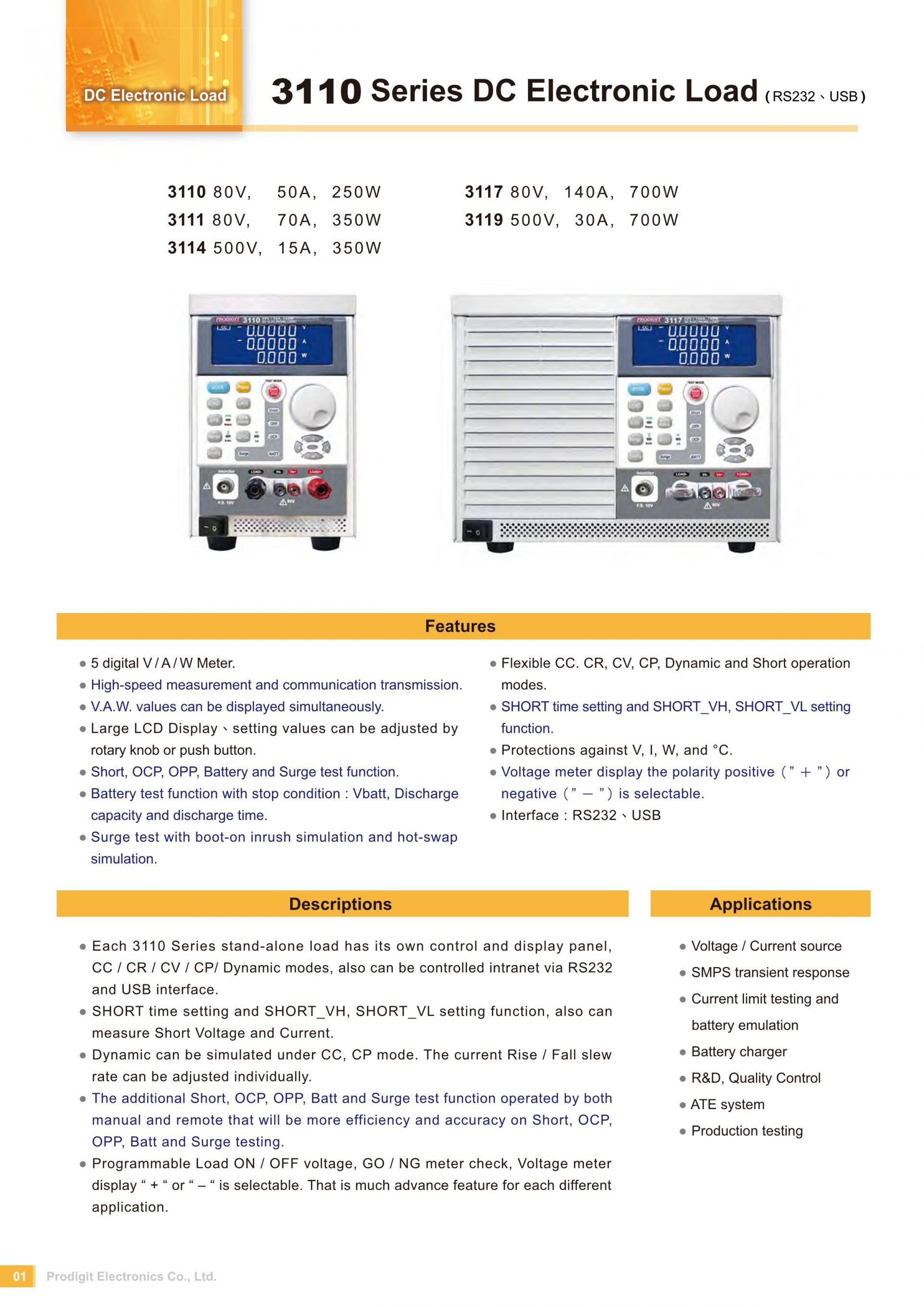 - Each 3110 Series stand-alone load has its own control and display panel, CC / CR / CV / CP/ Dynamic modes, also can be controlled intranet via RS232 and USB interface.
