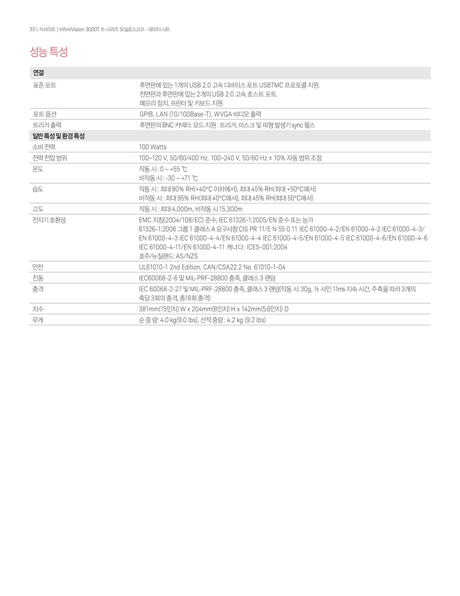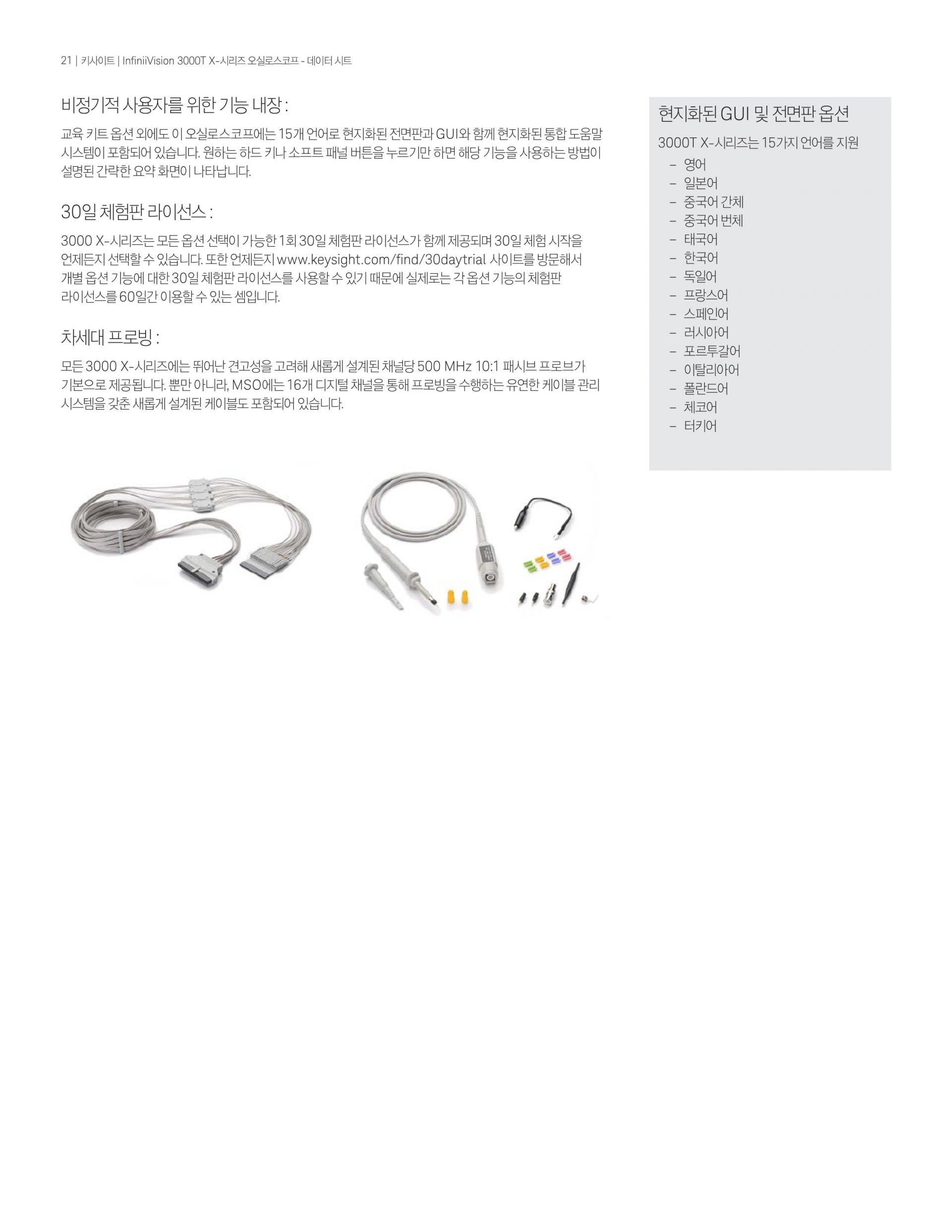 - 3년 공장 워런티(패시브 프로브 등 일련번호가 부여되지 않은 액세서리는 90일)