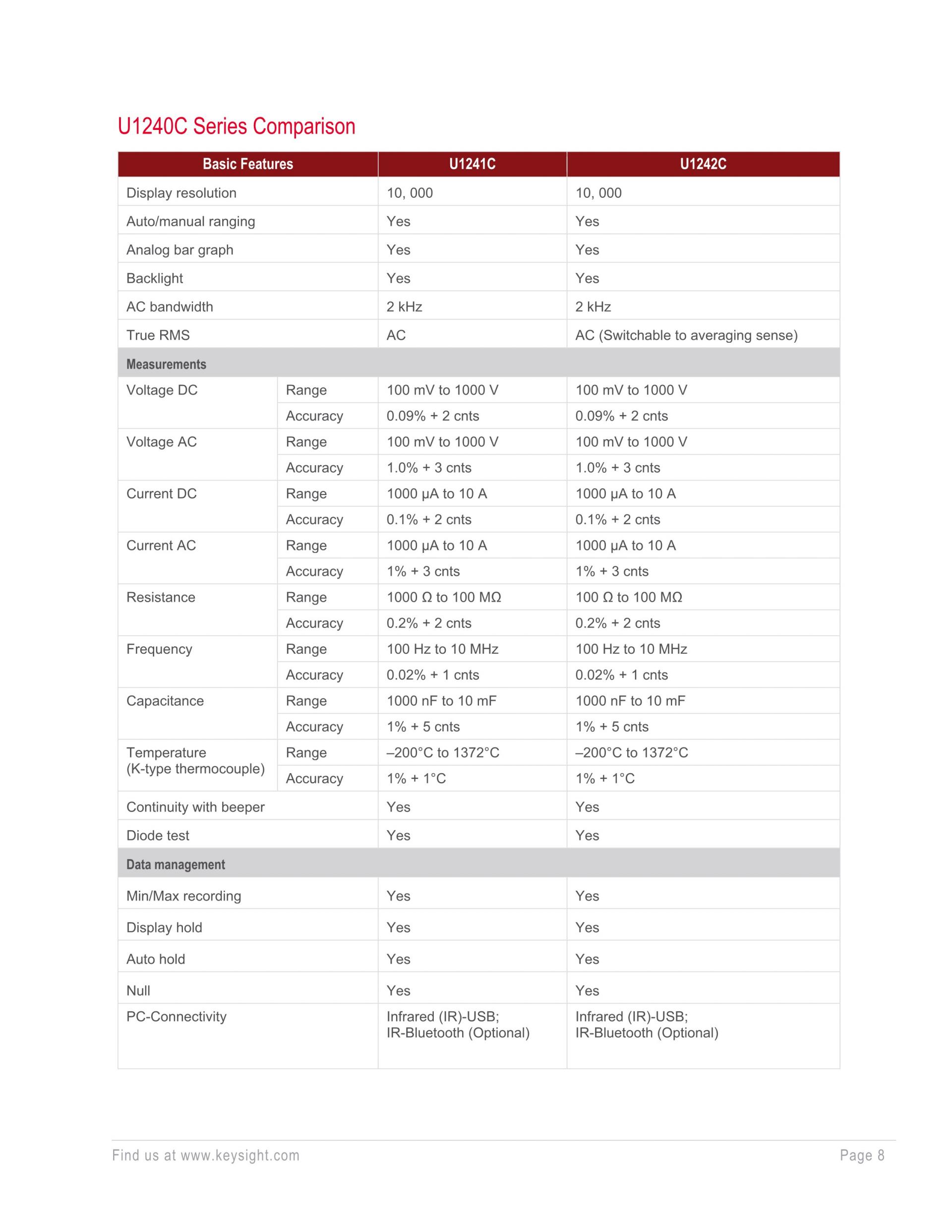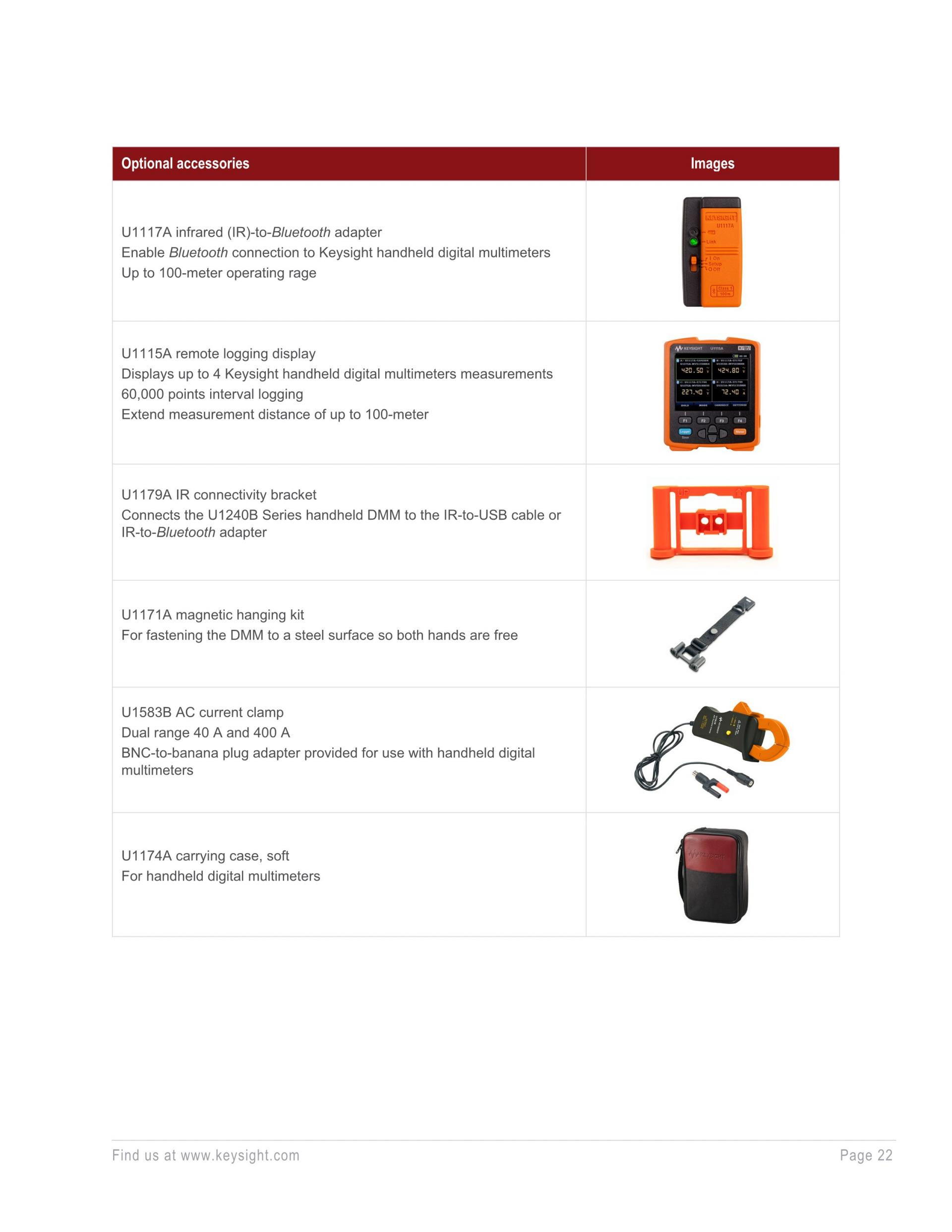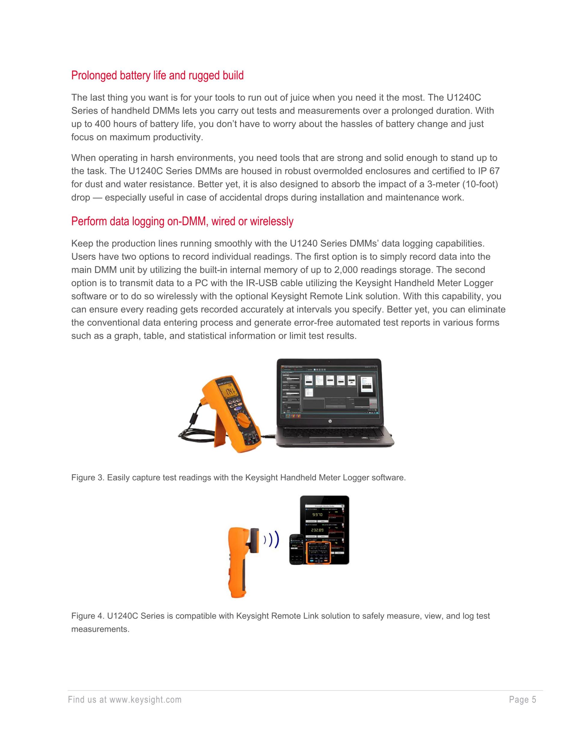 - PC 또는 모바일 디바이스로 손쉽게 측정값 로깅(U1179A IR 연결 브래킷 필요)
