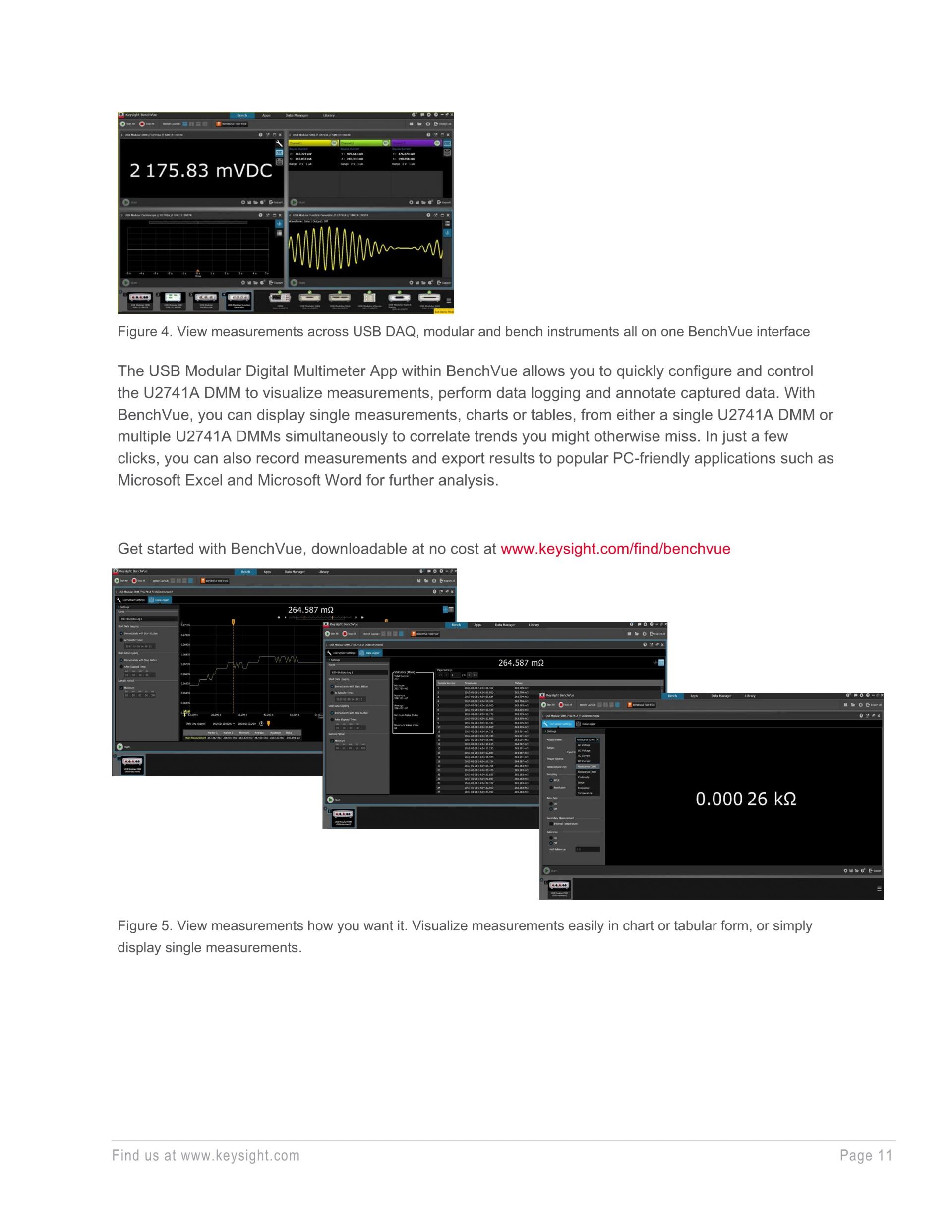 - BenchVue software license BV0021B is included with U2741A