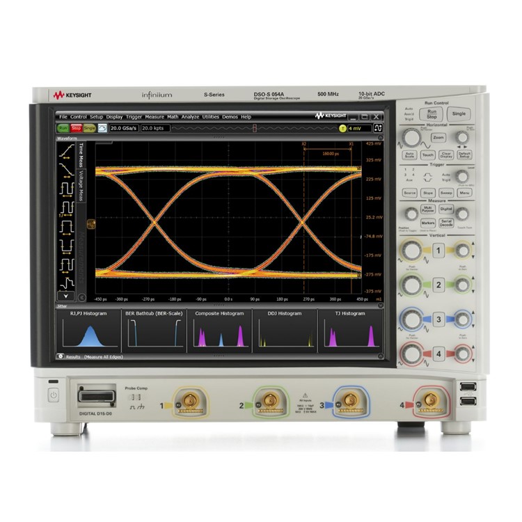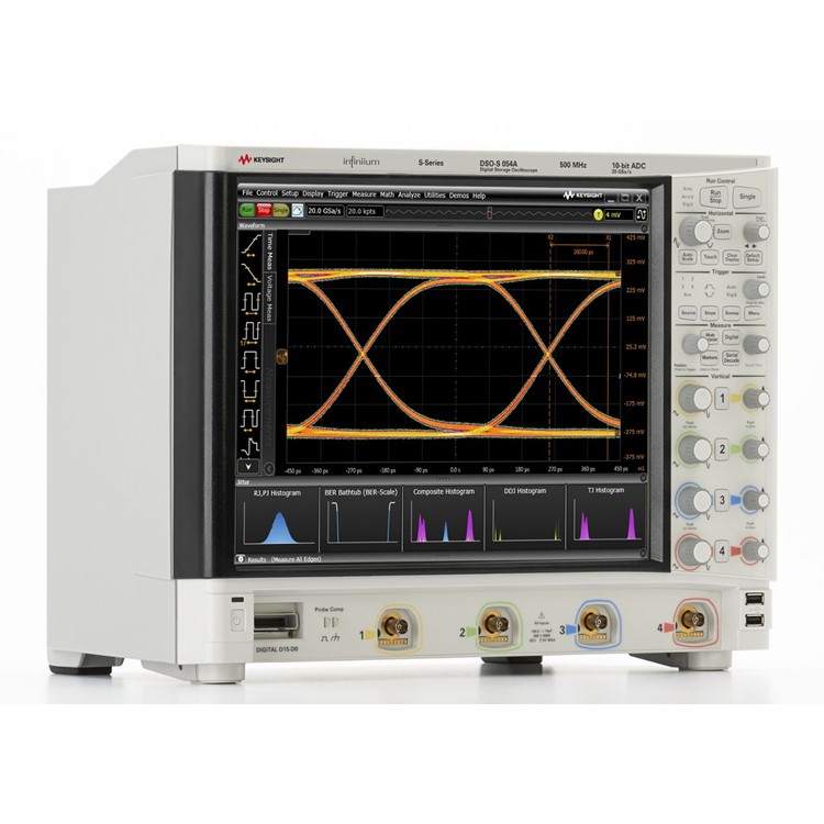 - DSOS054A S-시리즈 오실로스코프는 500MHz 메모리, 15" XGA 정전식 터치 스크린, 10비트 아날로그-디지털 컨버터를 장착하고 있습니다.