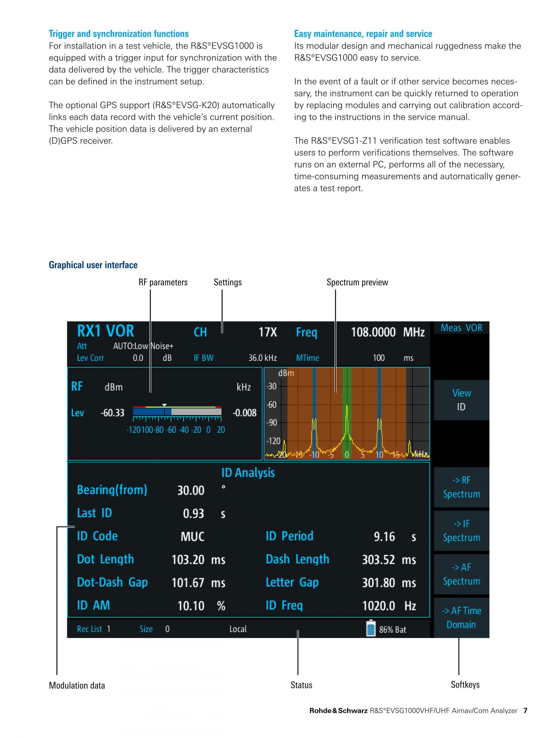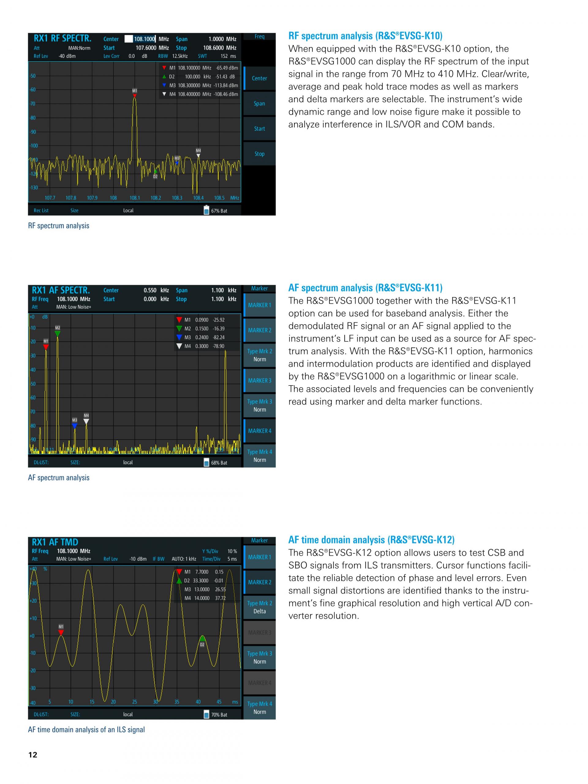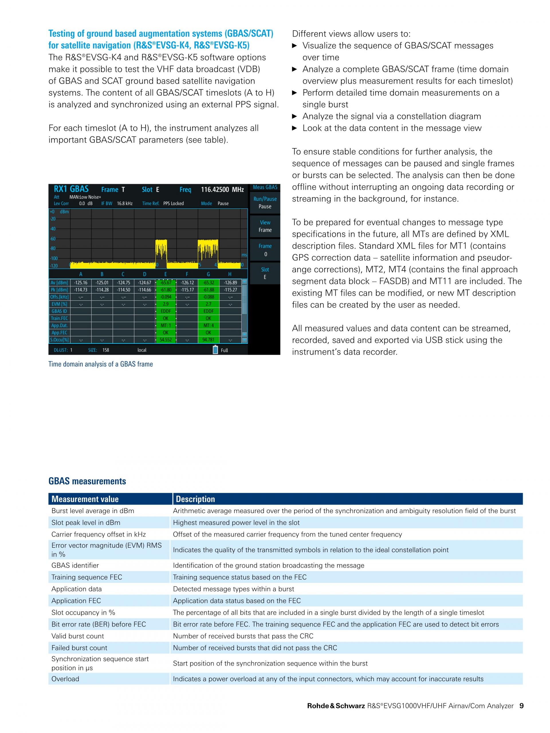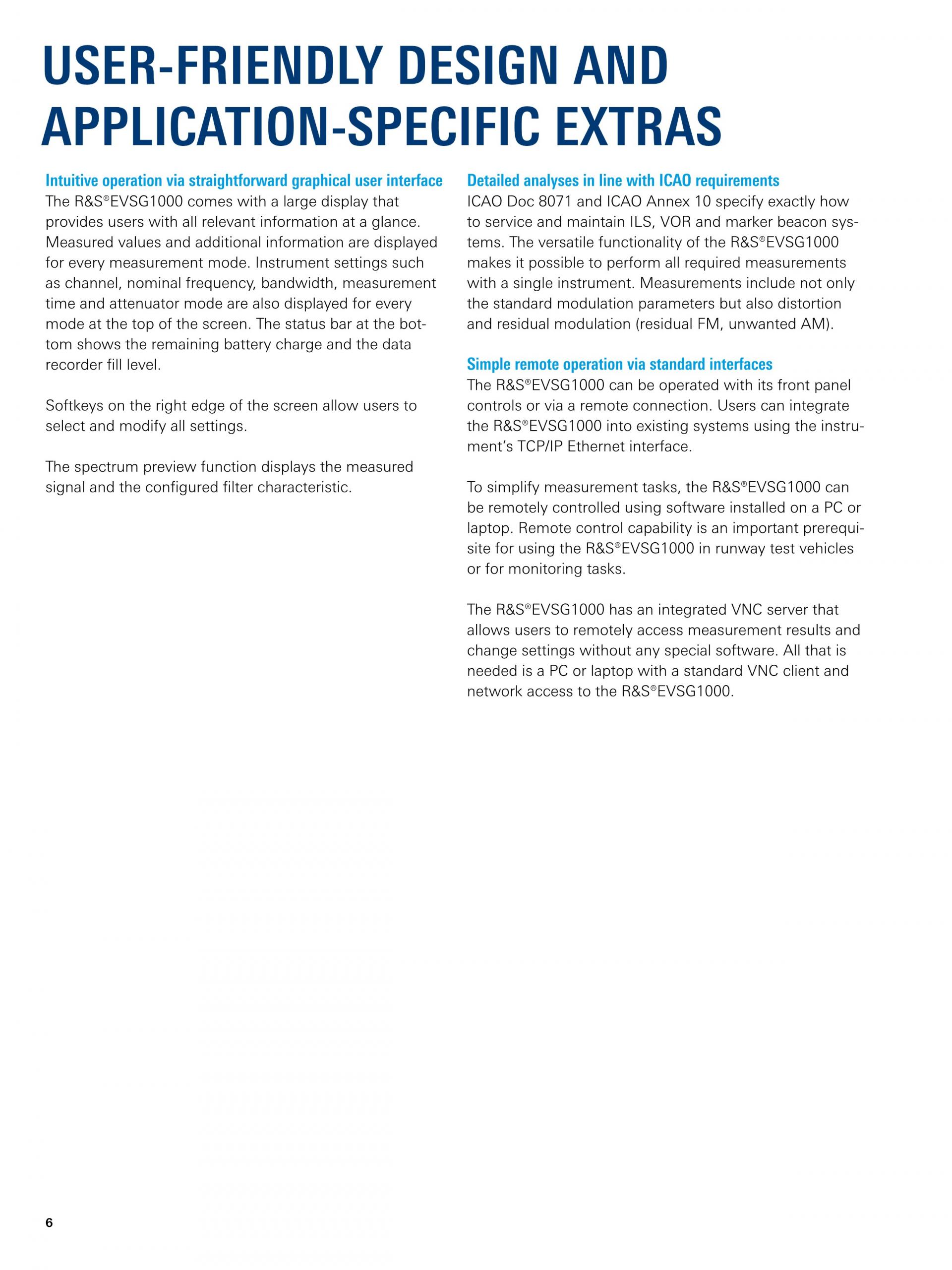 R&S®EVSG1000은 시운전과 ILS, VOL, 마커 비컨 지상국 지원 및 ATC COM 신호 분석을 위해 특수 설계된 휴대형 신호 레벨 및 변조 분석기입니다. 뛰어난 정확도와 측정 속도, 견고한 기계적 설계, 일체형 배터리를 제공하는 이 기기는 현장에서 고정밀 측정을 수행하는 데 적합합니다.