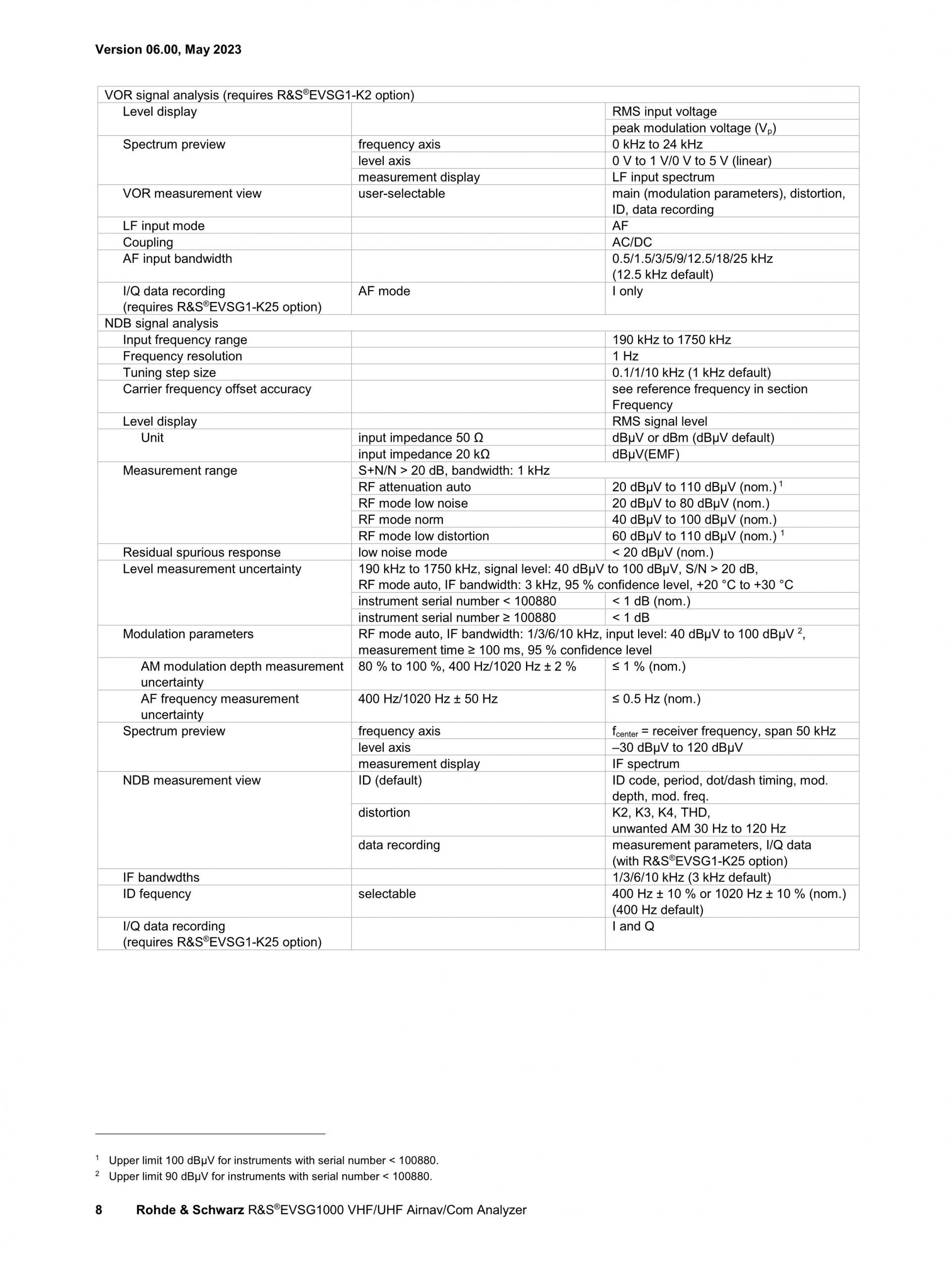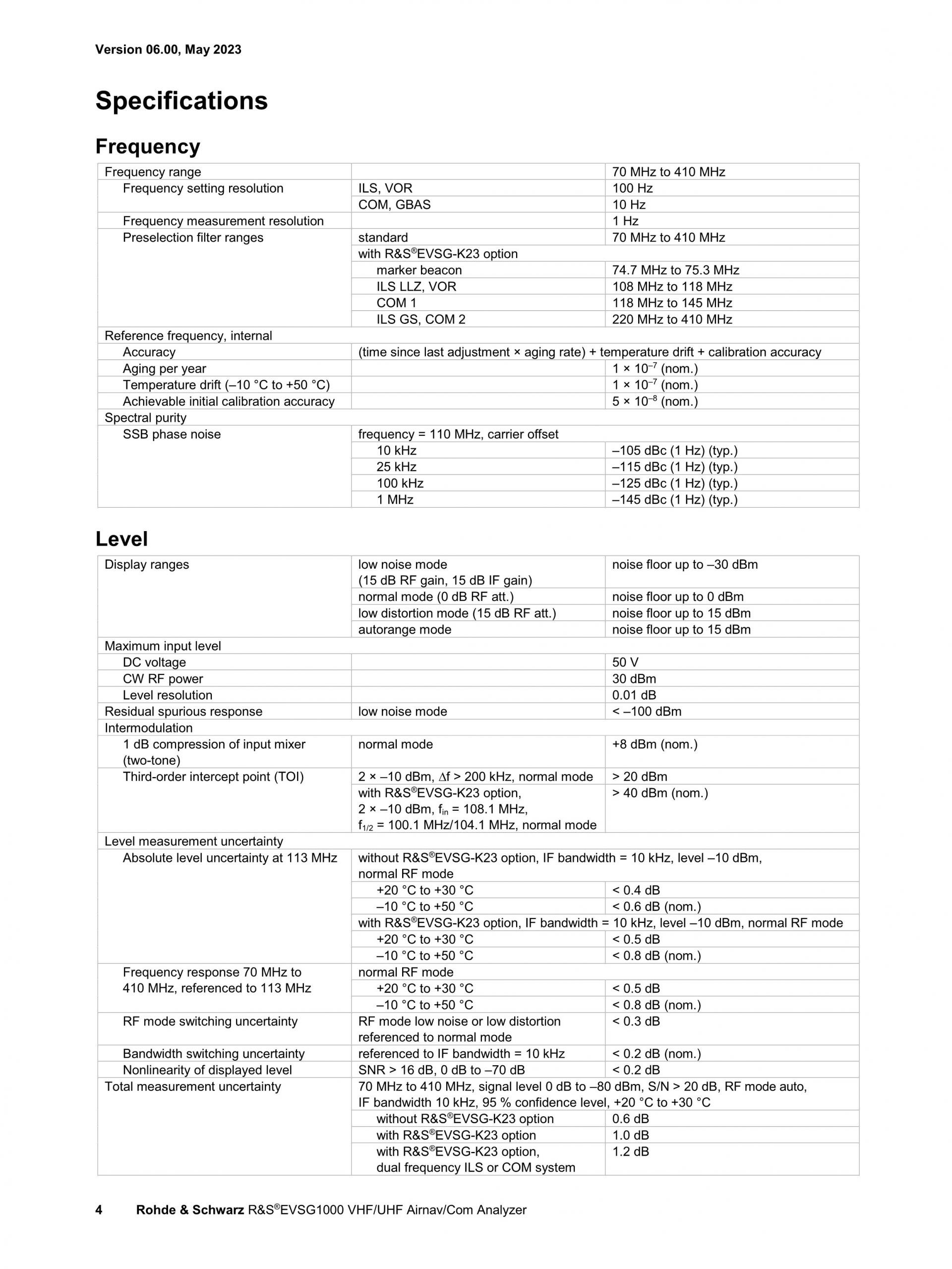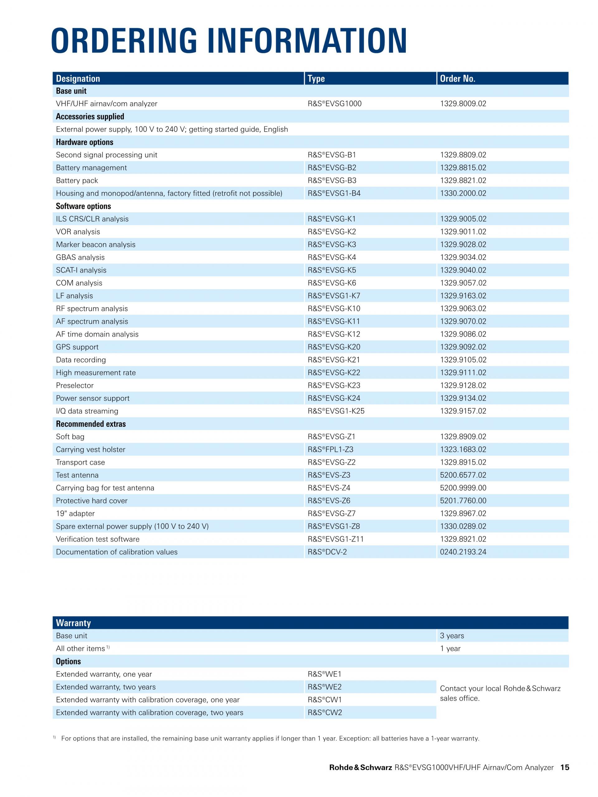 ROHDE & SCHWARZ EVSG1000 VHF/UHF 항공항법/통신 분석기