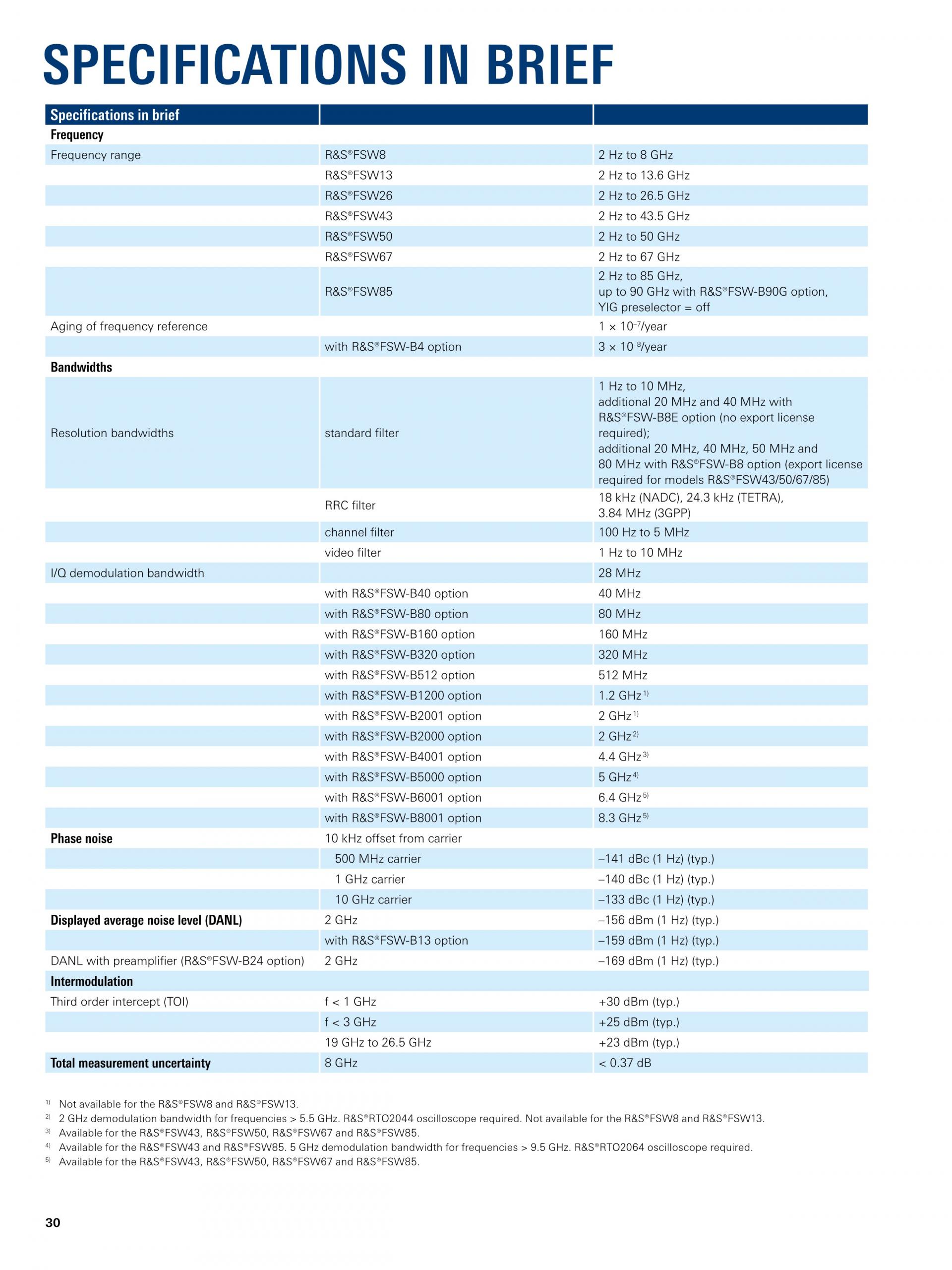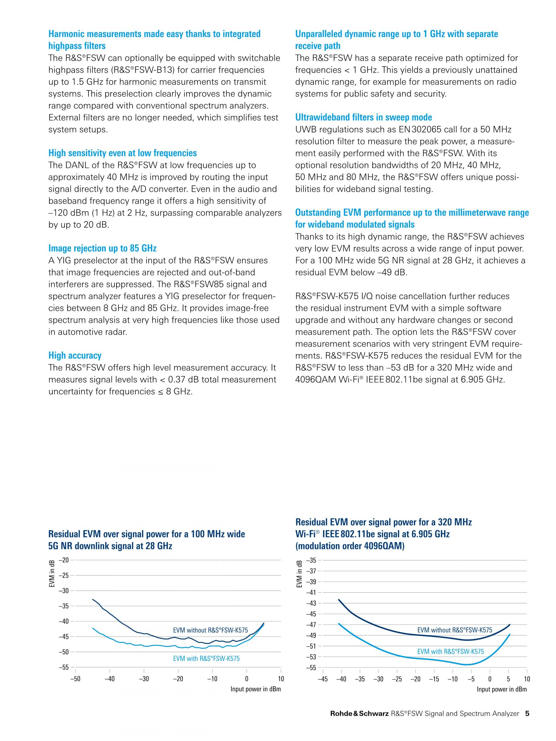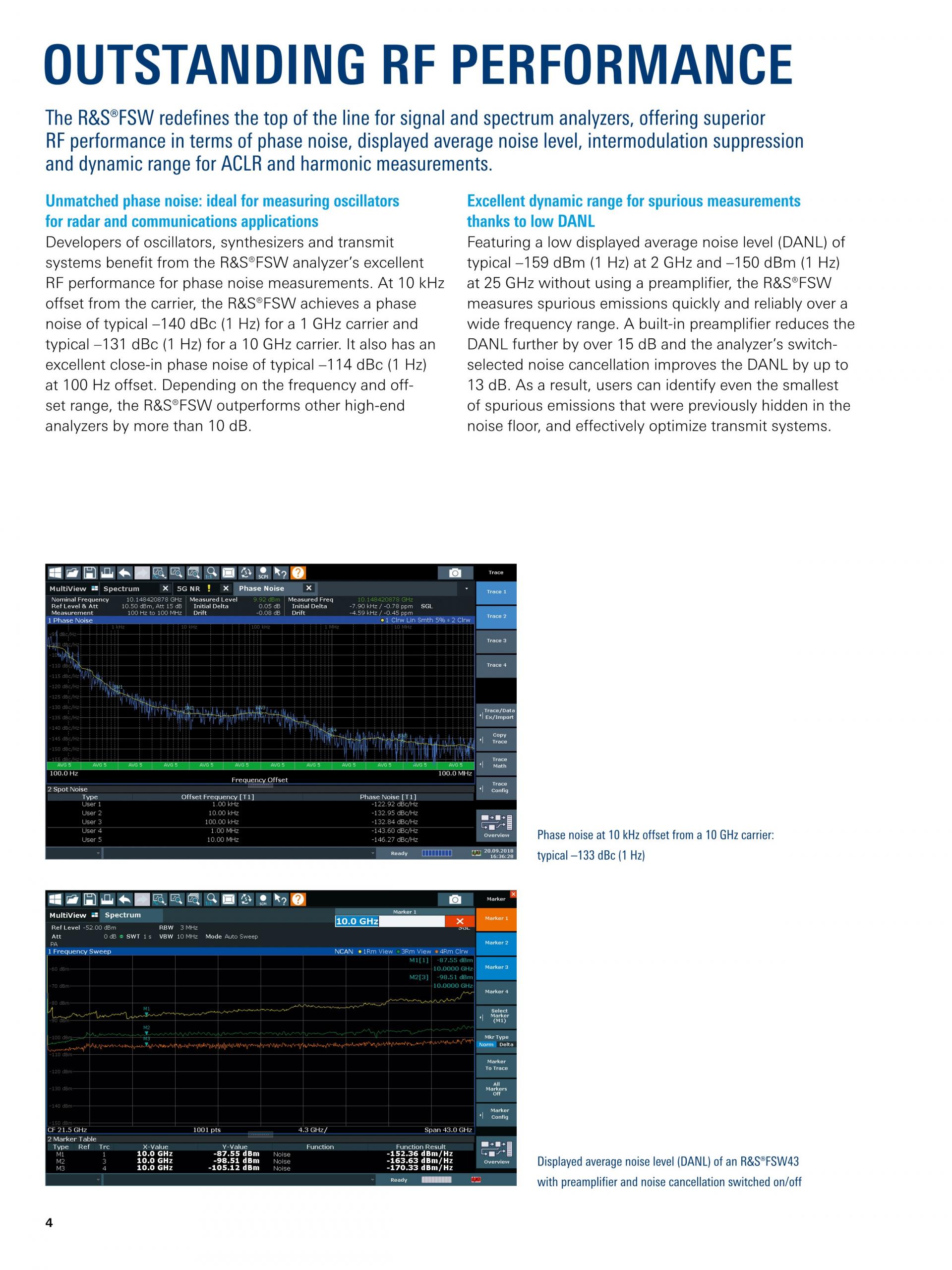 R&S®FSW는 최고의 신호 및 스펙트럼 분석기를 새롭게 정의합니다. 위상 노이즈, DANL(Displayed Average Noise Level), 혼변조 억제, ACLR에 대한 다이내믹 레인지 측면과 고조파 측정에서 뛰어난 RF 성능을 제공합니다. |