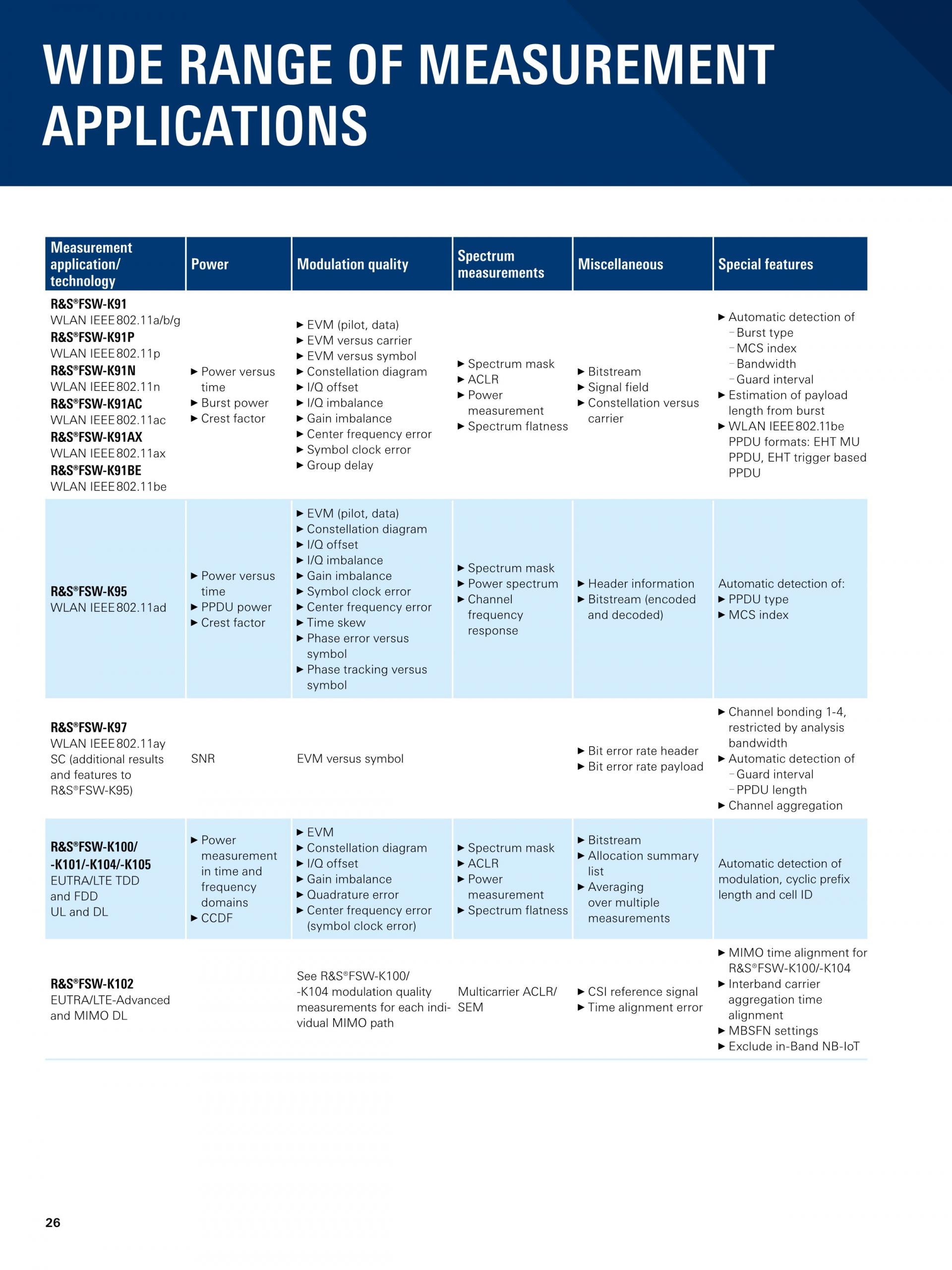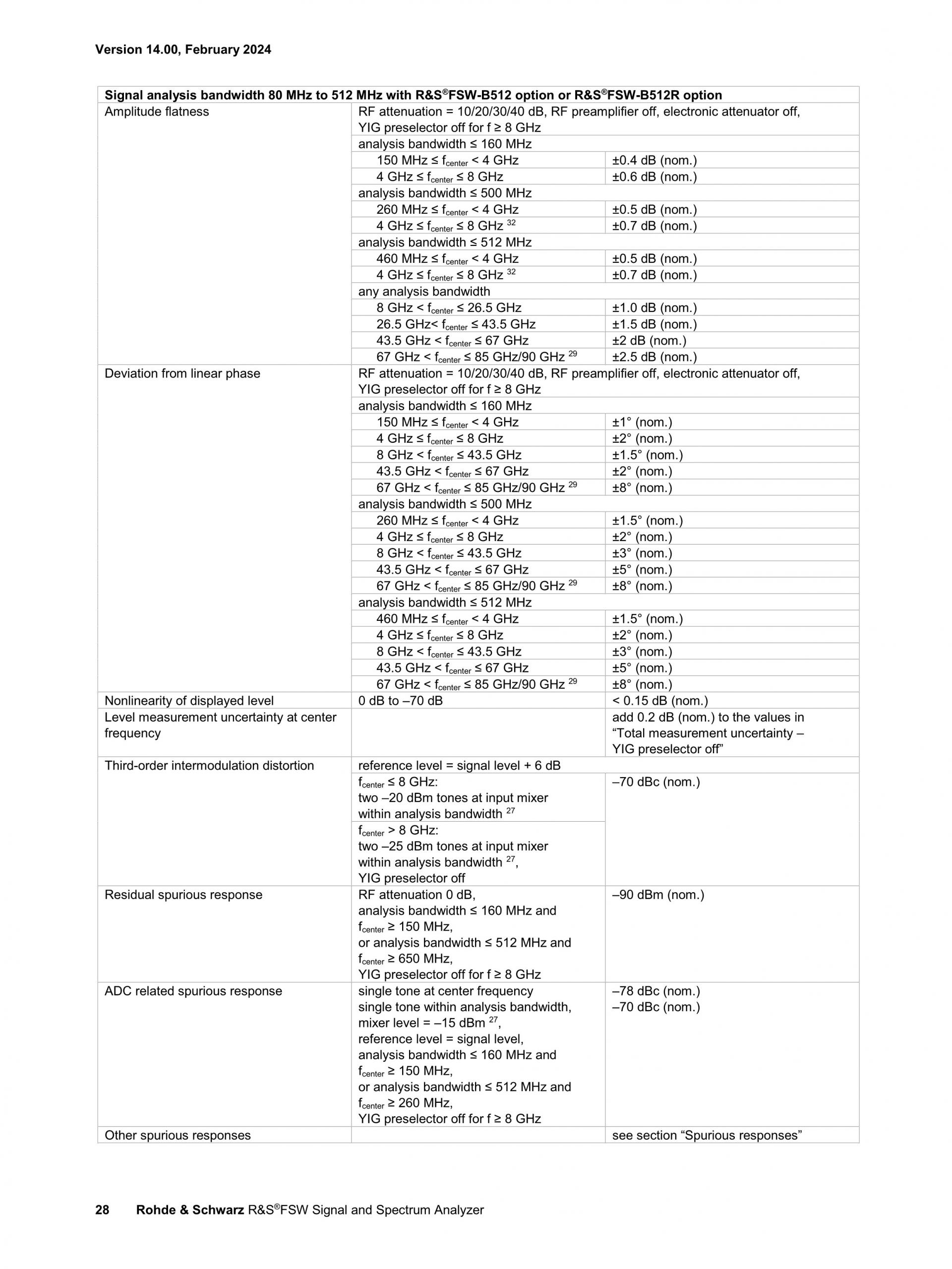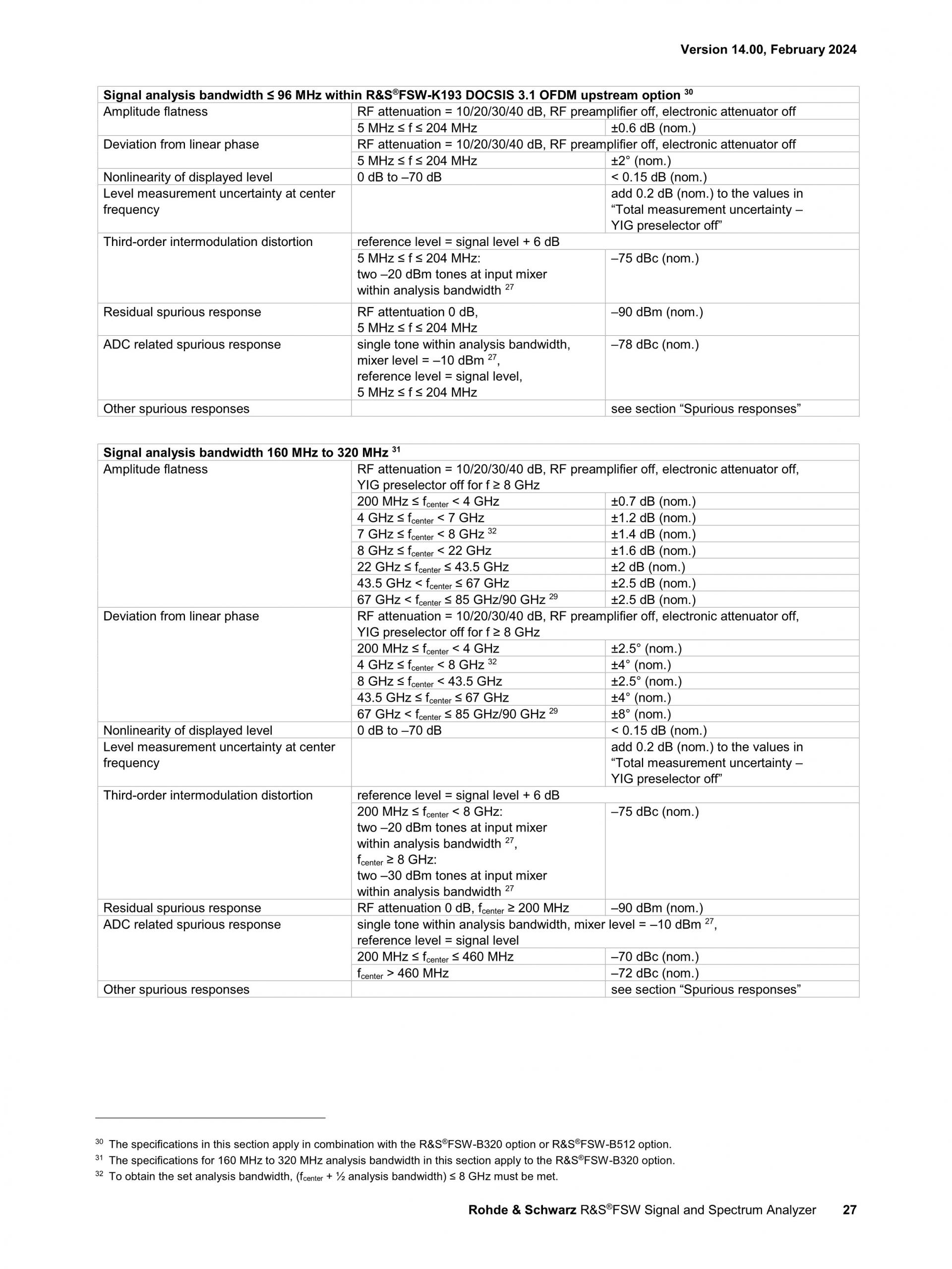 R&S®FSW는 최고의 신호 및 스펙트럼 분석기를 새롭게 정의합니다. 위상 노이즈, DANL(Displayed Average Noise Level), 혼변조 억제, ACLR에 대한 다이내믹 레인지 측면과 고조파 측정에서 뛰어난 RF 성능을 제공합니다. |